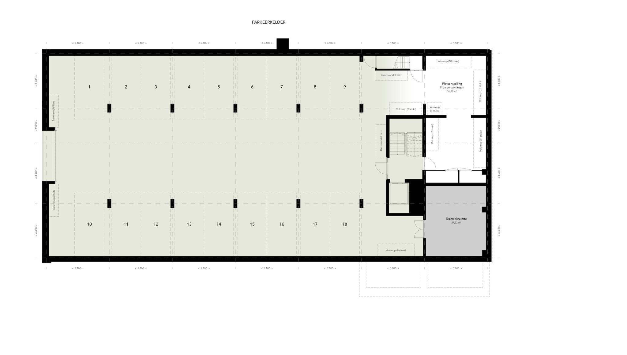 Er zijn 18 parkeerplaatsen beschikbaar, in de parkeergarage onder het gebouw.