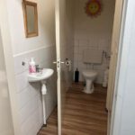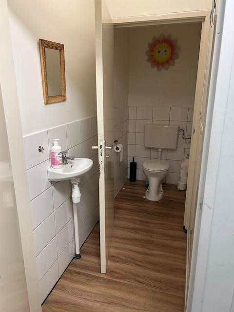 De vloerafwerking bestaat uit tegels en naast een toilet met fonteintje is ook een keukenblok met inbouw koelkast aanwezig. De verwarming geschiedt middels twee gasgestookte heaters welke centraal geplaatst zijn.