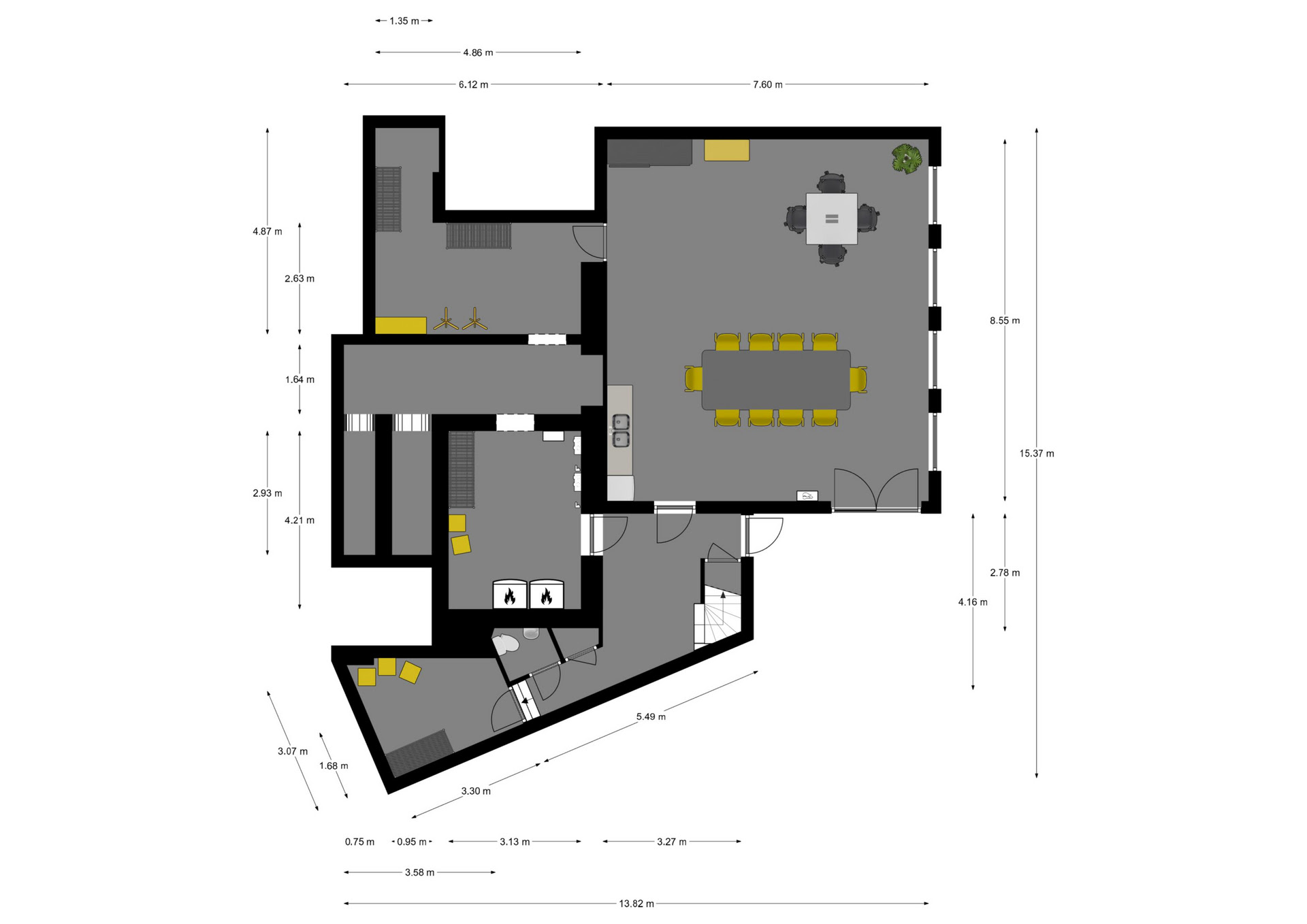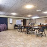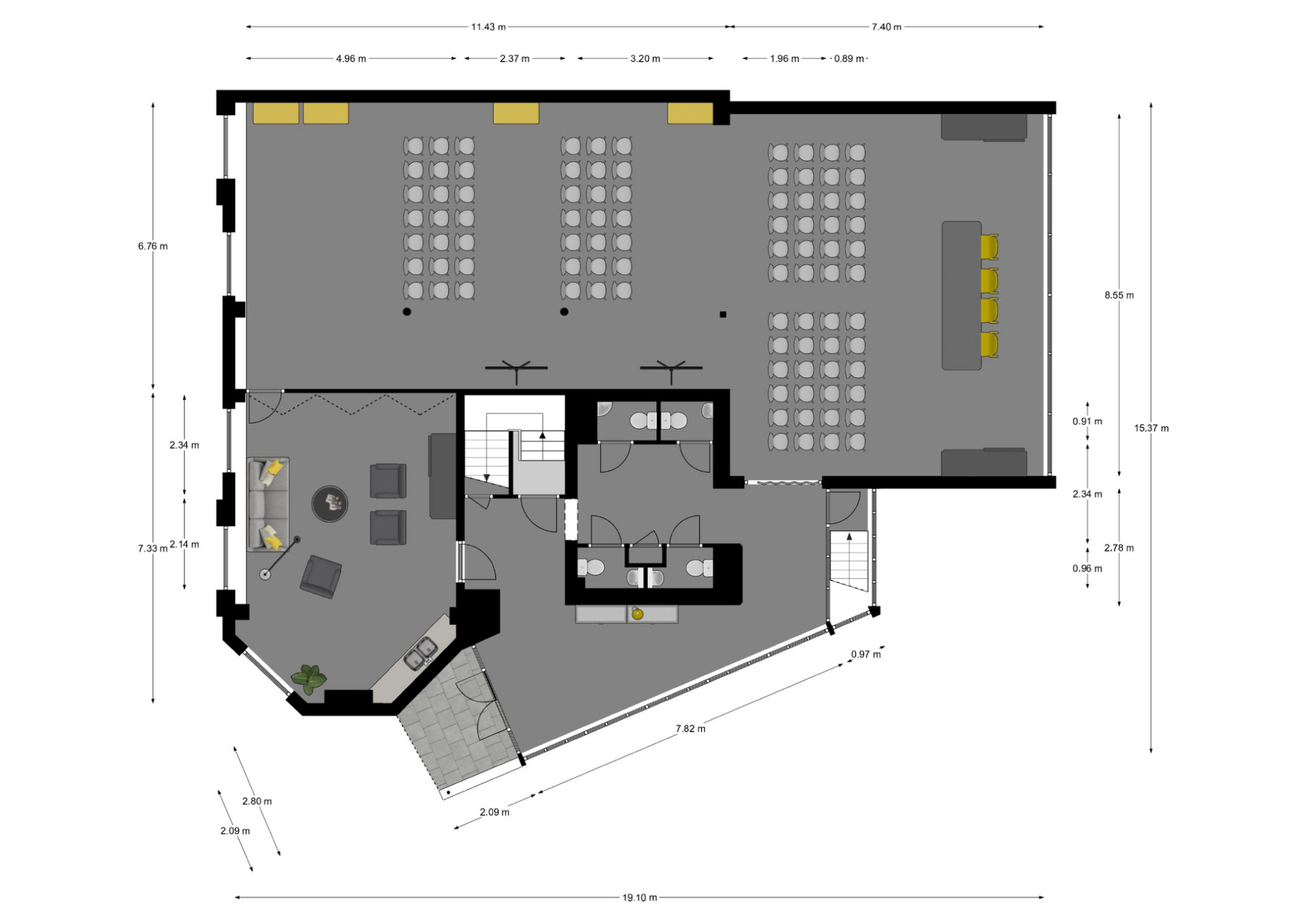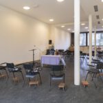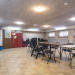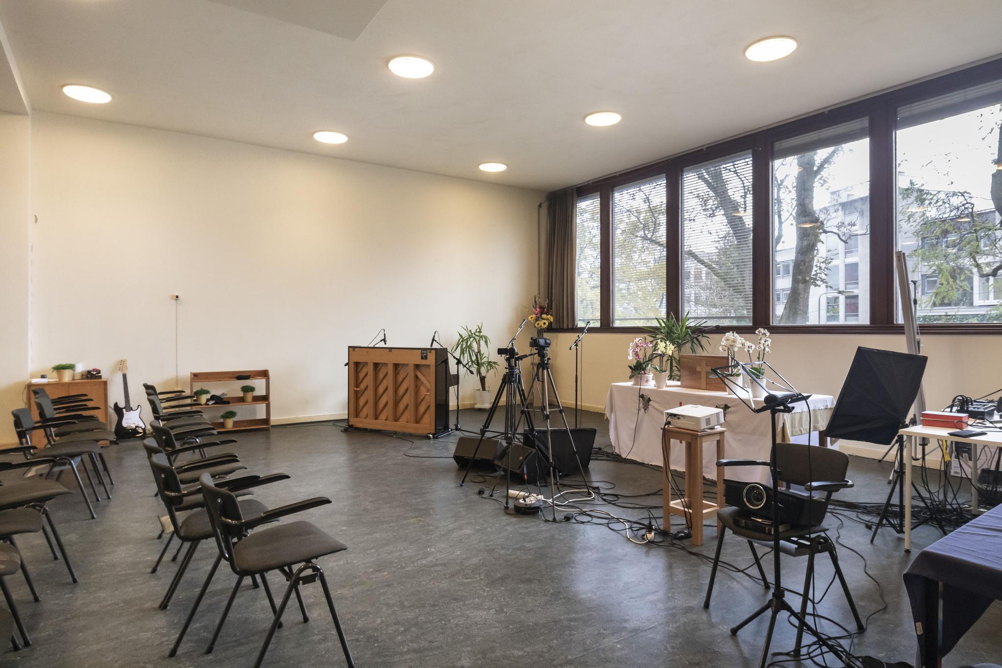 Deze verdiepingen zijn de voormalige kerk en bestaan uit diverse multifunctionele ruimtes, vijf toiletten en een pantry. Via het souterrain is de achtertuin bereikbaar welke is voorzien van een eigen parkeerplaats met carport.