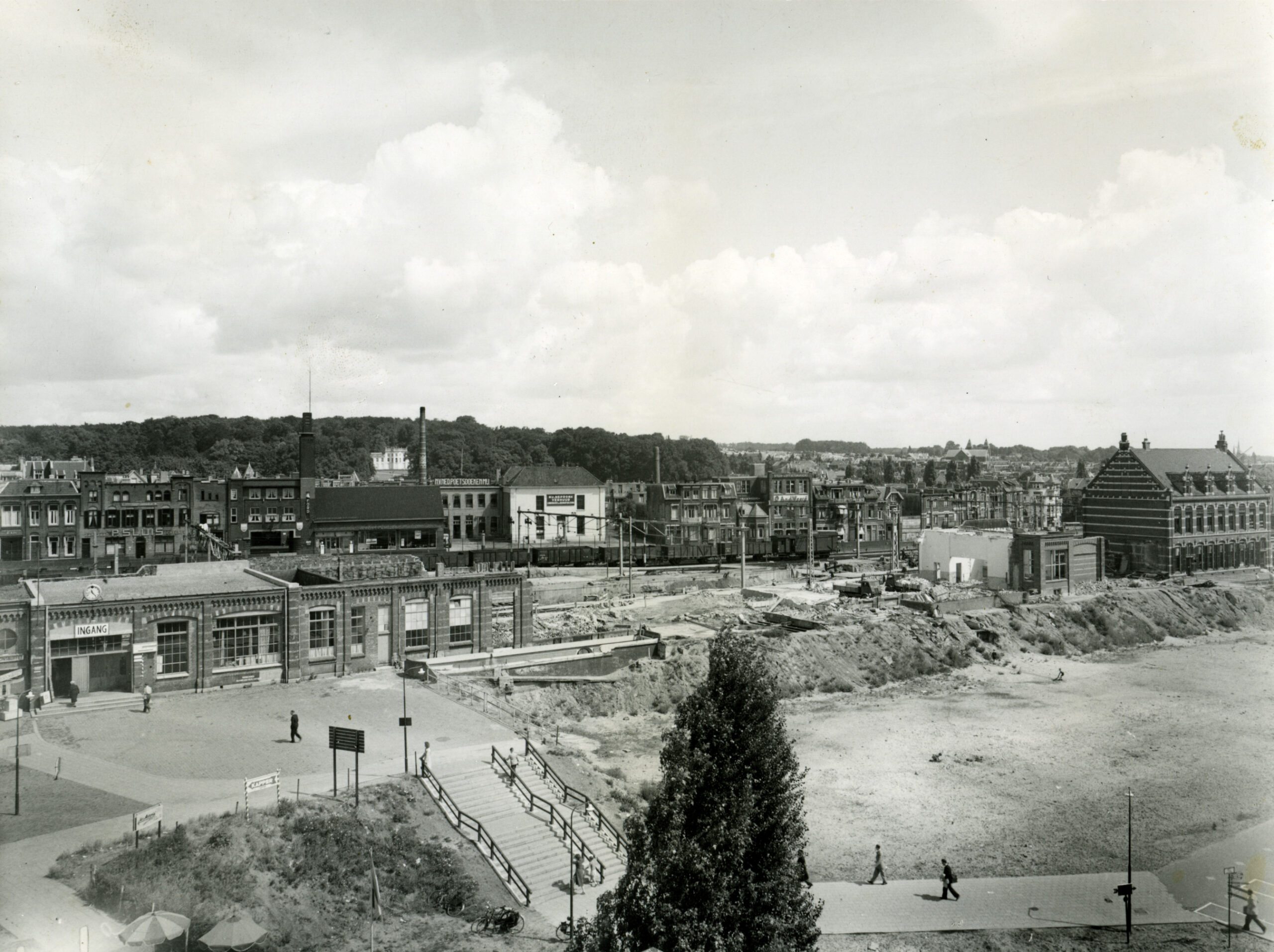 Op deze foto van het station kun je rechts het voormalig distributiekantoor goed zien, 1952.