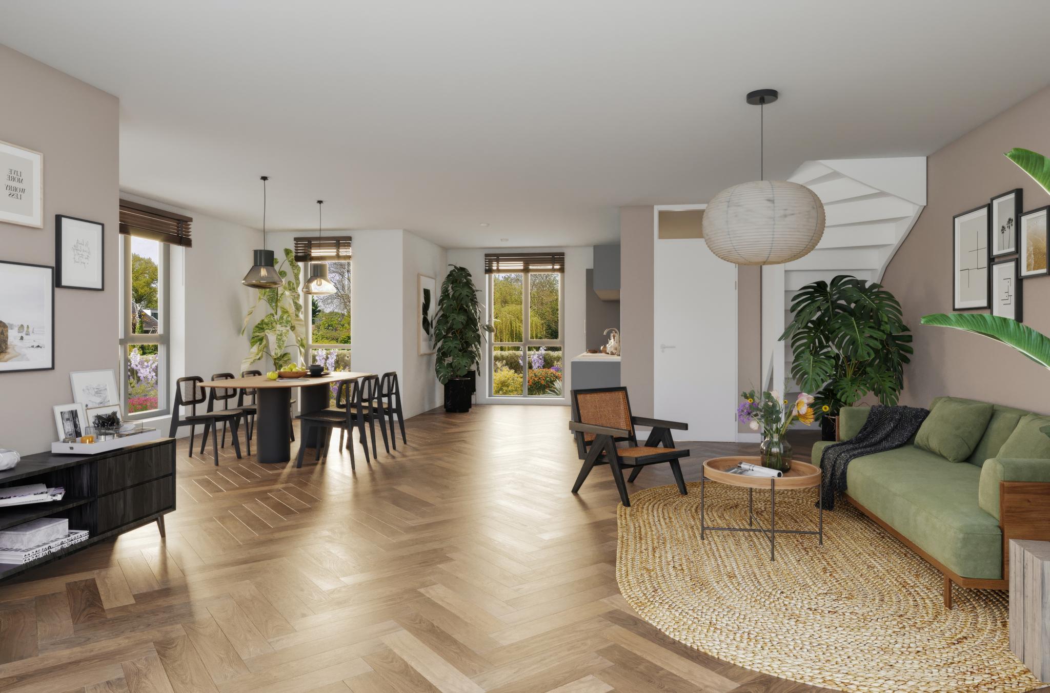 Een aantal woningen is standaard voorzien van een zij aanbouw waardoor er nog meer ruimte ontstaat op de begane grond.