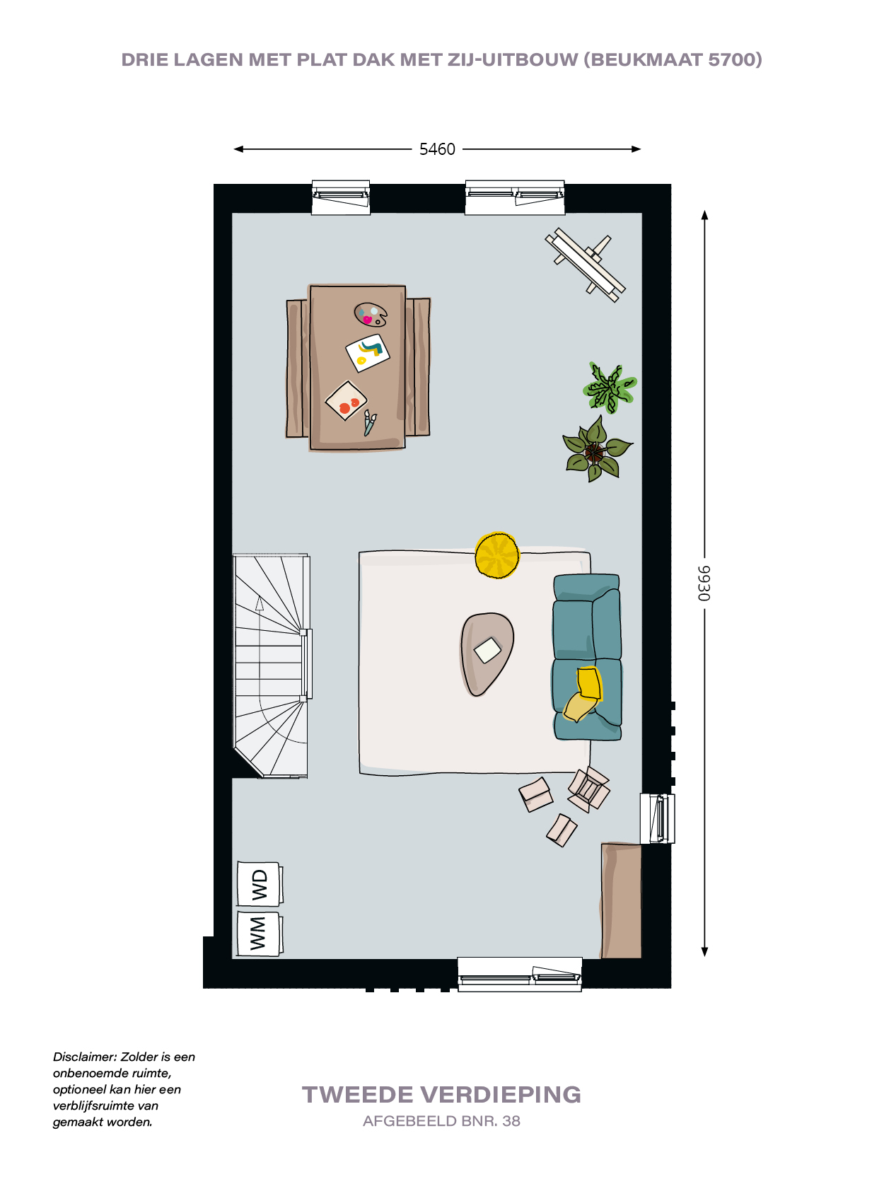 - Zolder kan optioneel een slaapkamer van gemaakt worden;
