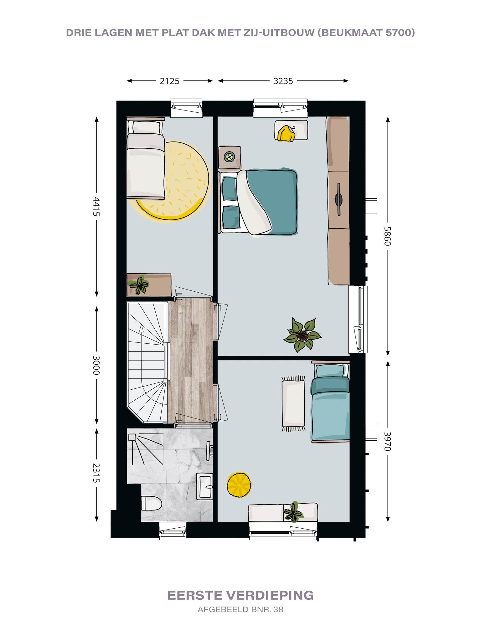 HOEKWONING BOUWNUMMER 38 - DRIE LAGEN MET PLAT DAK (BEUKMAAT 5700)