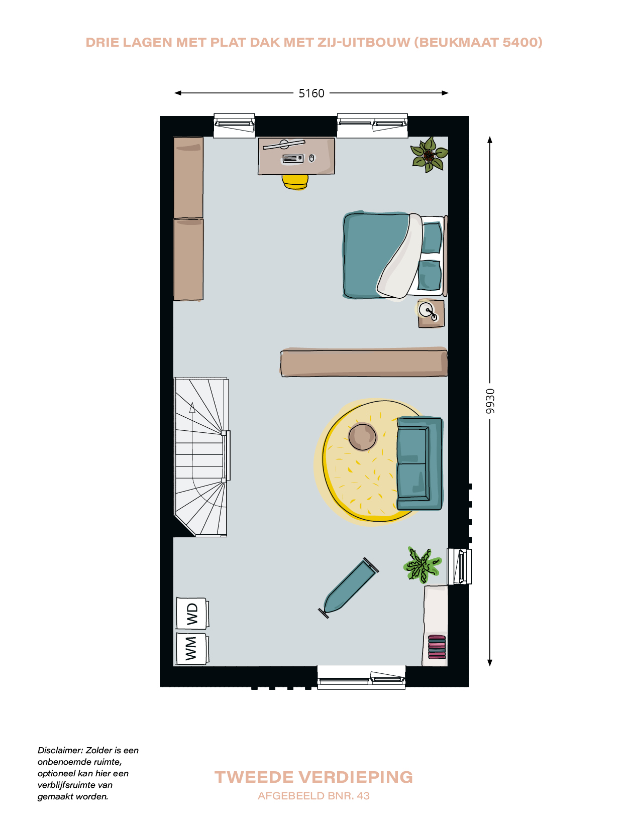 - Zolder kan optioneel een slaapkamer van gemaakt worden;