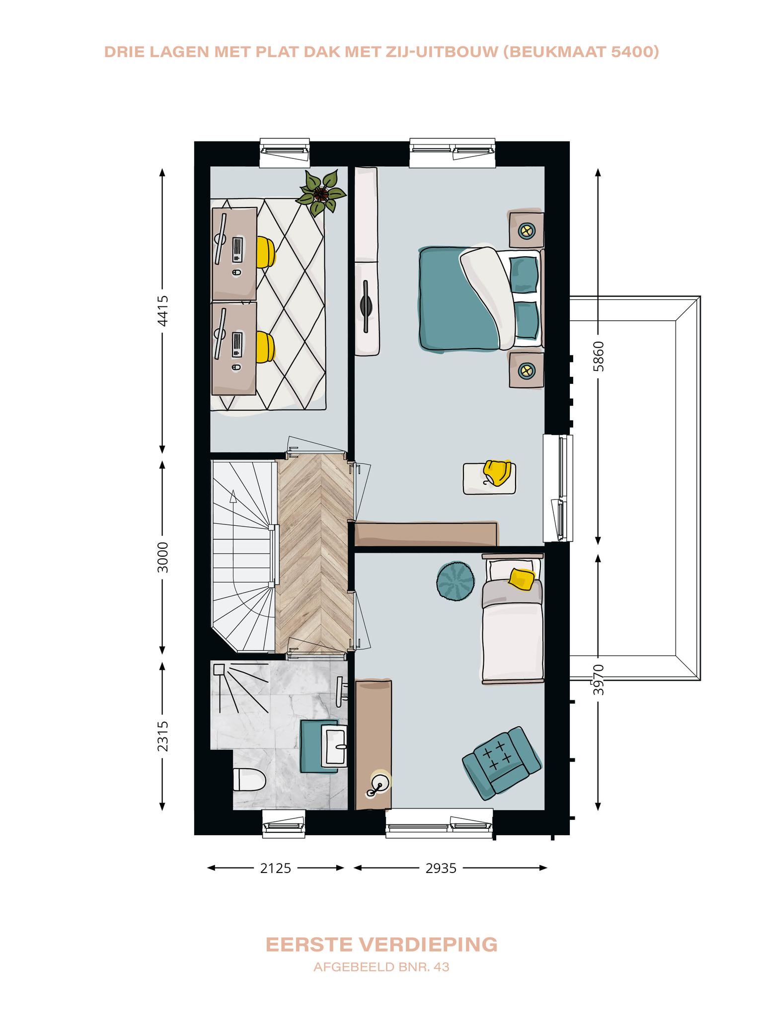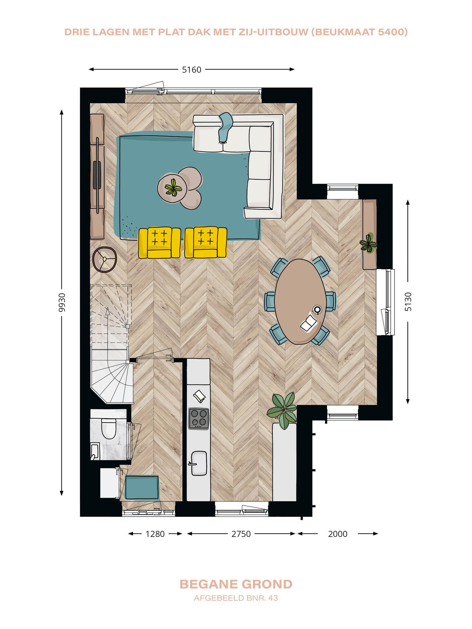 HOEKWONING BOUWNUMMER 43 - DRIE LAGEN MET PLAT DAK MET ZIJ UITBOUW (BEUKMAAT 5700)