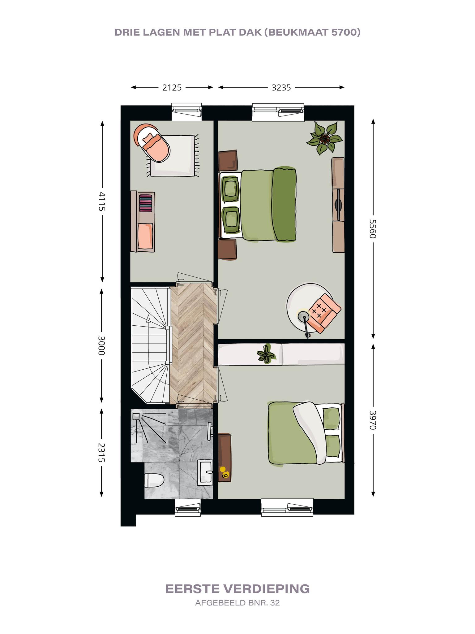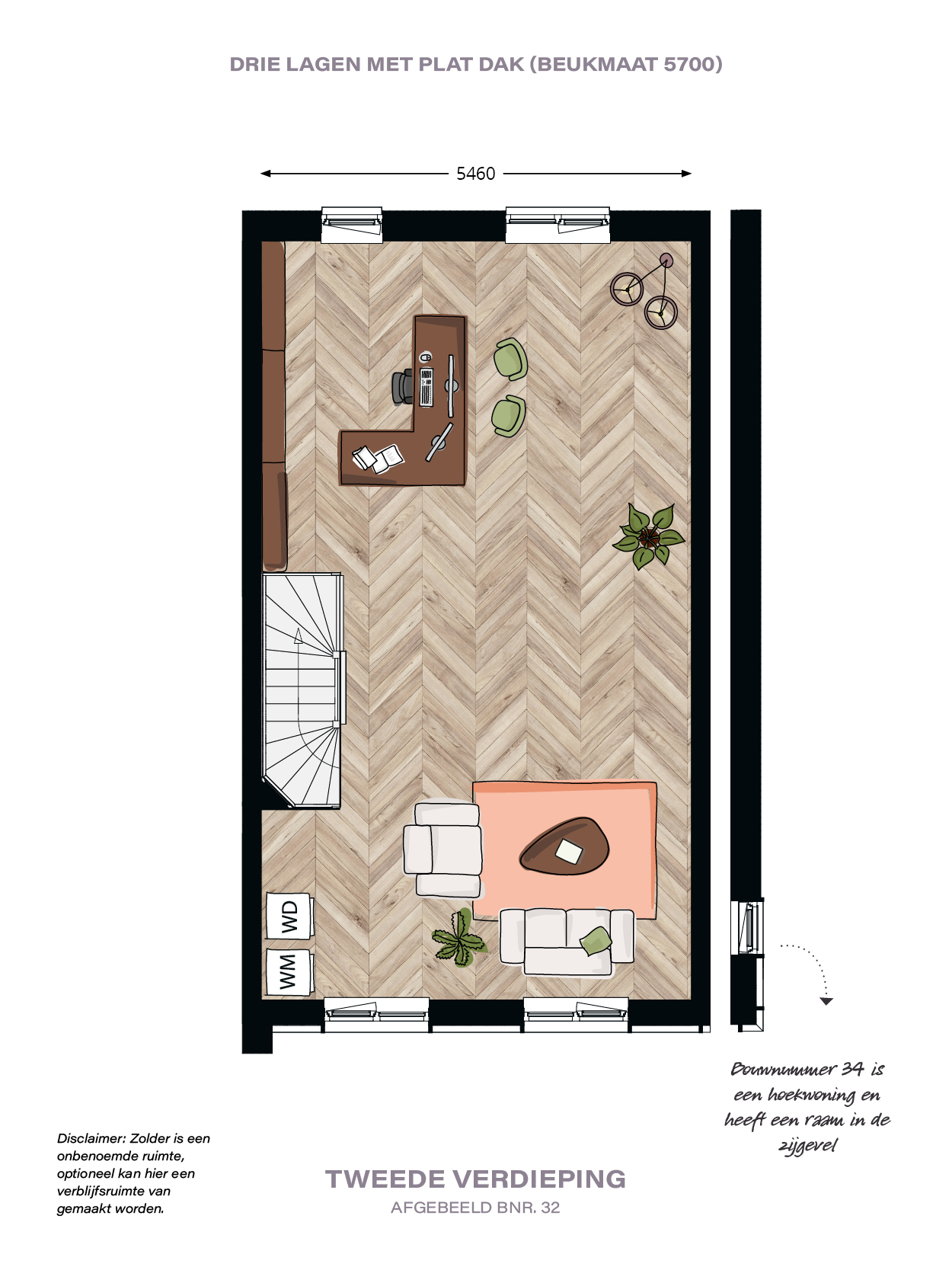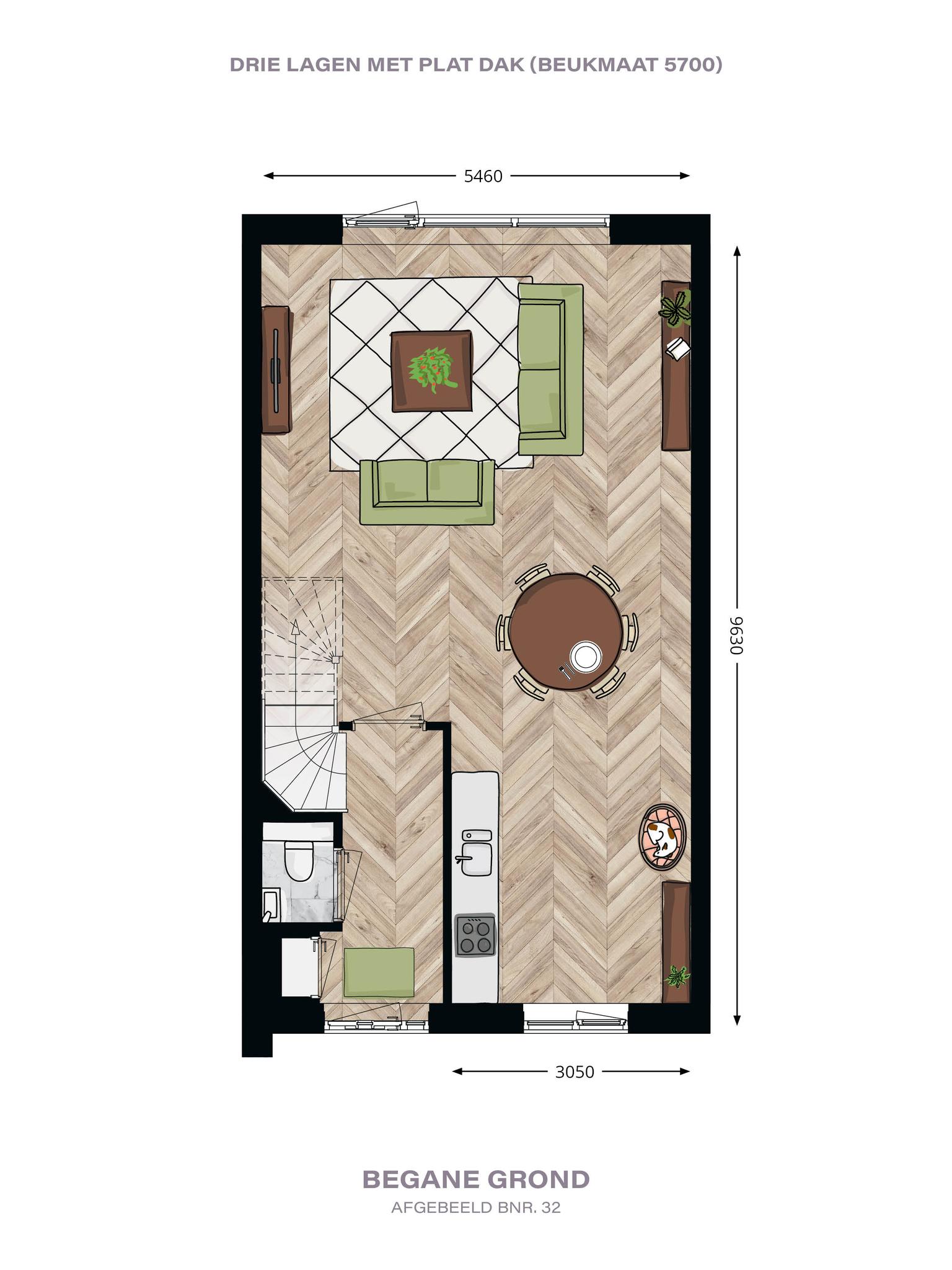 TUSSENWONING BOUWNUMMER 32 - DRIE LAGEN MET PLAT DAK (BEUKMAAT 5700)