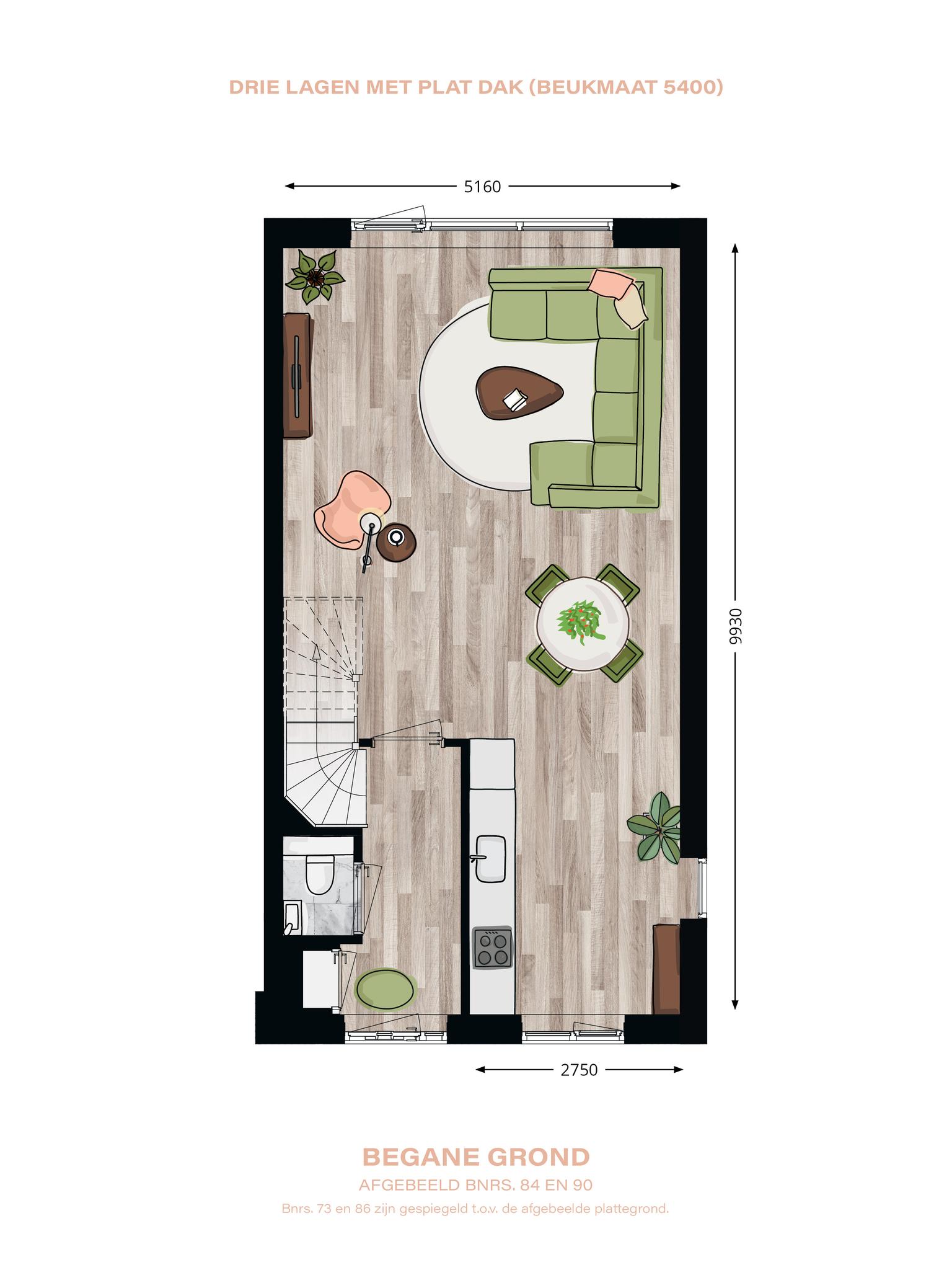 De woningen van dit type hebben drie woonlagen en een woonoppervlak van ca. 154 m2. Dit type komt voor in de blokken J, K en L. Op de begane grond zorgen grote raampartijen voor een fijne lichtinval in de woonkamer met open keuken. Op de eerste verdieping zijn drie slaapkamers en de badkamer en op de tweede verdieping vind je een vrij indeelbare ruimte.