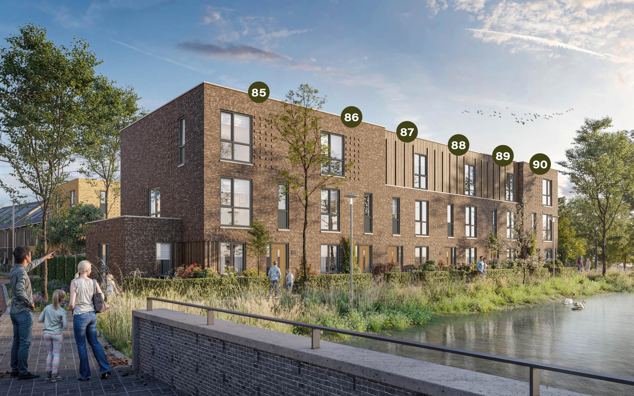 Deze drie woningen stralen karakter uit: stoer en statig, met een robuuste architectuur. Binnen wacht je een royale leefruimte. De ruime living met open keuken vormt het hart van het huis. Op de eerste verdieping vind je drie volwaardige slaapkamers en de badkamer. De bovenste verdieping biedt een grote open ruimte die je volledig naar eigen wens kunt indelen. Met een woonoppervlakte van circa 149 m2 zijn dit met recht royale gezinswoningen te noemen. Aan de voorzijde kijk je uit over het water. Parkeren doe je op eigen terrein.