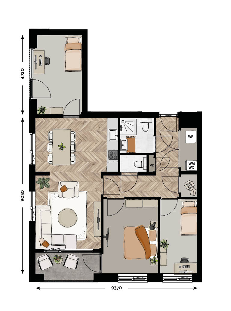 Met dit appartement kies je voor volop leefruimte, drie slaapkamers, een volledig uitgeruste keuken en