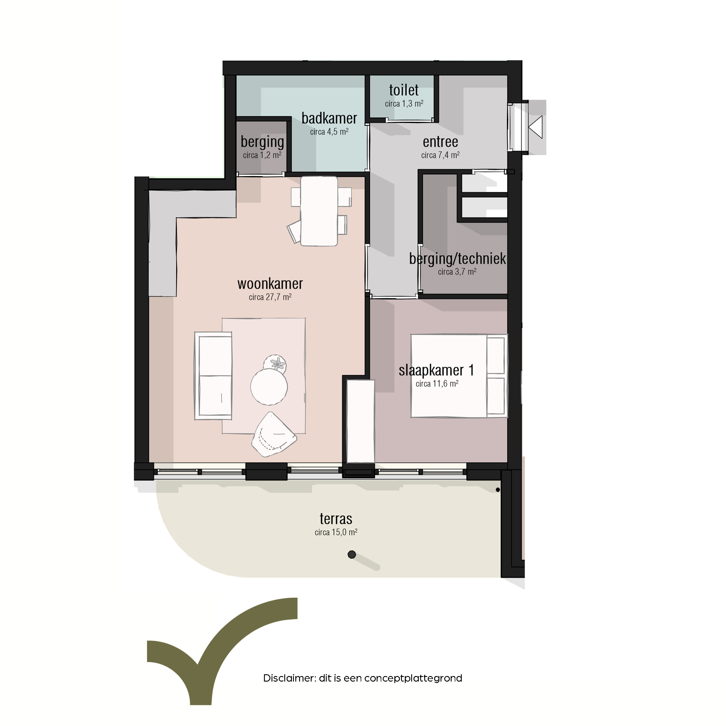 Je appartement is gelegen op de eerste verdieping met een ruime tuin (terras) van circa 15m2. Binnen valt de rustige plattegrond op: een open keuken, een volwaardige slaapkamer en handige bergruimte. Sommige varianten hebben een extra kamer voor werk of logees. Beneden stap je zo naar buiten; hoger zit je beschut en uit de wind. Fietsen staan veilig en droog, parkeren is uit het zicht en de binnentuin met huiskamer nodigt uit tot een praatje. De woningen zijn energiezuinig en stil, met een prettig binnenklimaat het hele jaar door. Zo woon je gelijkvloers, overzichtelijk en klaar voor de toekomst, precies zoals jij het graag hebt. De koopsom van het