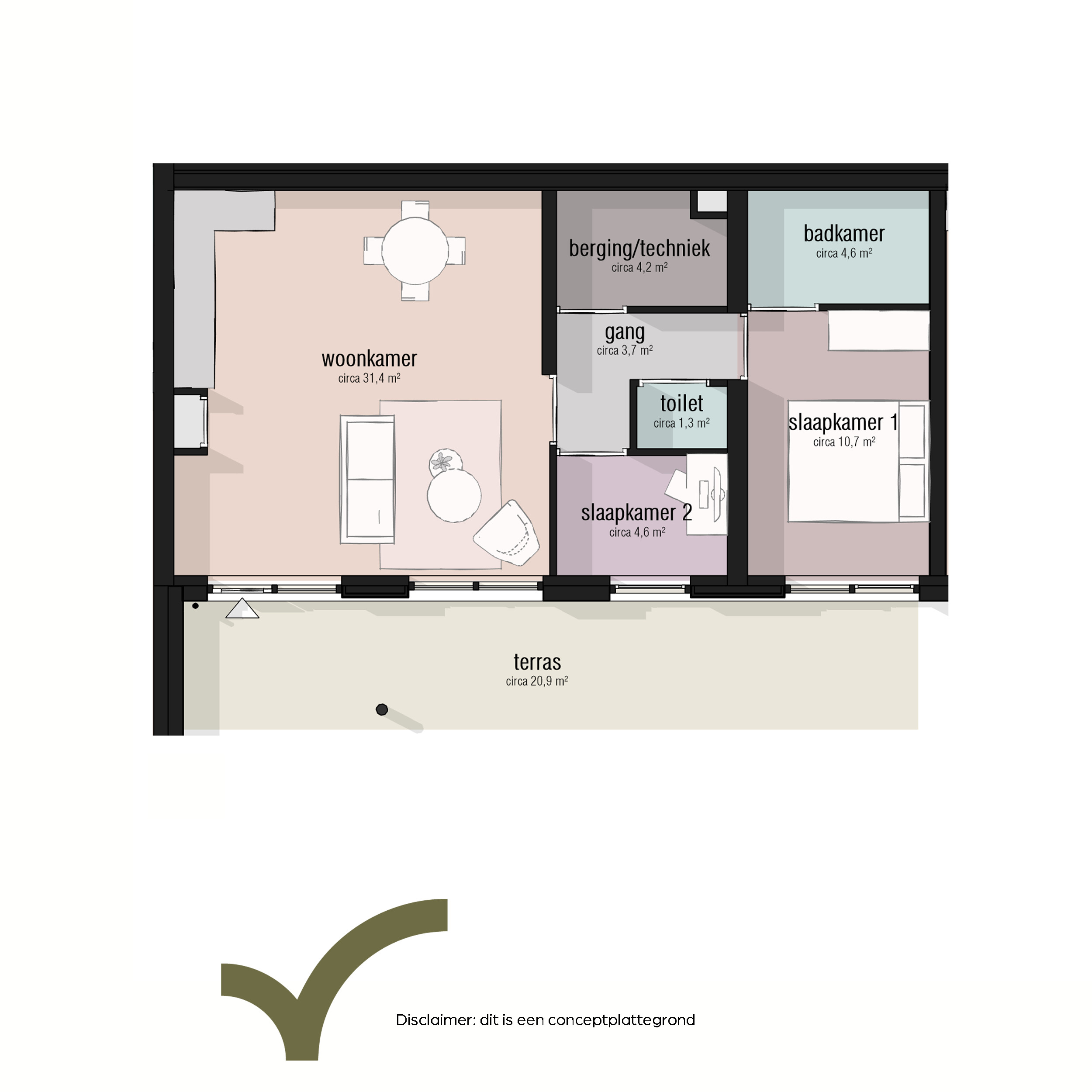 Je appartement heeft een ruime tuin (terras) van circa 21m2. Binnen valt de rustige plattegrond op: een open keuken, een volwaardige slaapkamer en handige bergruimte. Sommige varianten hebben een extra kamer voor werk of logees. Beneden stap je zo naar buiten; hoger zit je beschut en uit de wind. Fietsen staan veilig en droog, parkeren is uit het zicht en de binnentuin met huiskamer nodigt uit tot een praatje. De woningen zijn energiezuinig en stil, met een prettig binnenklimaat het hele jaar door. Zo woon je gelijkvloers, overzichtelijk en klaar voor de toekomst, precies zoals jij het graag hebt. De koopsom van het
