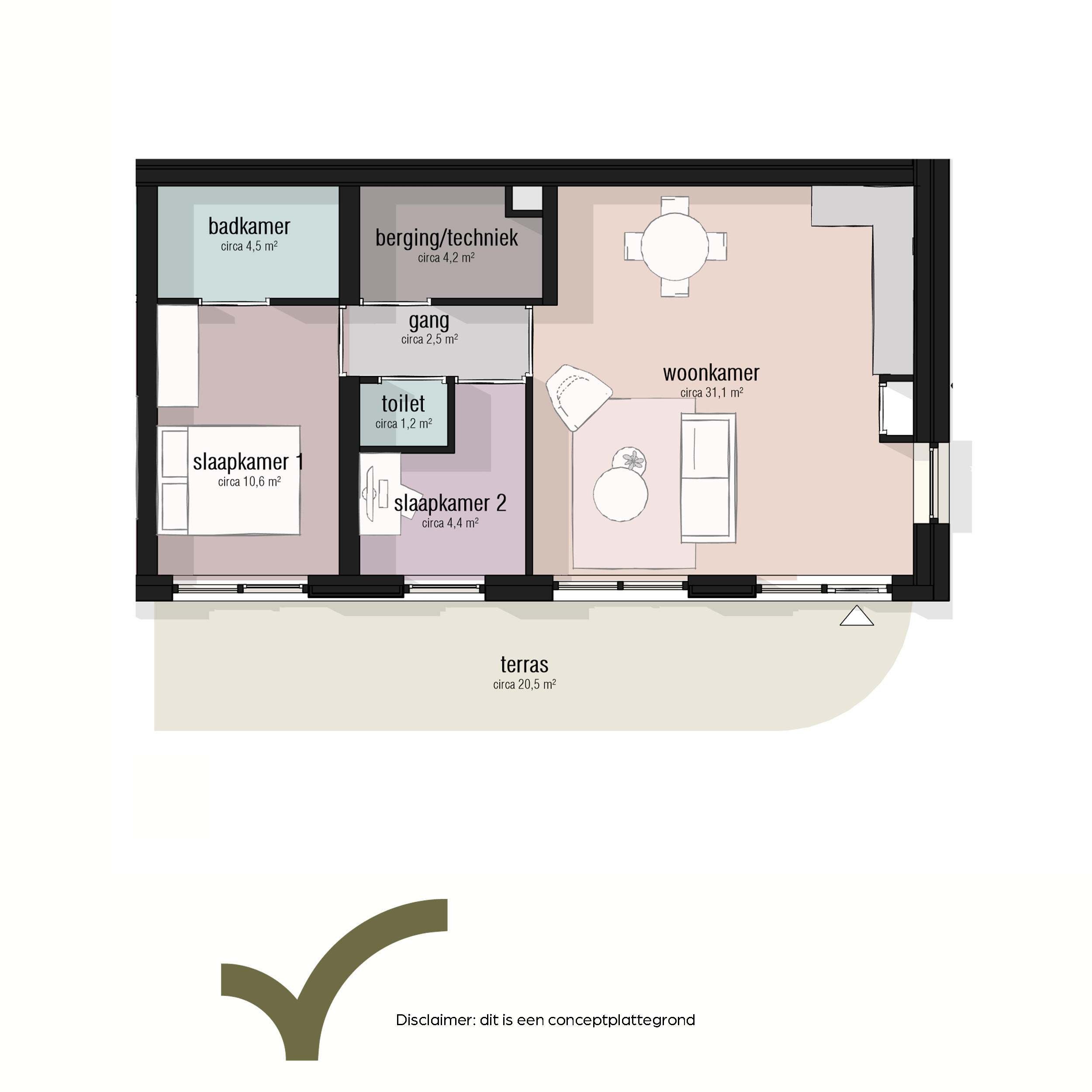 Je appartement heeft een ruime tuin (terras) van circa 20m2. Binnen valt de rustige plattegrond op: een open keuken, een volwaardige slaapkamer en handige bergruimte. Sommige varianten hebben een extra kamer voor werk of logees. Beneden stap je zo naar buiten; hoger zit je beschut en uit de wind. Fietsen staan veilig en droog, parkeren is uit het zicht en de binnentuin met huiskamer nodigt uit tot een praatje. De woningen zijn energiezuinig en stil, met een prettig binnenklimaat het hele jaar door. Zo woon je gelijkvloers, overzichtelijk en klaar voor de toekomst, precies zoals jij het graag hebt. De koopsom van het