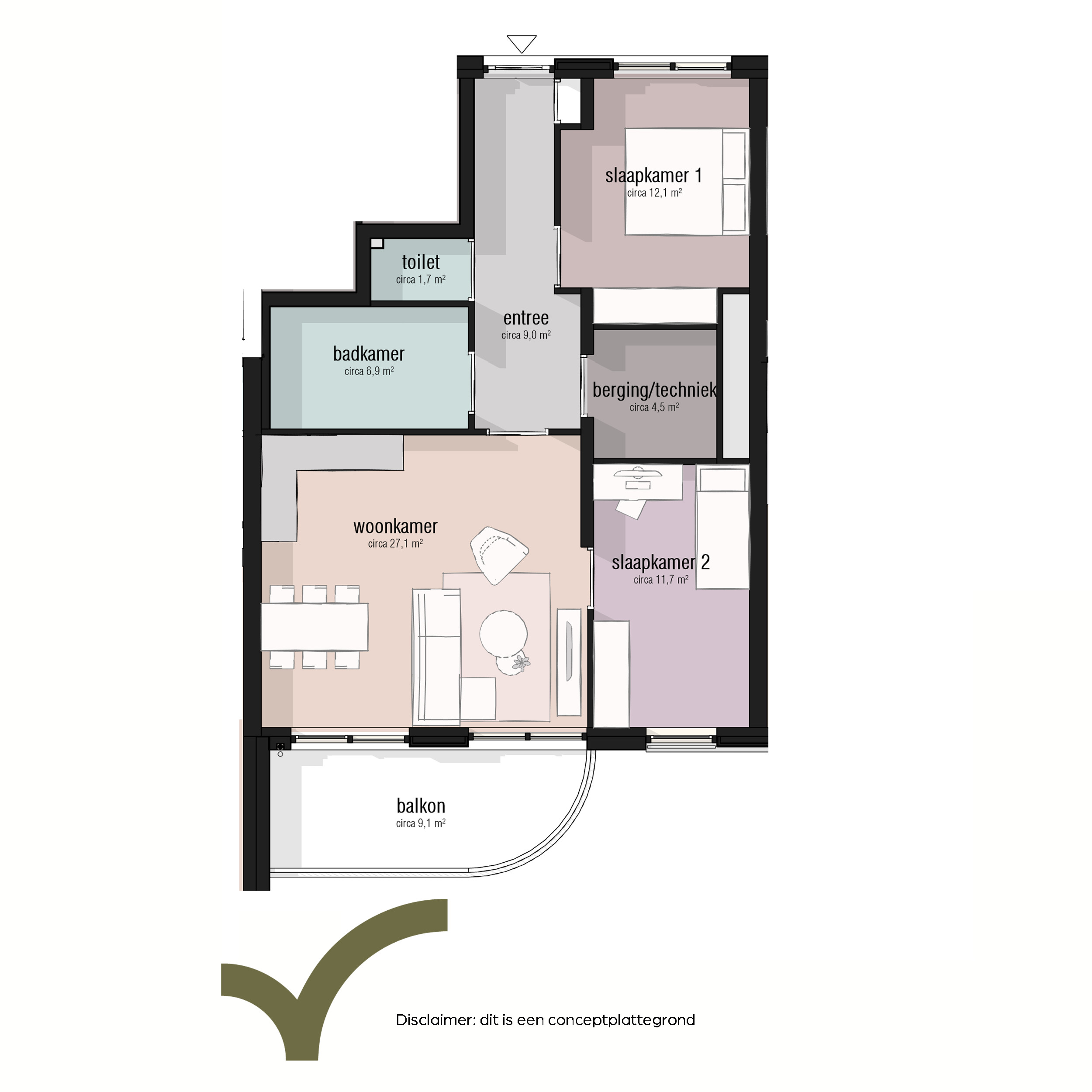 - Ruim balkon van circa 9m2;