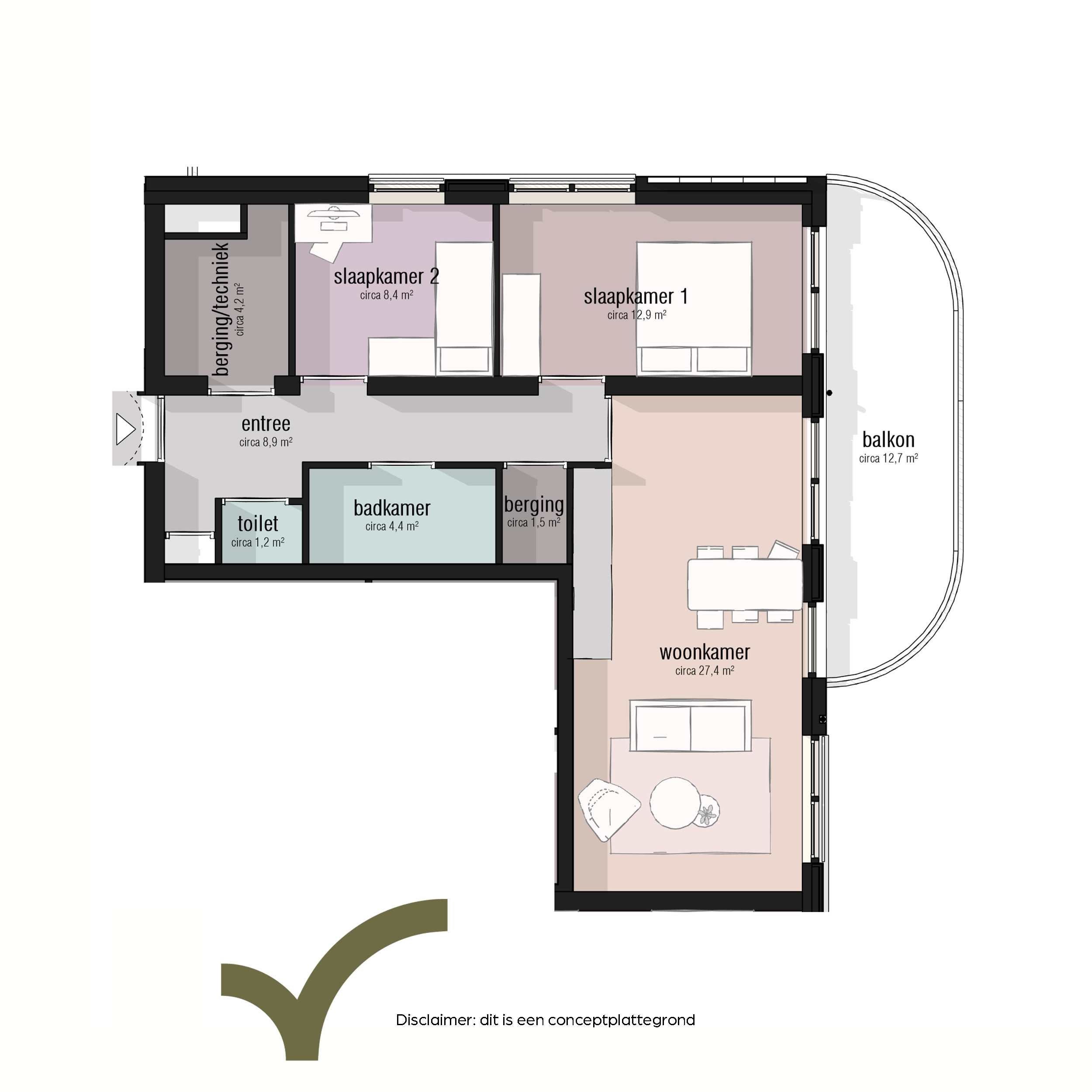 - Ruim balkon van circa 13m2;