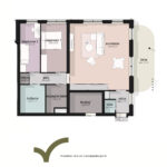 Terras binnen een royale woonkamer, twee goede slaapkamers en een slimme bergruimte. De keuken ligt centraal en leent zich voor samen koken en lang natafelen. Het comfort merk je dagelijks: een aangename temperatuur, stille kamers en lage energielasten. De koopsom van het appartement is exclusief parkeerplaats.