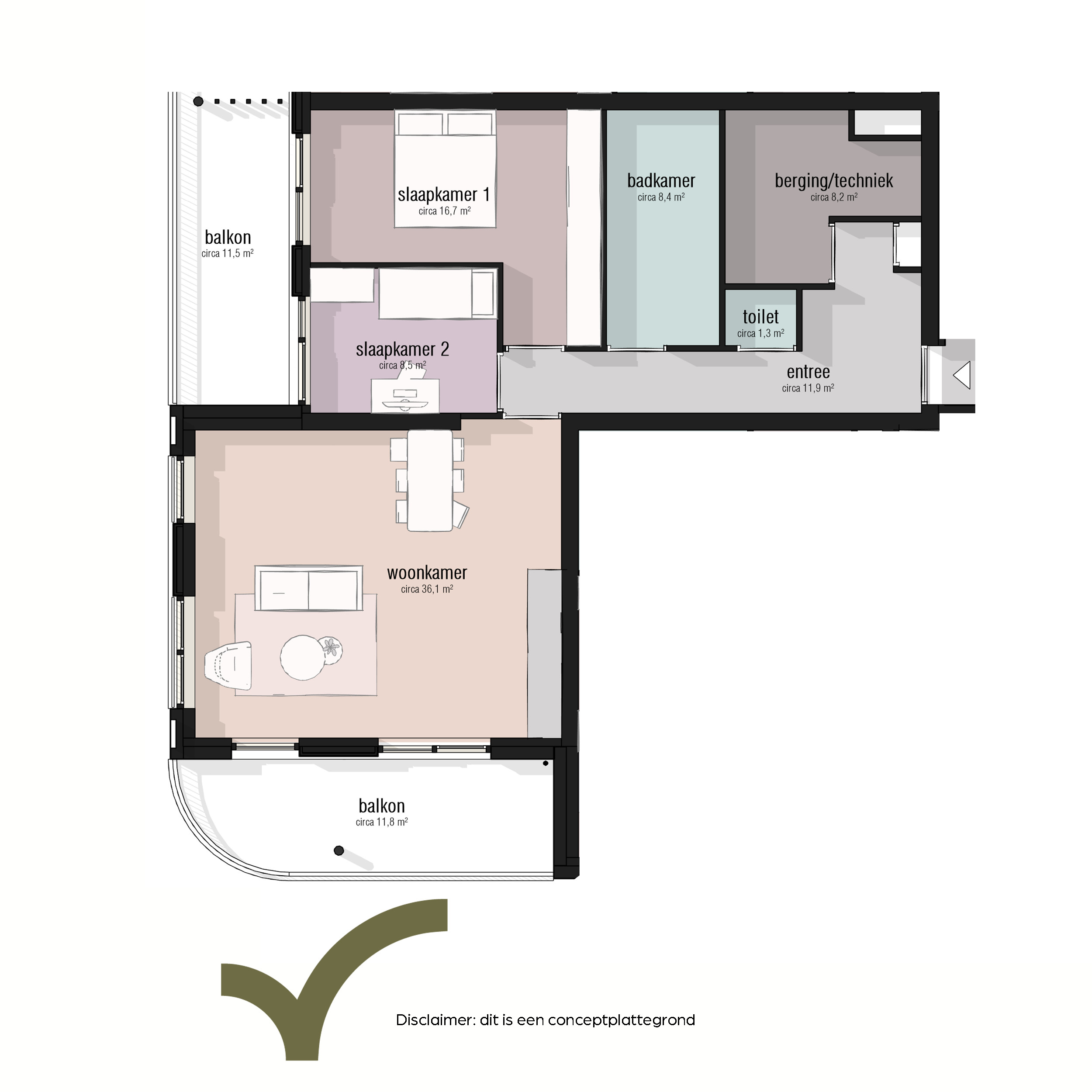 Deze appartementen bieden je alle ruimte om lang te blijven wonen, met brede leefzones en genoeg plek voor al je spullen. Dit type kent tussenvarianten en hoekvarianten, zodat je altijd een plattegrond vindt die past.