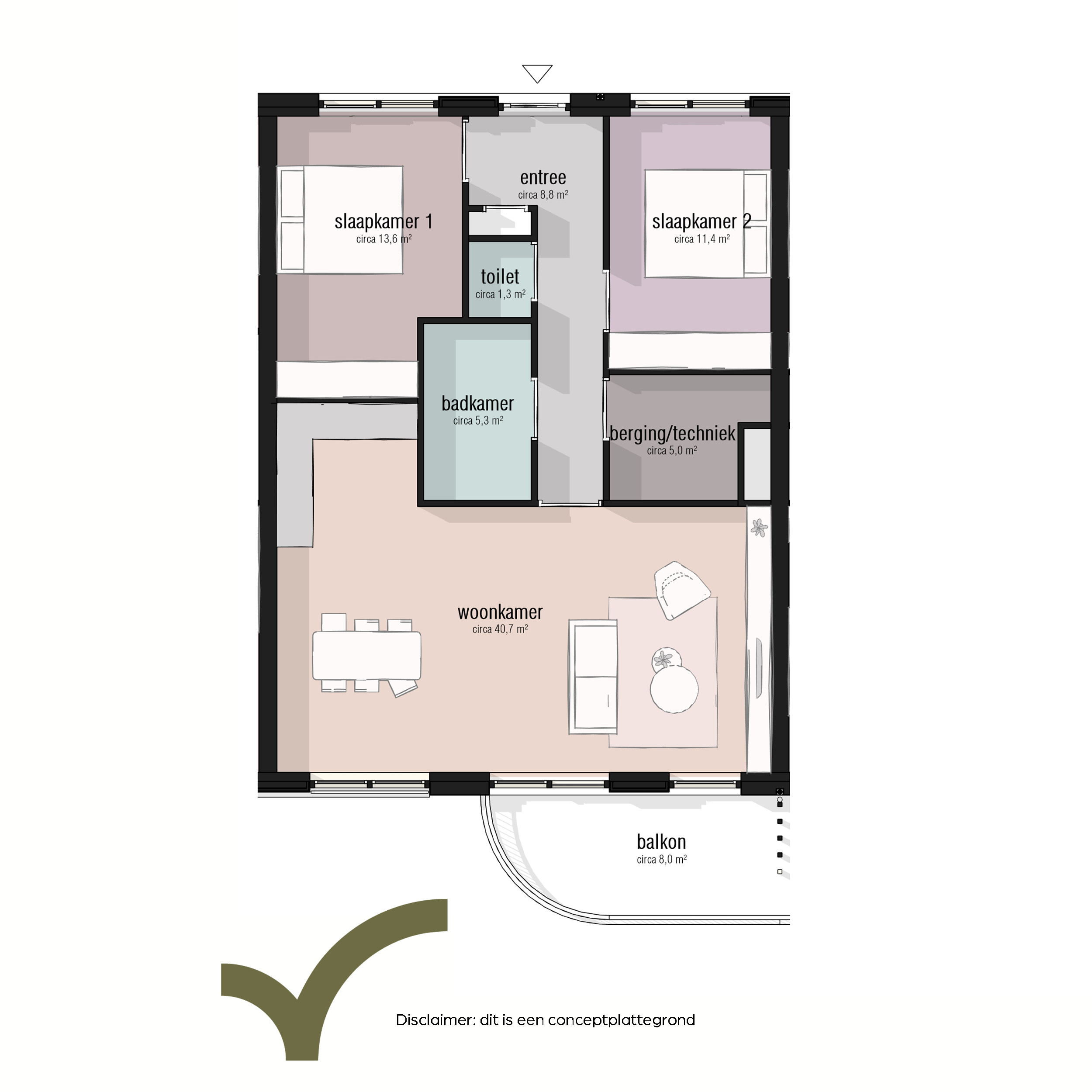 - ruim balkon van circa 8m2;