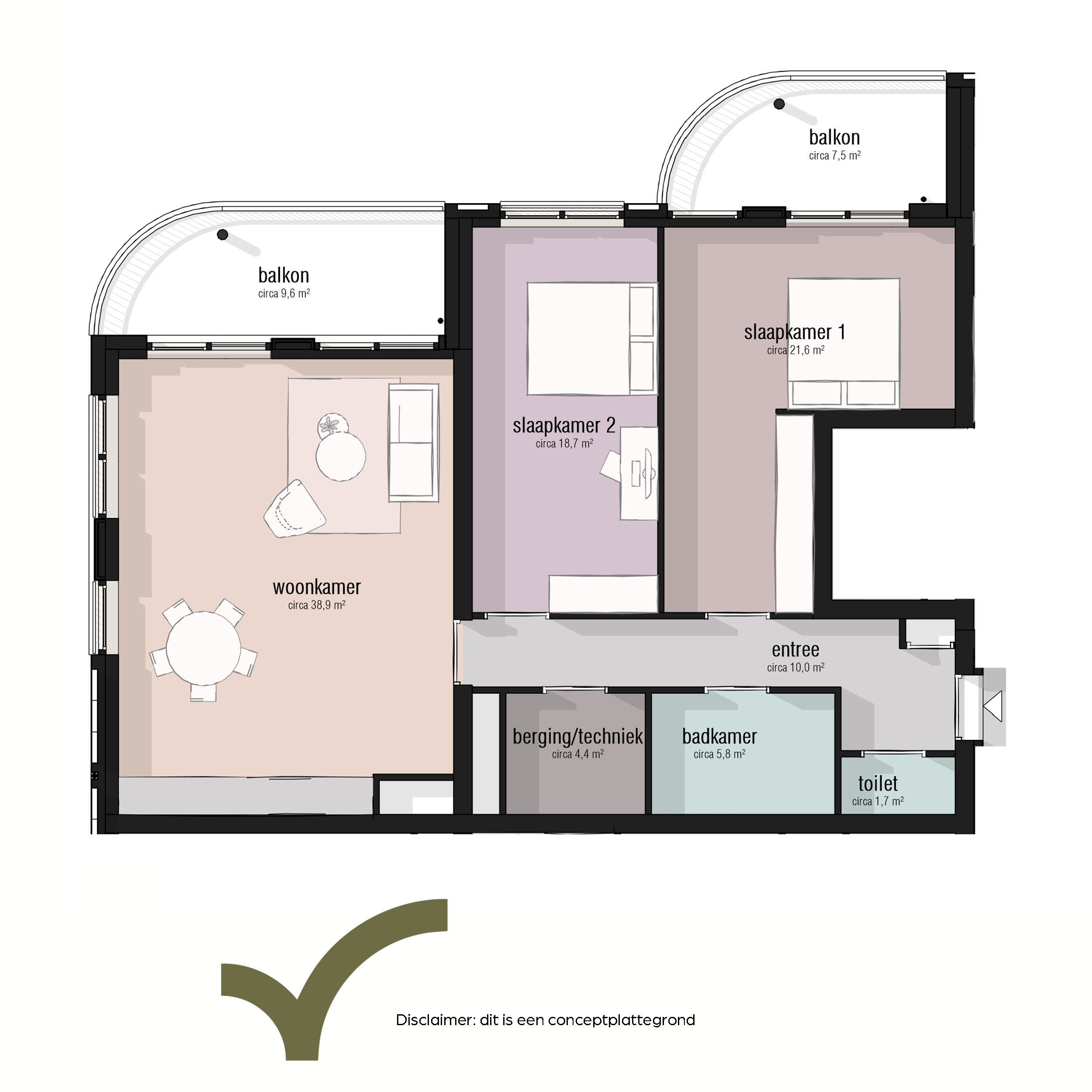 -voorzien van een balkon van circa 9m2 en balkon grenzend aan slaapkamer van circa 8m2;