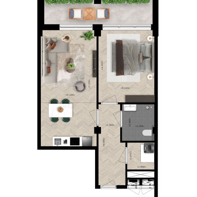 Aan de achterzijde van gebouw Velperwaard vind je dit tweekamerappartement op de begane grond. Het heeft een lichte woonkamer met open keuken. De slaapkamer grenst aan een moderne badkamer met douche en toilet. Je terras is een fijne plek om te genieten van de parkachtige omgeving.