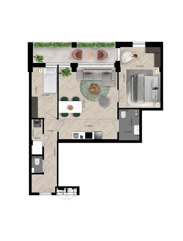 Dit speels ingedeelde appartement vind je op je eerste verdieping, aan de achterzijde van het gebouw. Het heeft een grote hoofdslaapkamer en een kleinere slaapkamer die je ook als werkkamer kunt gebruiken. Je woonkamer met open keuken grenst aan het zonnige balkon. DE badkamer is compleet uitgerust en in de hal is een tweede toilet.