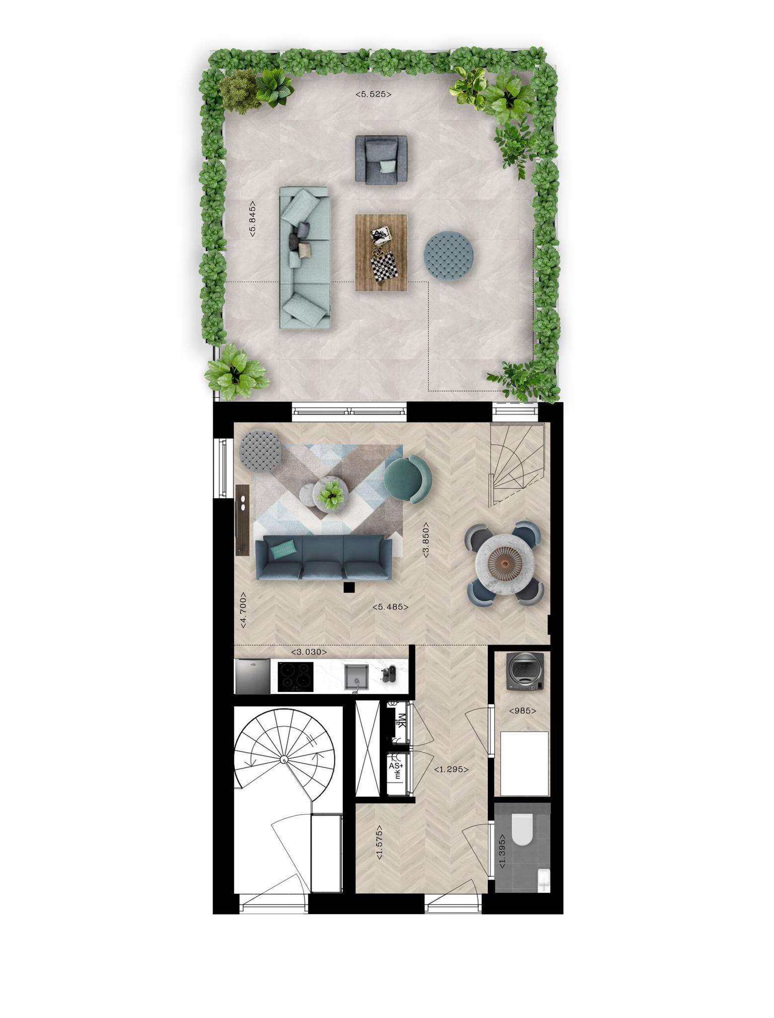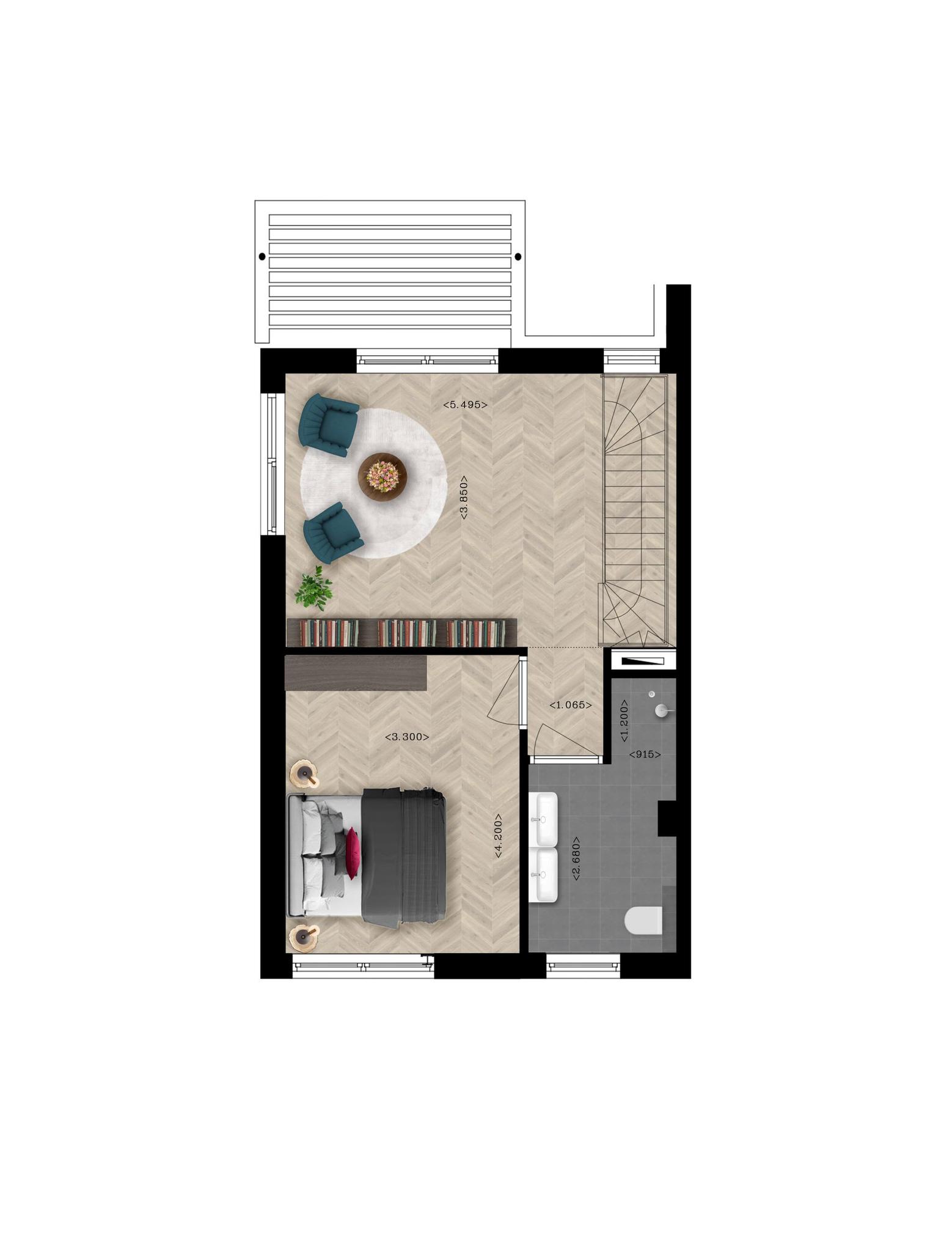 - Ruim dakterras van circa 42m2 met uitzicht over Velp;
