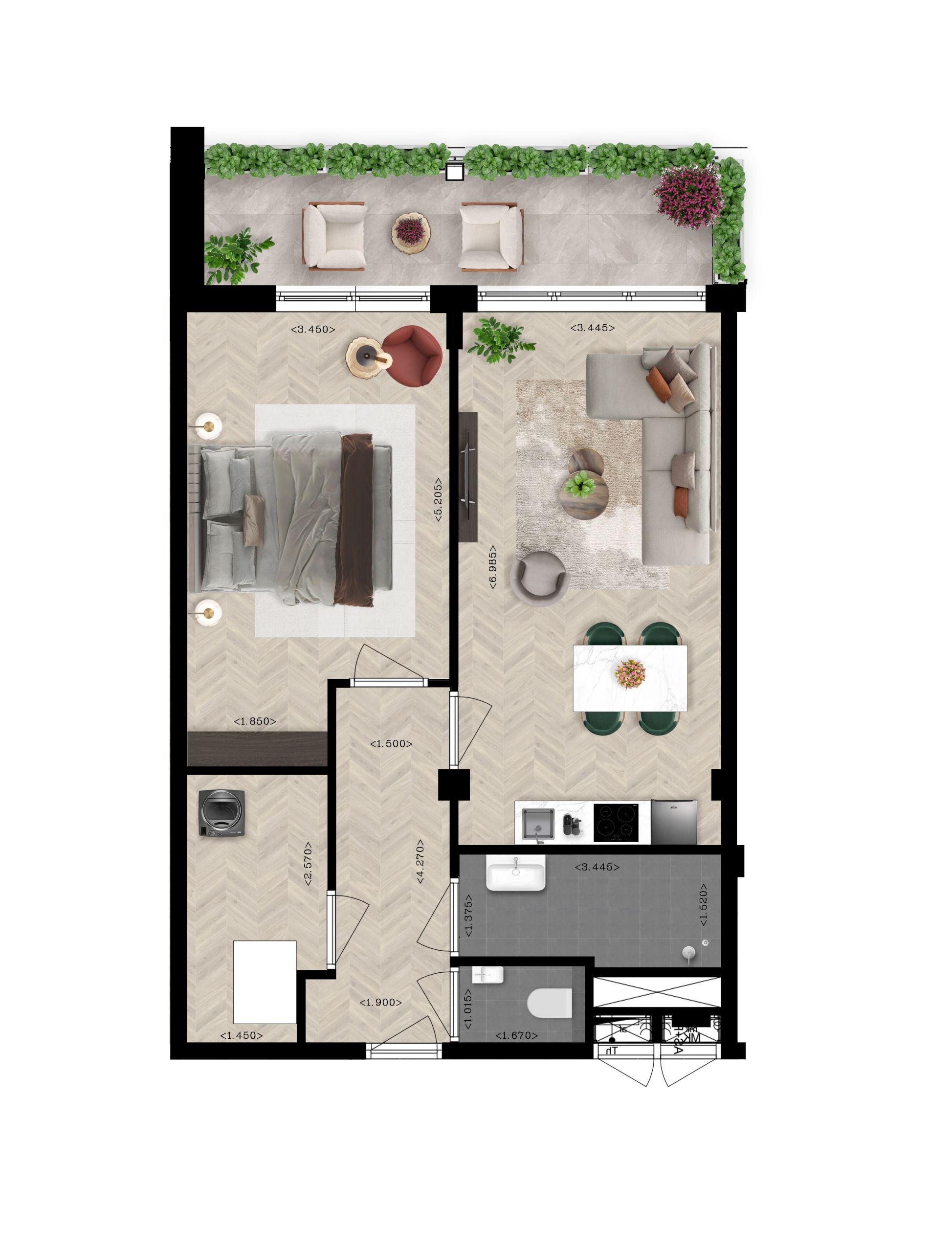 Wat meteen opvalt aan deze tweekamerappartementen op de zevende en achtste verdieping van Velperwaard zijn de grote slaapkamer en de royale berging. De badkamer is compleet uitgerust met een douche en het toilet vind je separaat op de hal. De woonkamer met open keuken grenst aan het zonnige balkon op het zuidwesten.