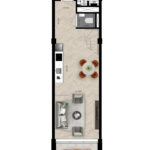 Er zijn twee woningen van dit type. Het zijn tweelaagse loftwoningen met een open woonkamer en keuken op de begane grond. Boven heb je een ruime slaapkamer en een badkamer met bad en douche. Een apart toilet en een inpandige berging zorgen voor extra comfort. Het terras grenst aan de groene openbare ruimte.