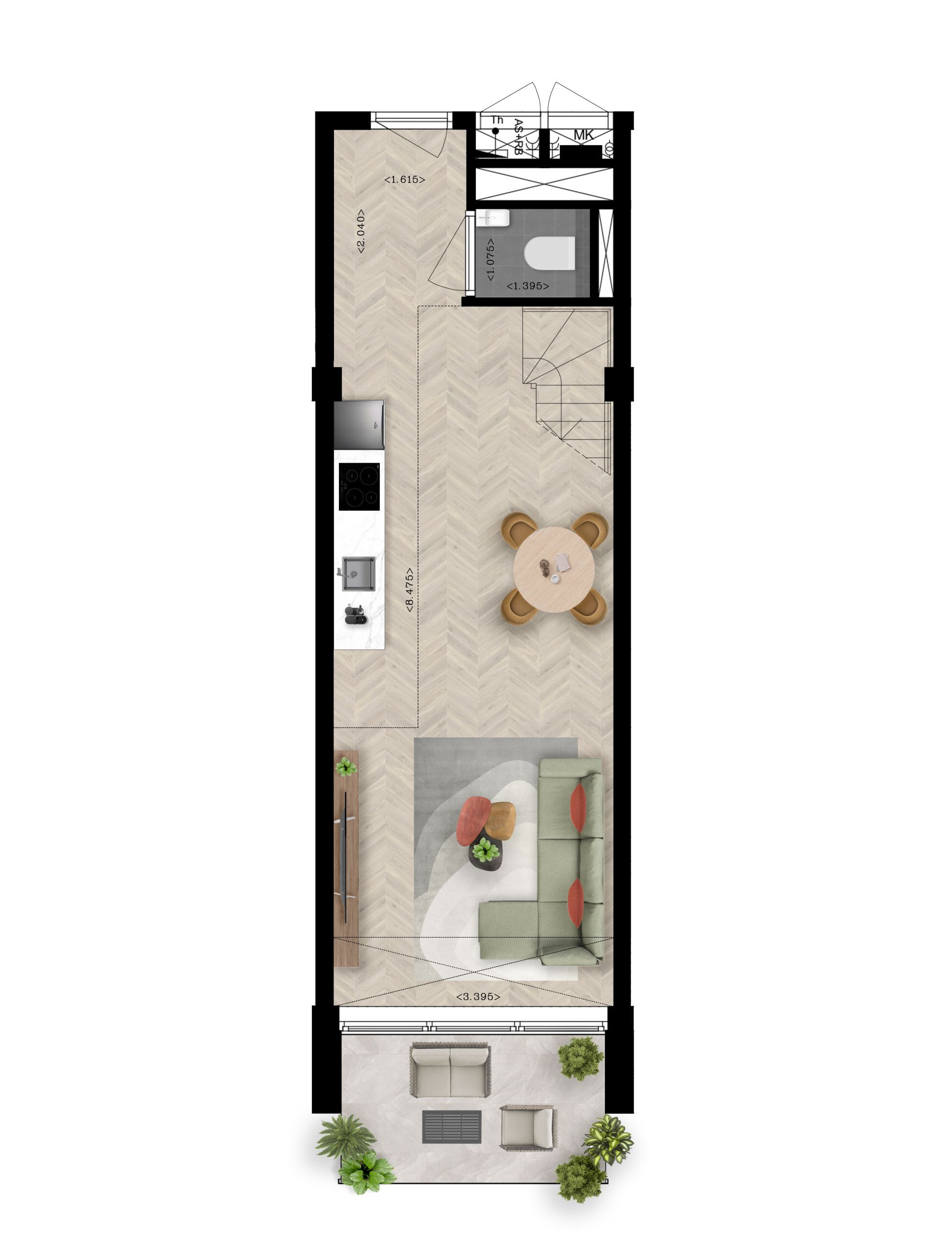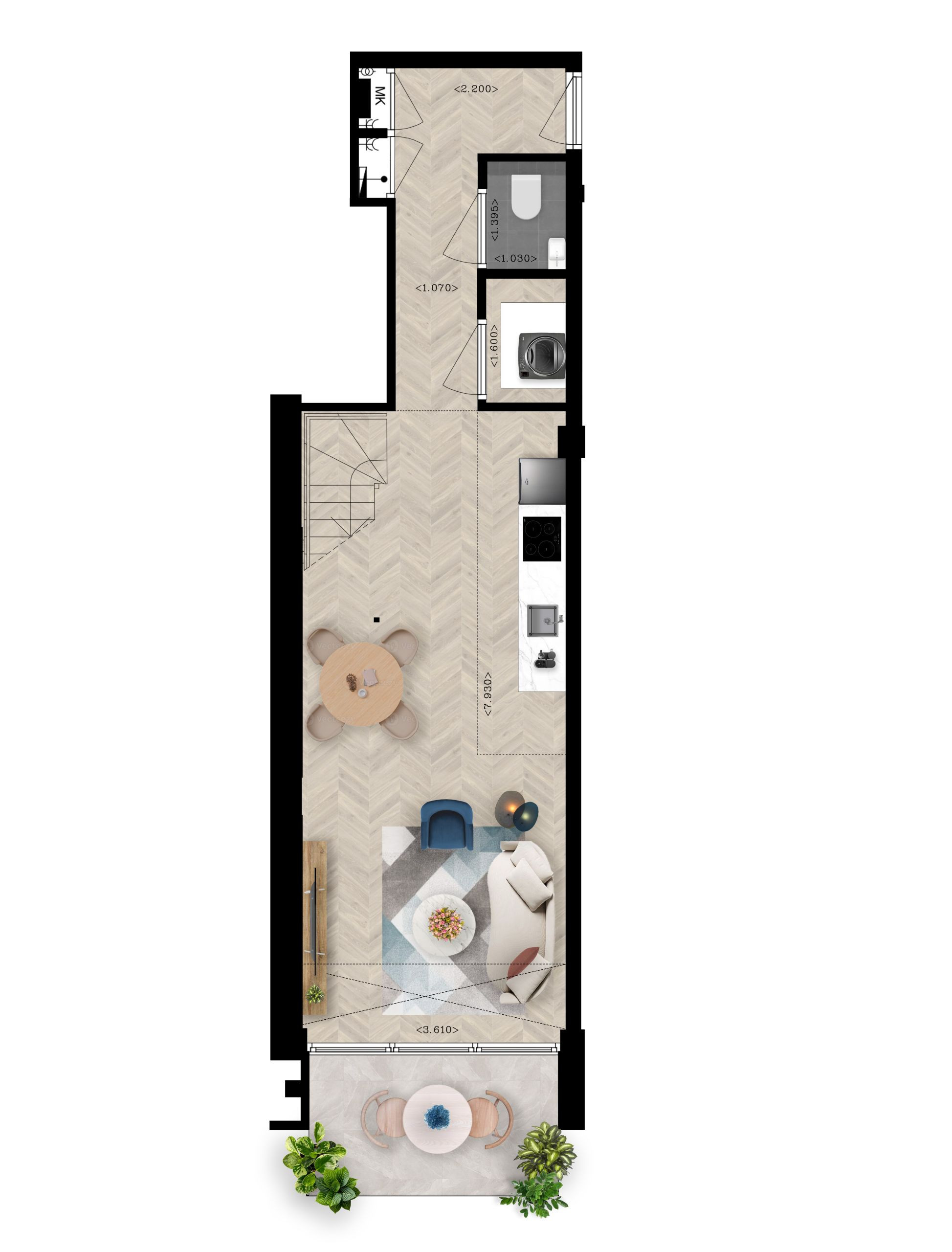 Wat een fijne tweelaagse loftwoning met wenteltrap, zonnige woonkamer en keuken is dit. Op de bovenverdieping heb je een ruime slaapkamer, een badkamer met bad en douche en een apart toilet. Vanuit je woonkamer loop je zo het terras op dat grenst aan het parkje voor je deur. Een fijne plek om heel wat zomerse uurtjes door te brengen. Een inpandige berging biedt extra opbergruimte.