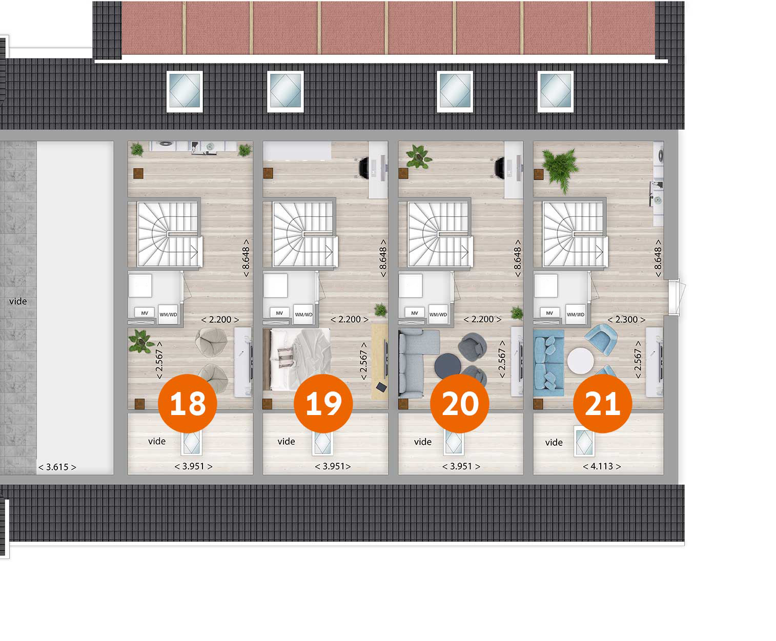 Er zijn 4 woningen beschikbaar van Type Deel, te weten de bouwnummers 18 t/m 21