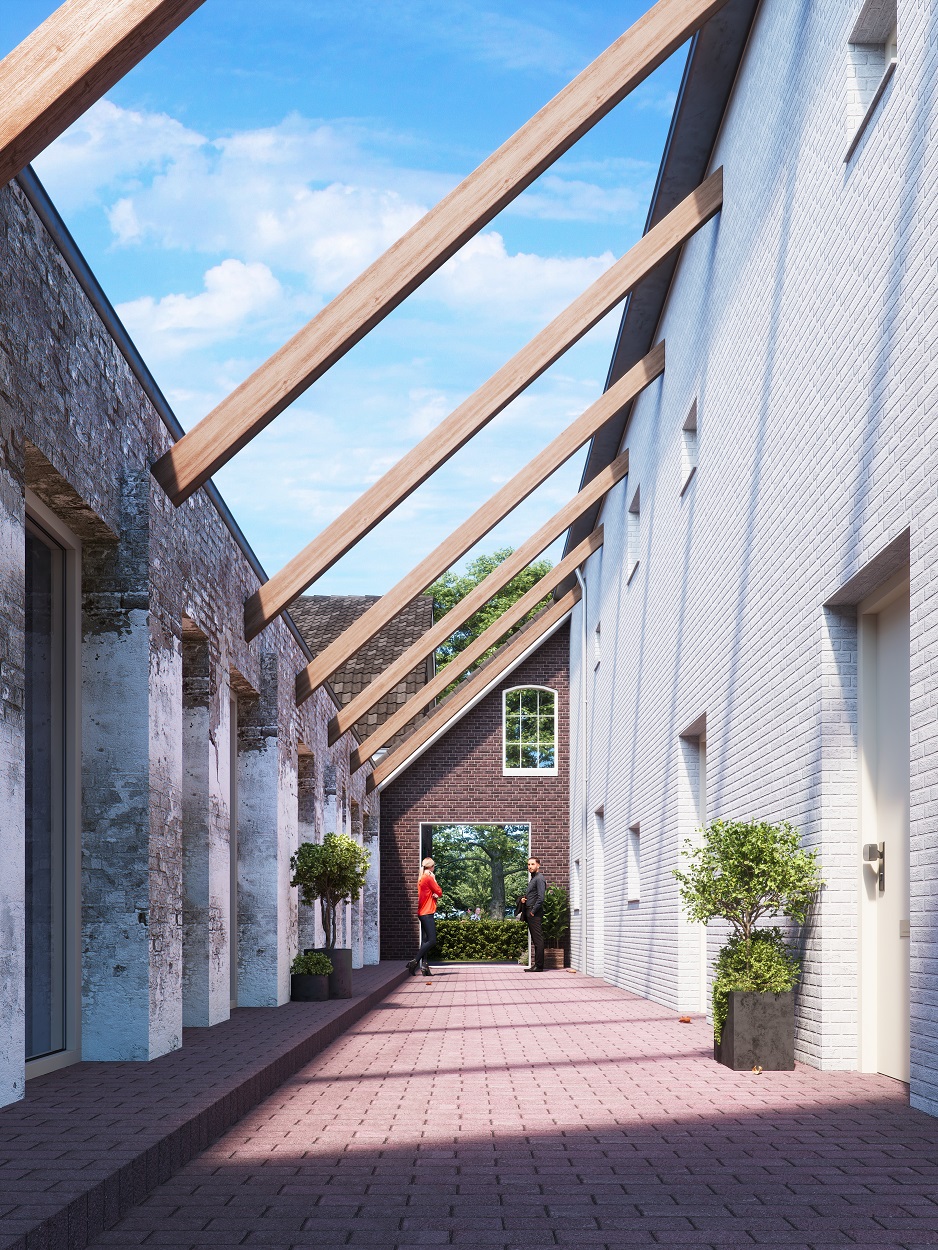 De woningen type Deel en de Kapschuur hebben hun unieke entree in het straatje dat tussen de woningen is gecreëerd. De buitenzijde van het gebouw behoudt hiermee het karakter van de boerderij en het omliggende groen.