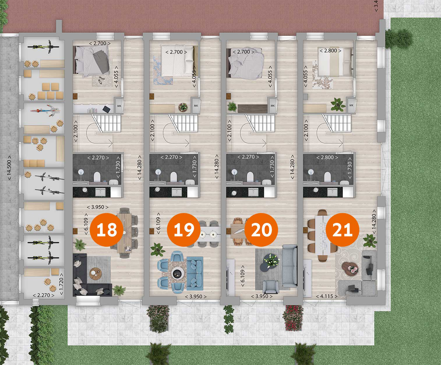 Er zijn 4 woningen beschikbaar van Type Deel, te weten de bouwnummers 18 t/m 21