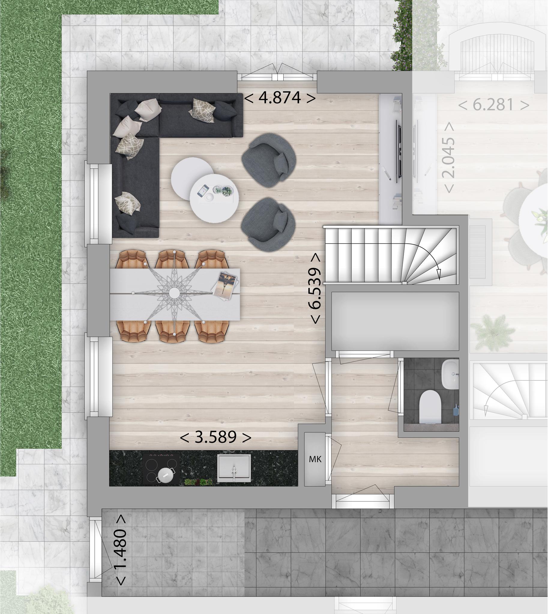 Het type Voorhuis is gelegen in de monumentale boerderij, vier woningen in het voorhuis en 4 woningen in het achterhuis (type Deel).