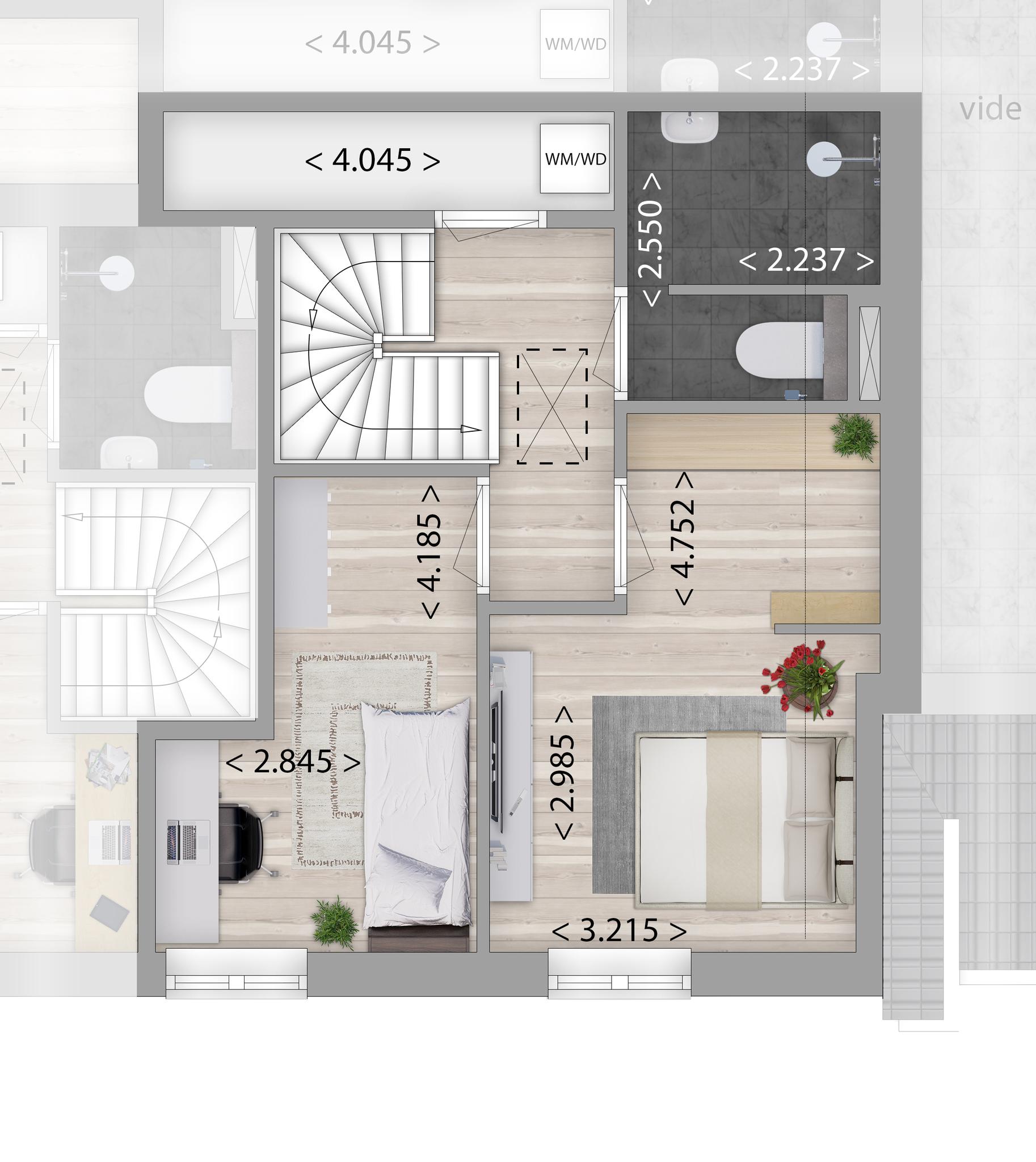 Het type Voorhuis is gelegen in de monumentale boerderij, vier woningen in het voorhuis en 4 woningen in het achterhuis (type Deel).
