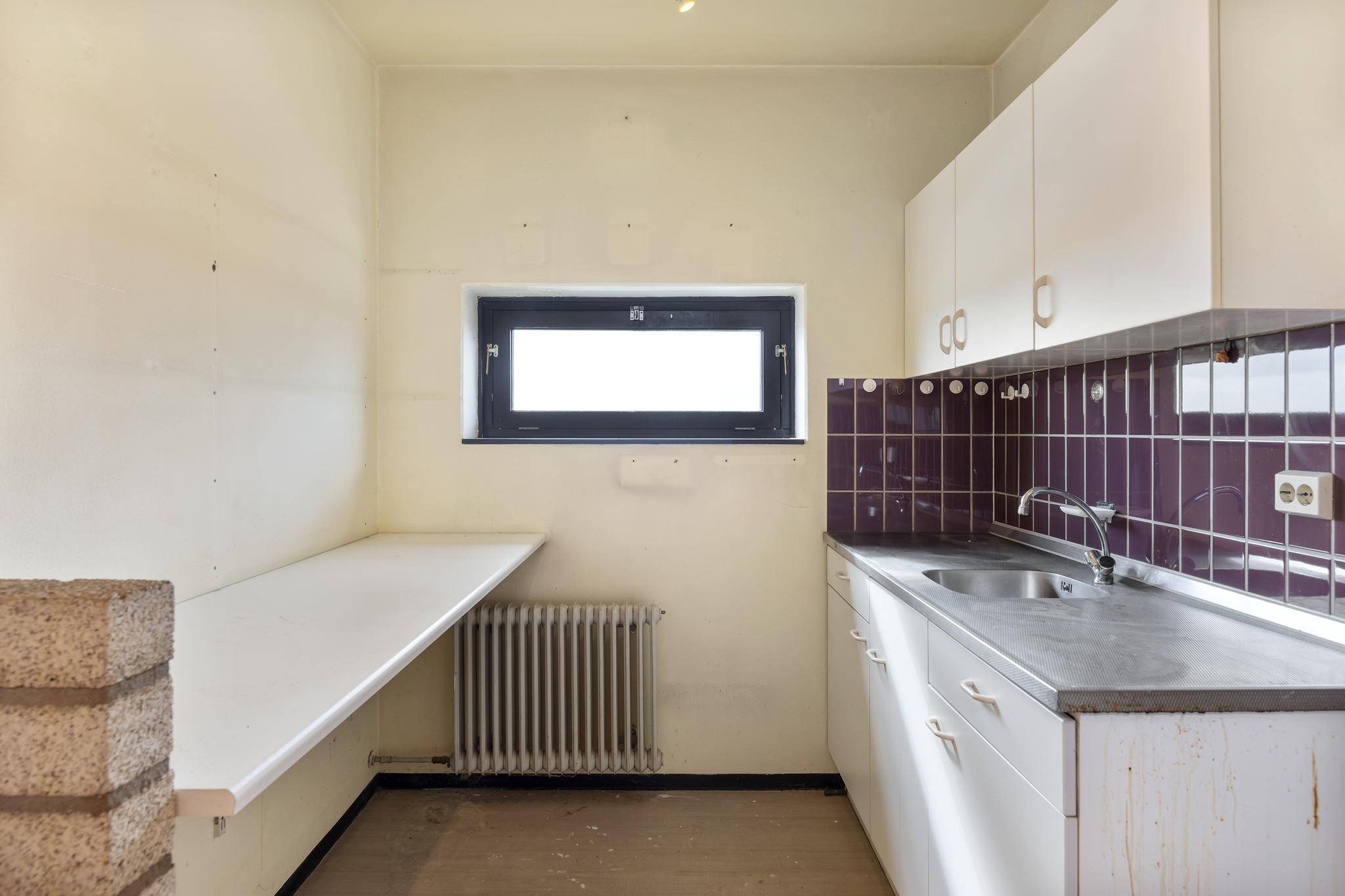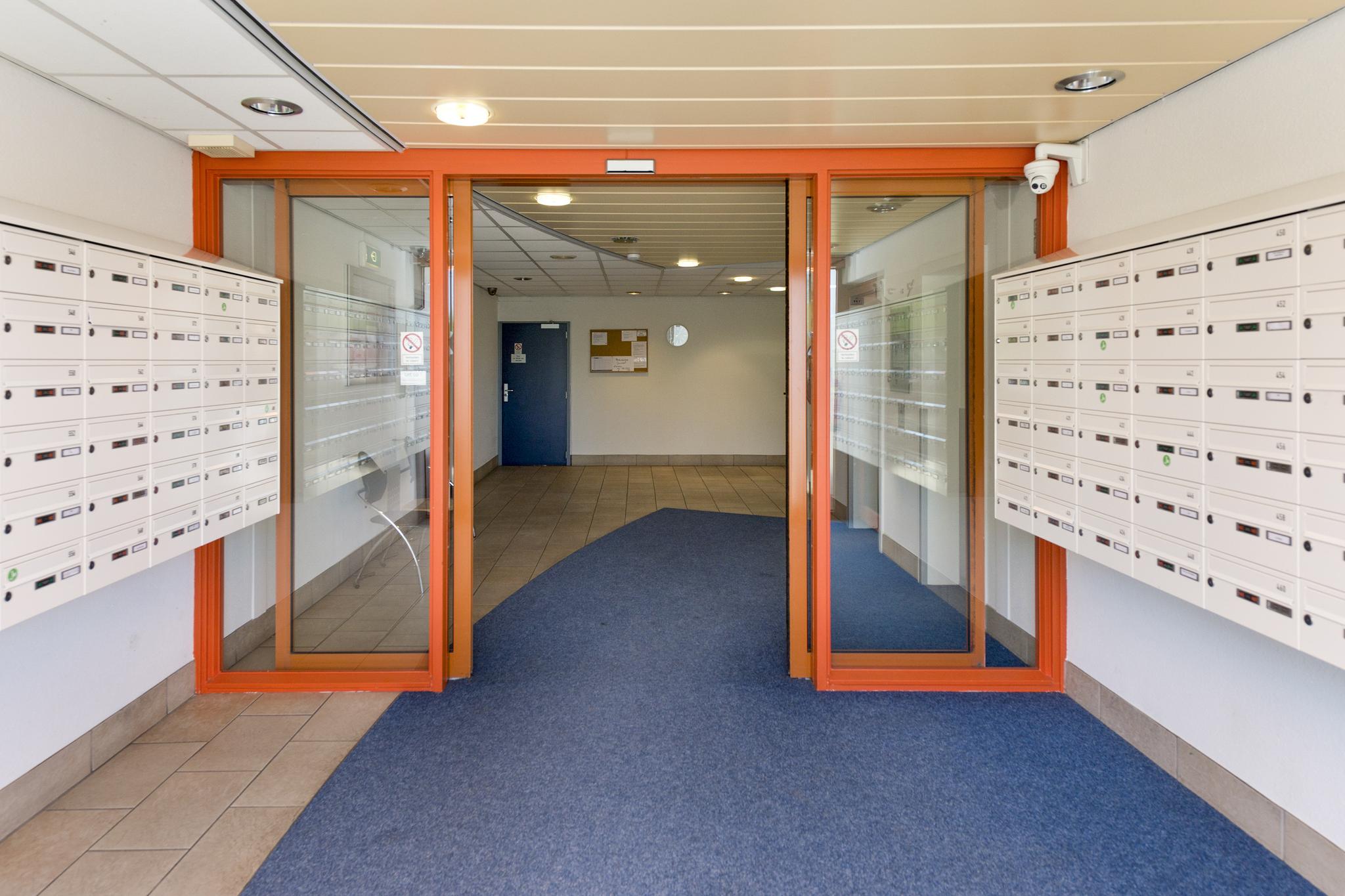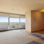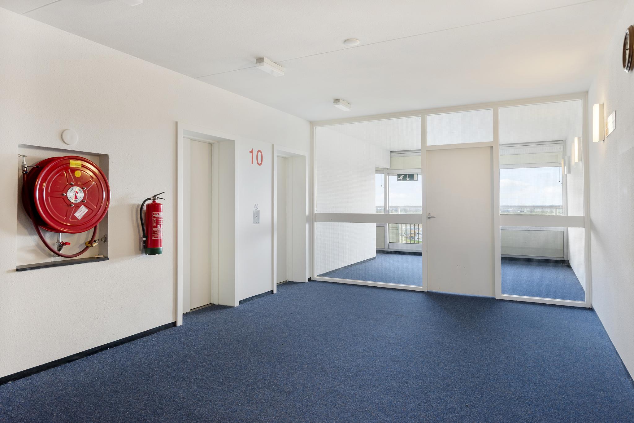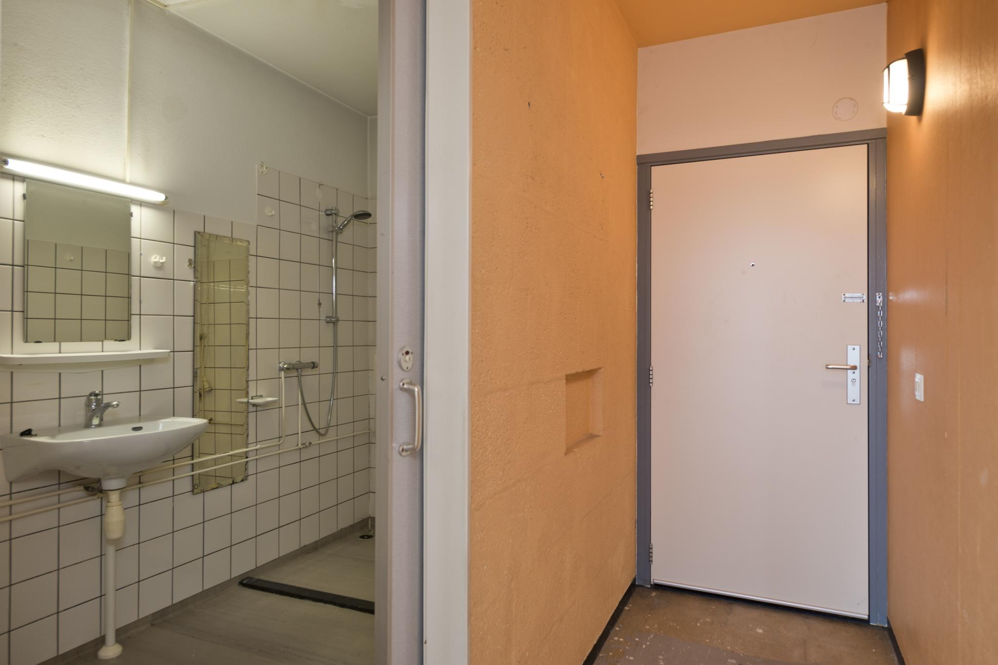 5e verdieping: entree, ruime lichte woonkamer met open keuken, tussenruimte ideaal als werkplek, goed formaat slaapkamer, badkamer voorzien van toilet, wastafel, doucheruimte en aansluiting wasmachine. Door de schuifpui in de woonkamer heeft u toegang tot het balkon, dat zich uitstrekt over de gehele breedte van het appartement. Rustig gelegen op de bovenste verdieping van het complex met fraai en levendig uitzicht.
