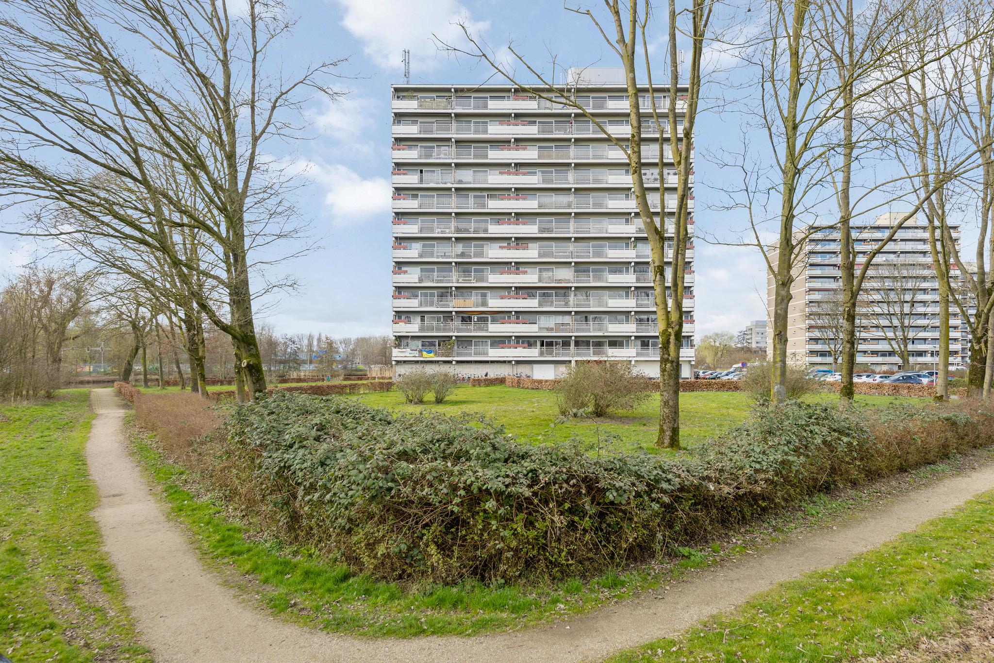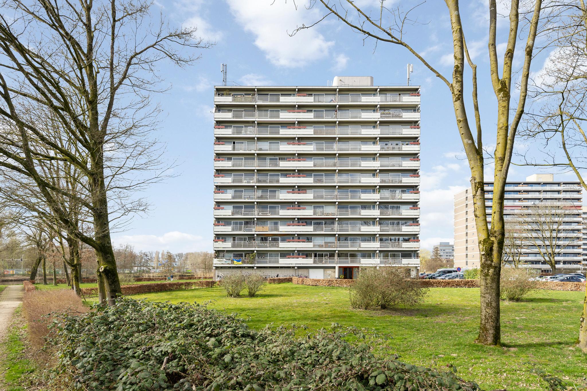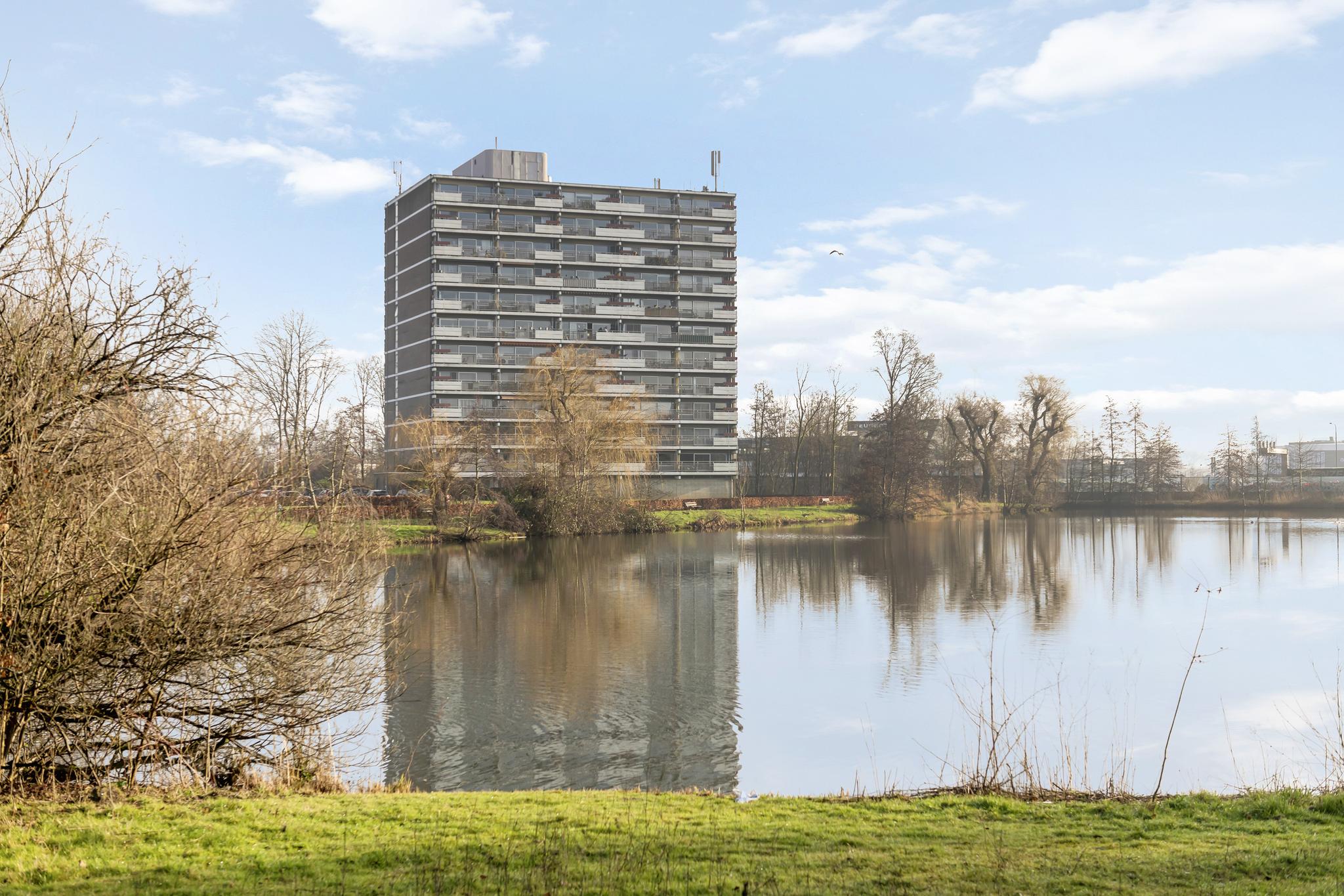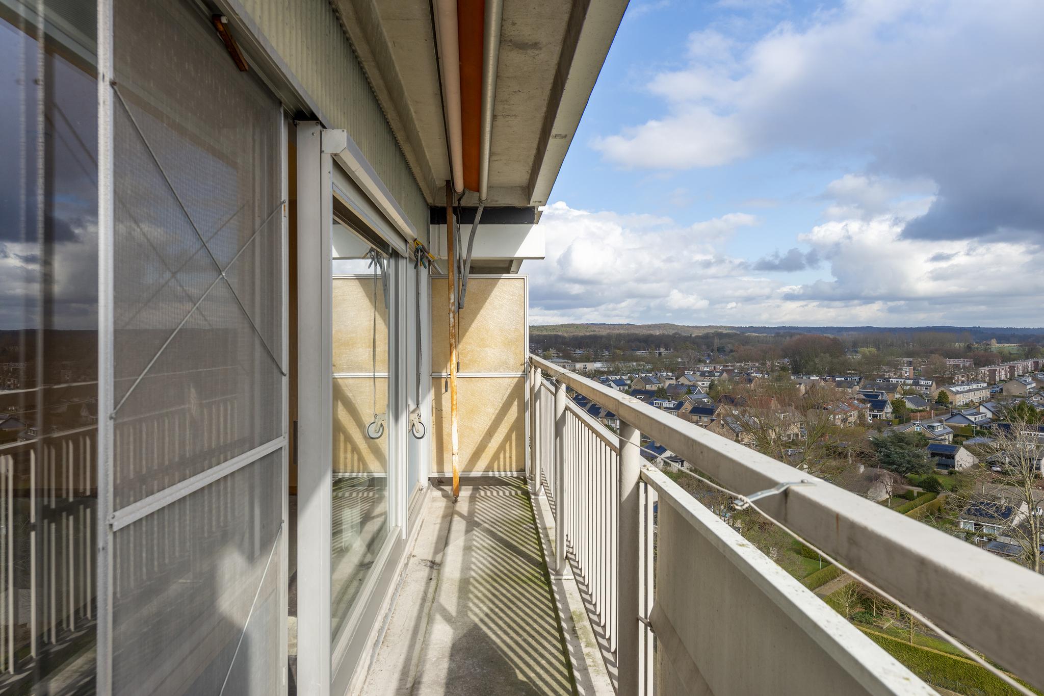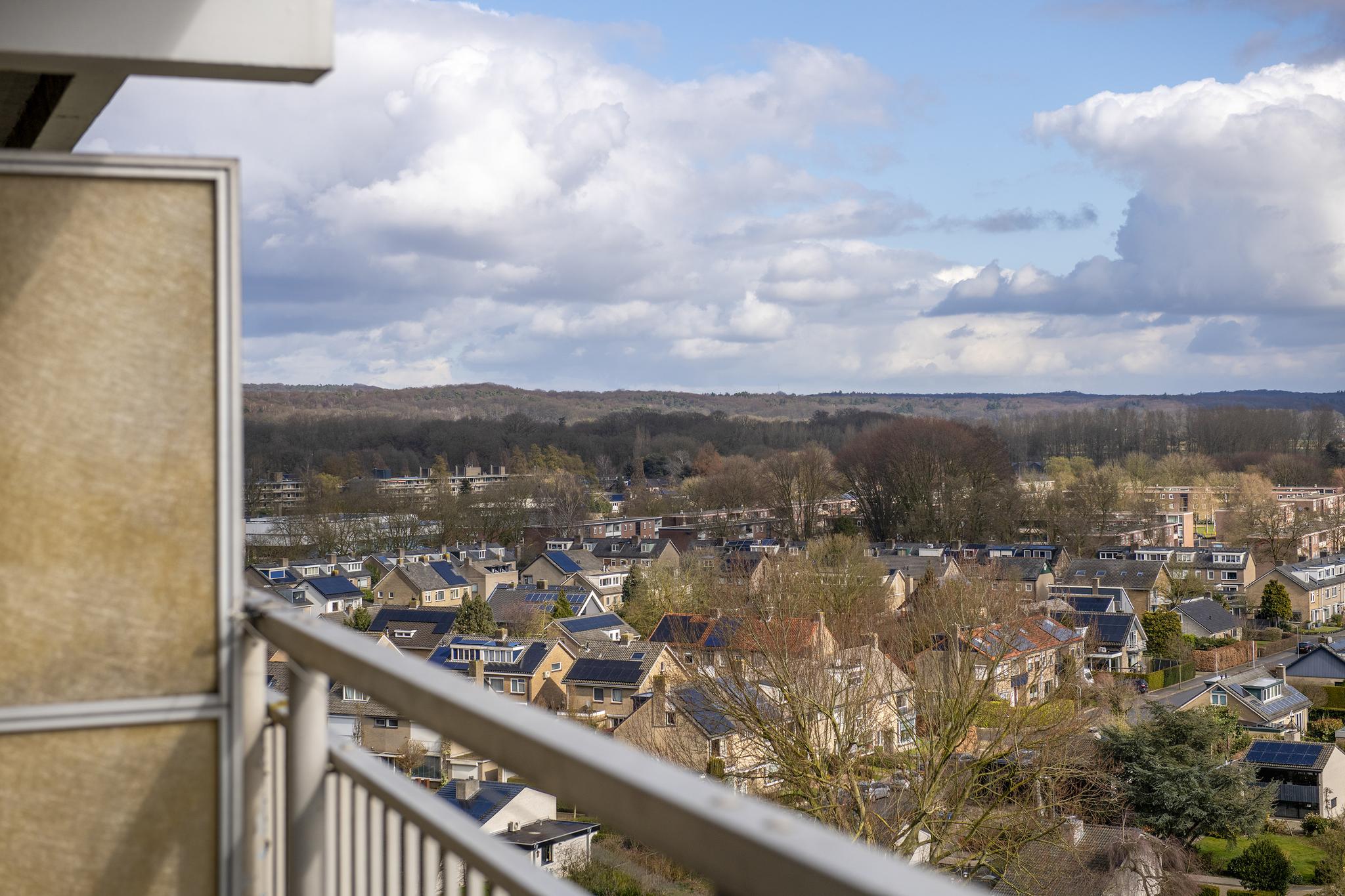 Prettig hoekappartement met open keuken en fraai uitzicht, rustig gelegen op de 5e verdieping. Het appartement heeft een prettig balkon op het westen met vrij zicht over Velp.
