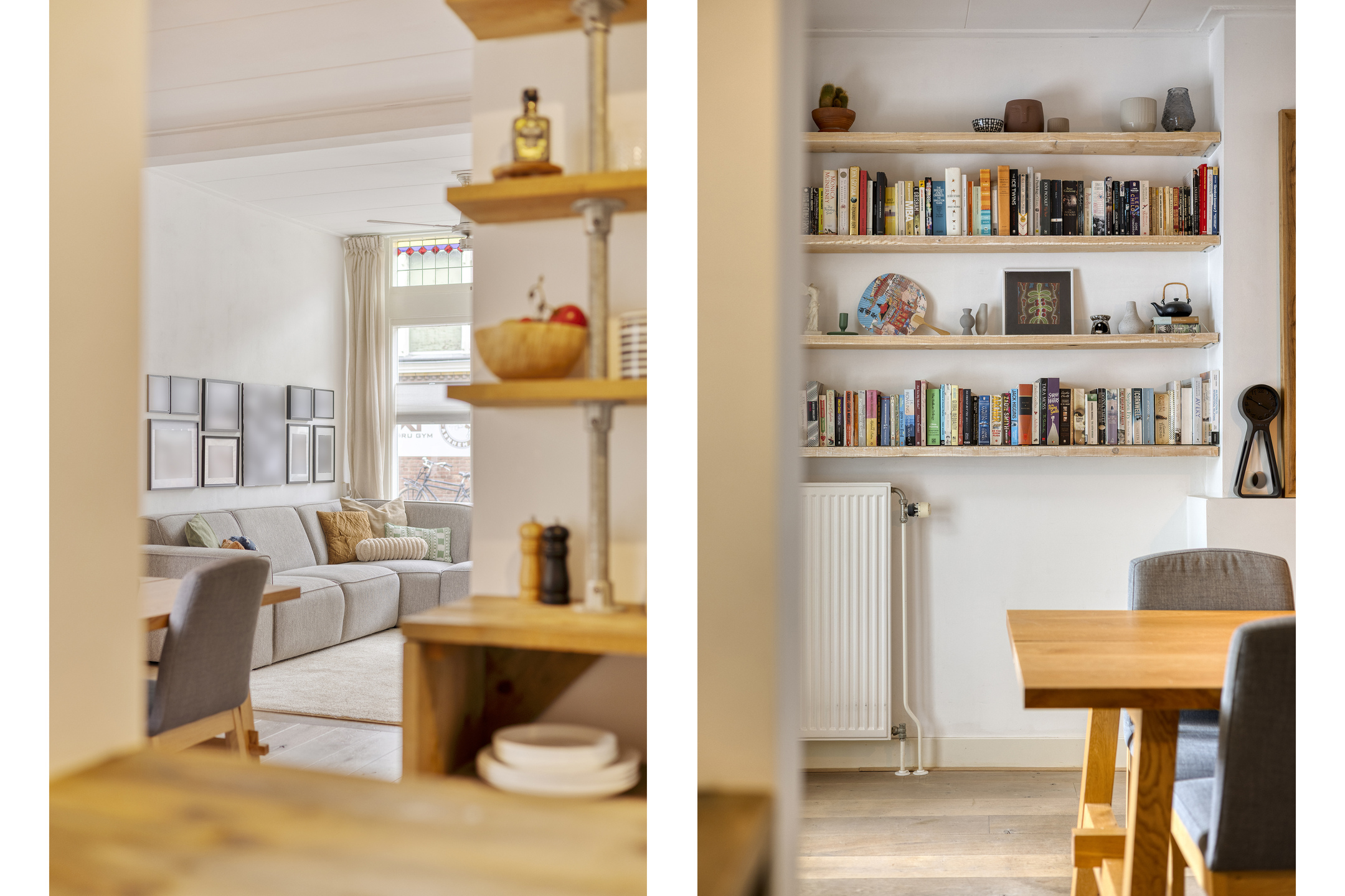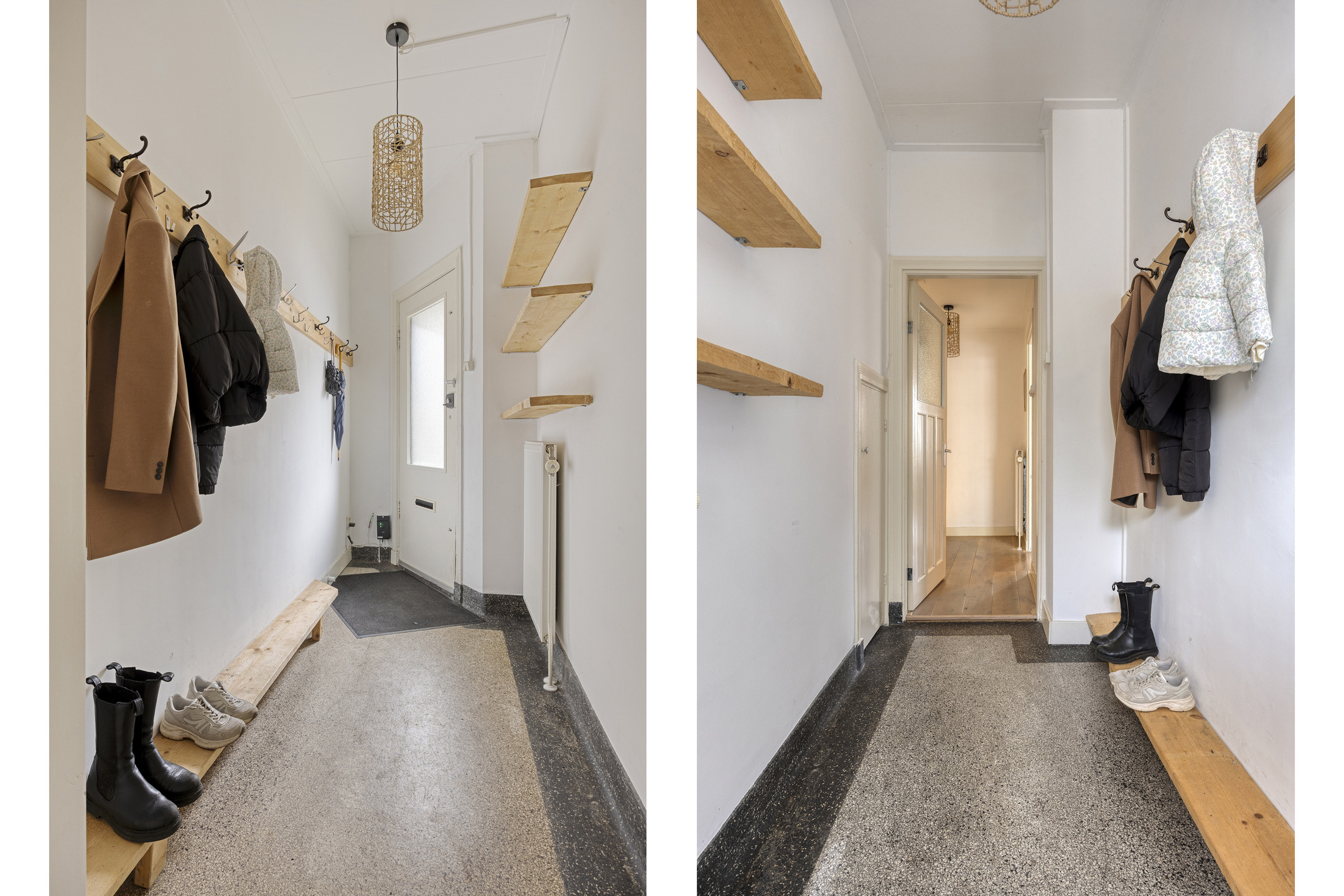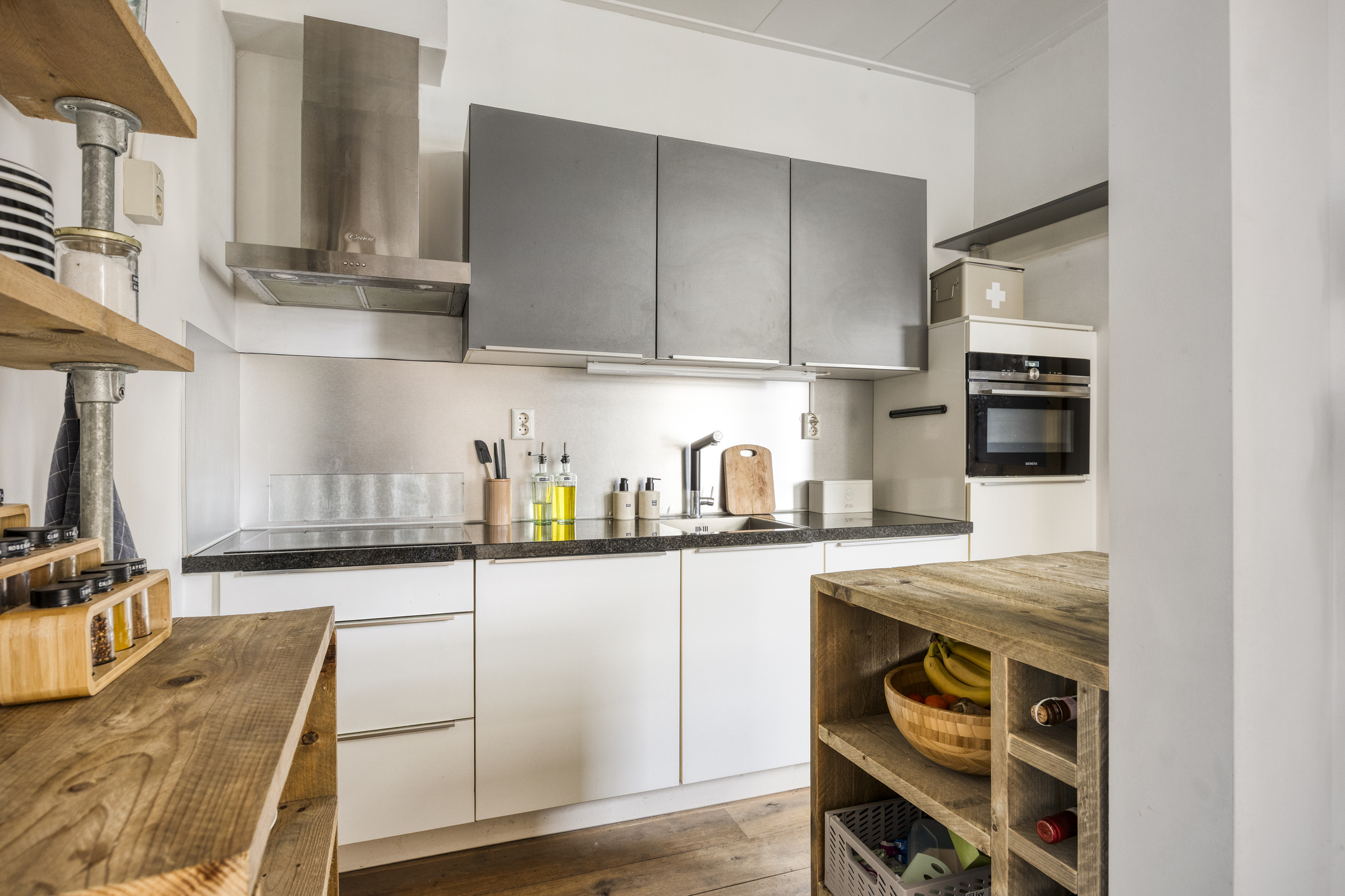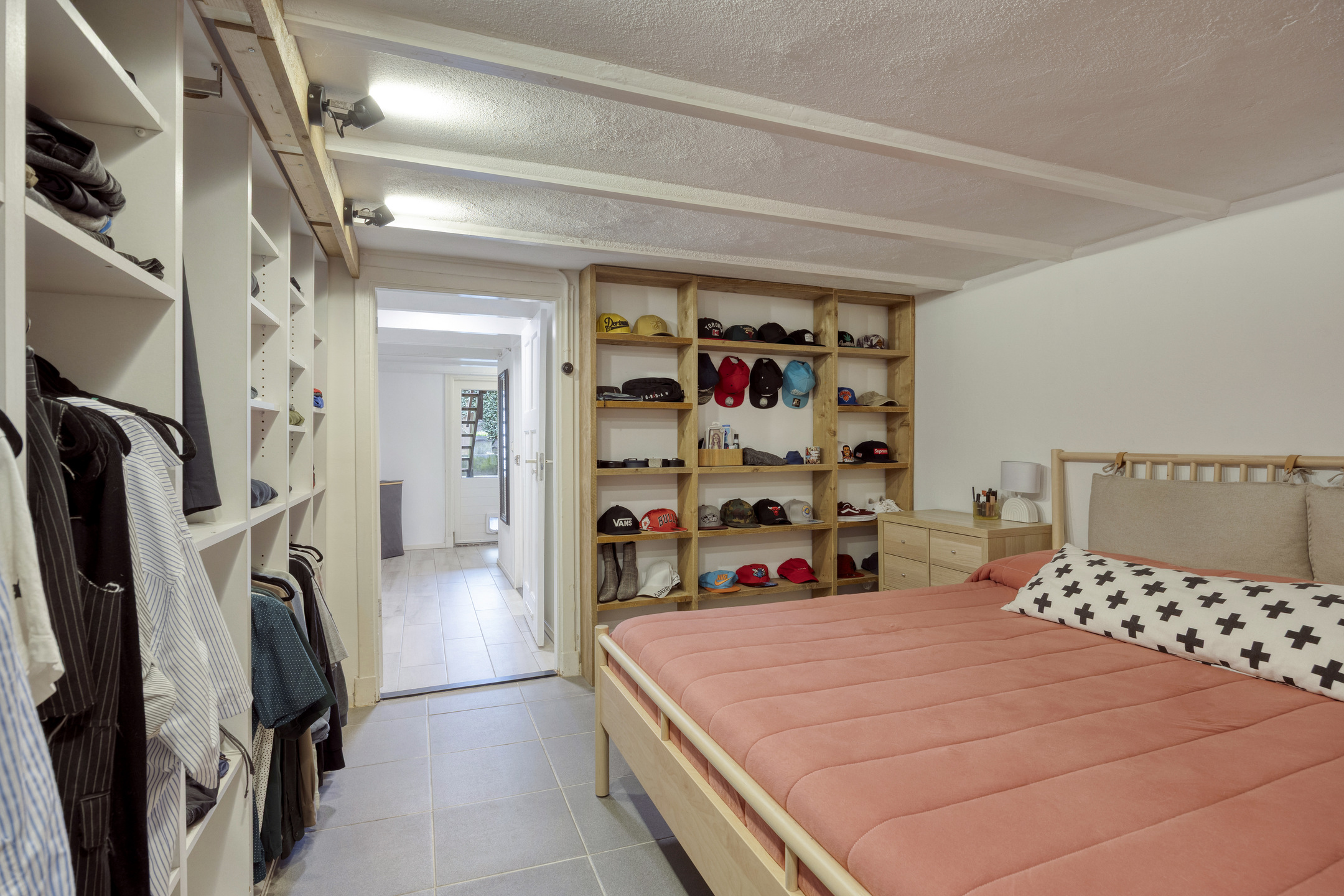 Achter de keuken bevindt zich een speelse split level indeling met twee extra kamers. Eén kamer is momenteel ingericht als slaapkamer en de andere als werkkamer, maar beide ruimtes zijn flexibel in te delen naar wens.