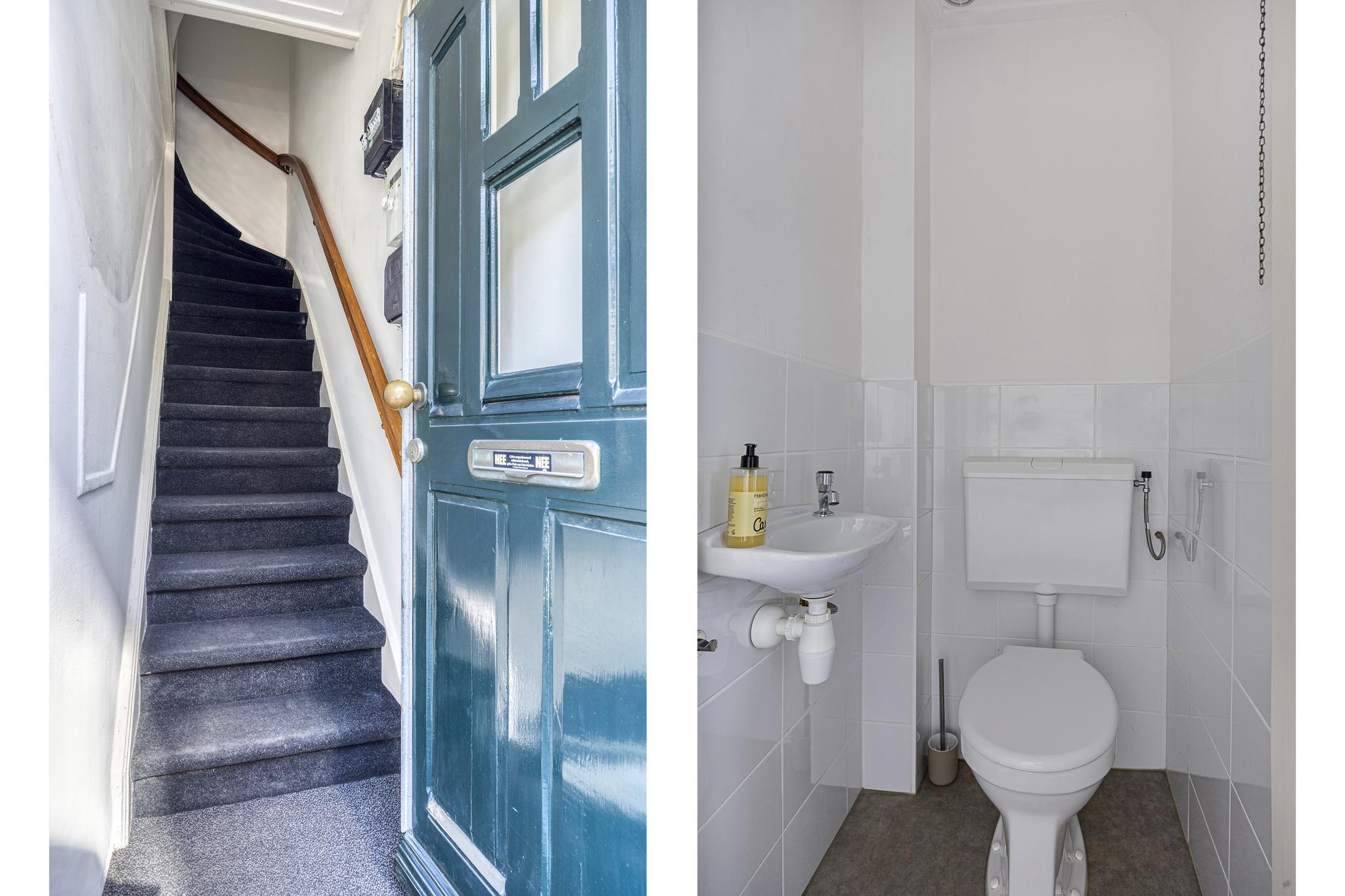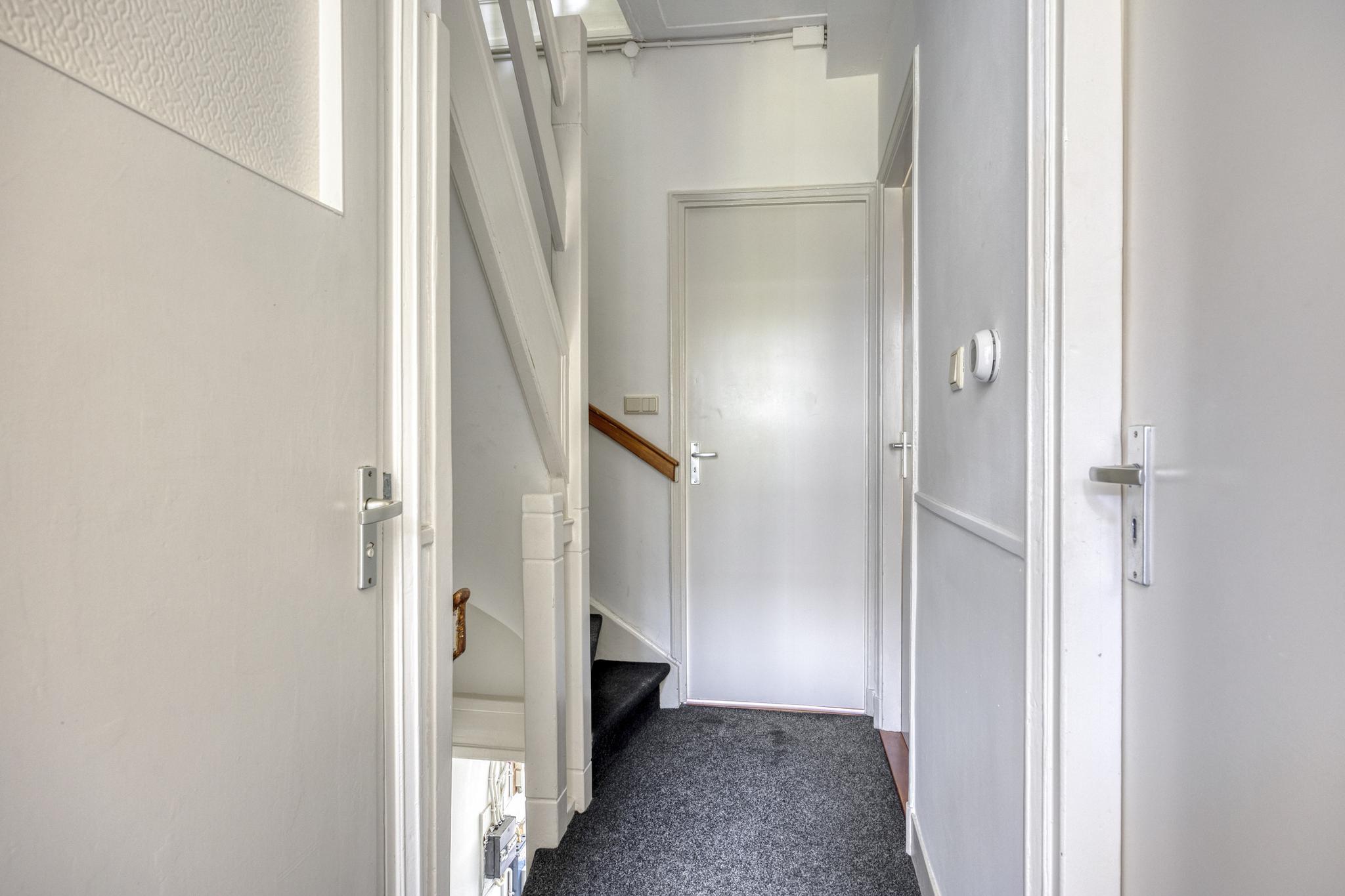 Entree, hal met meterkast en trapopgang.