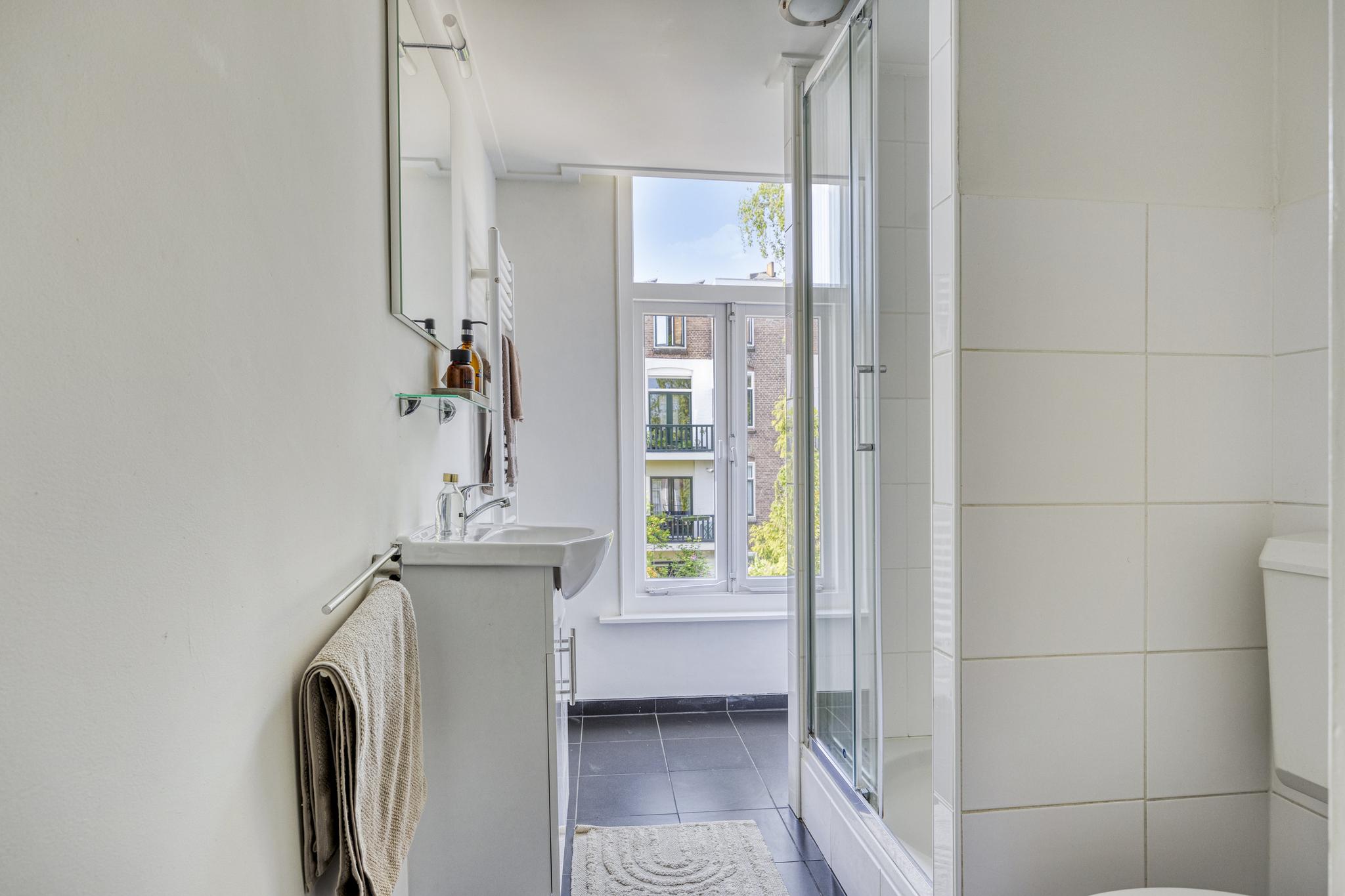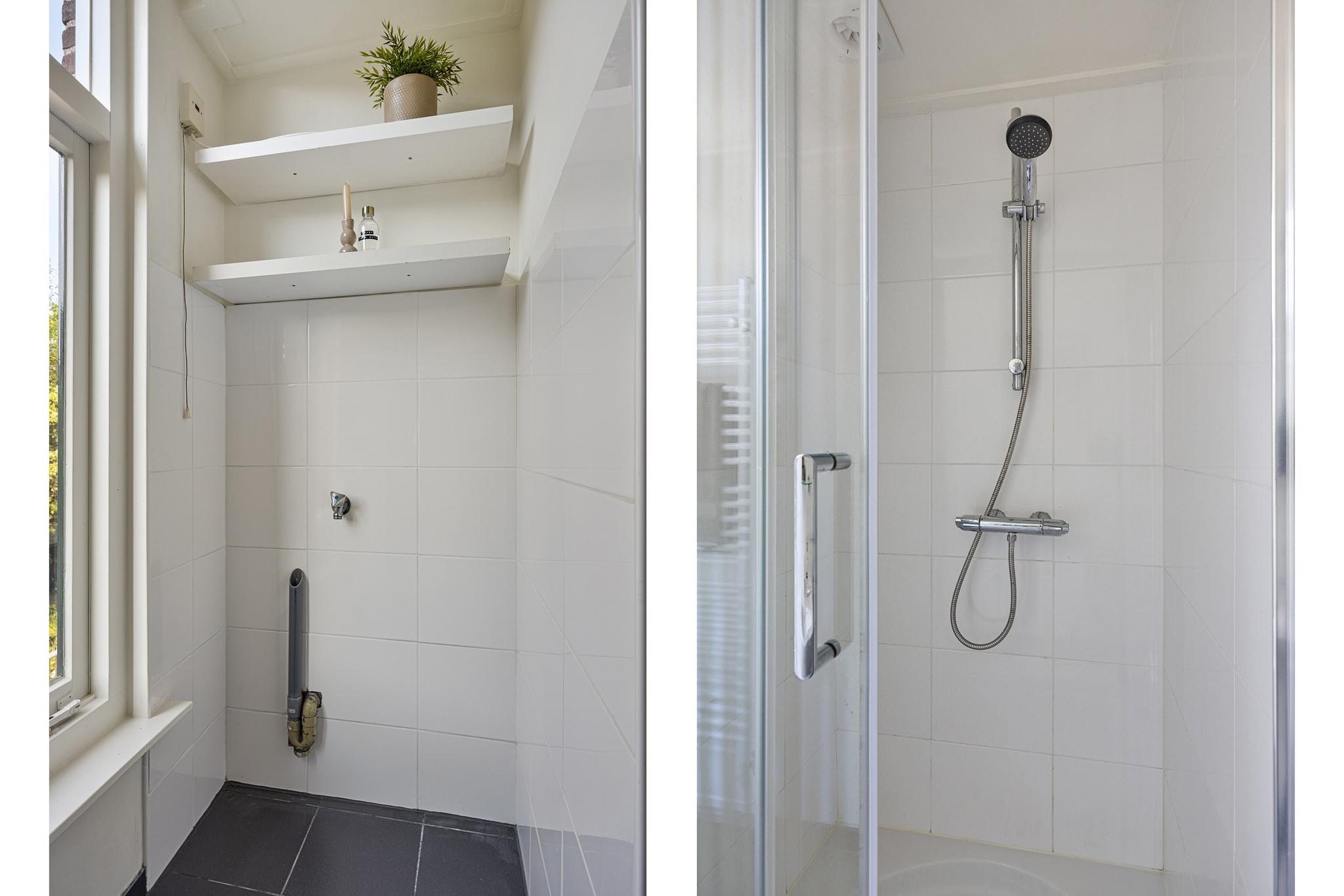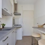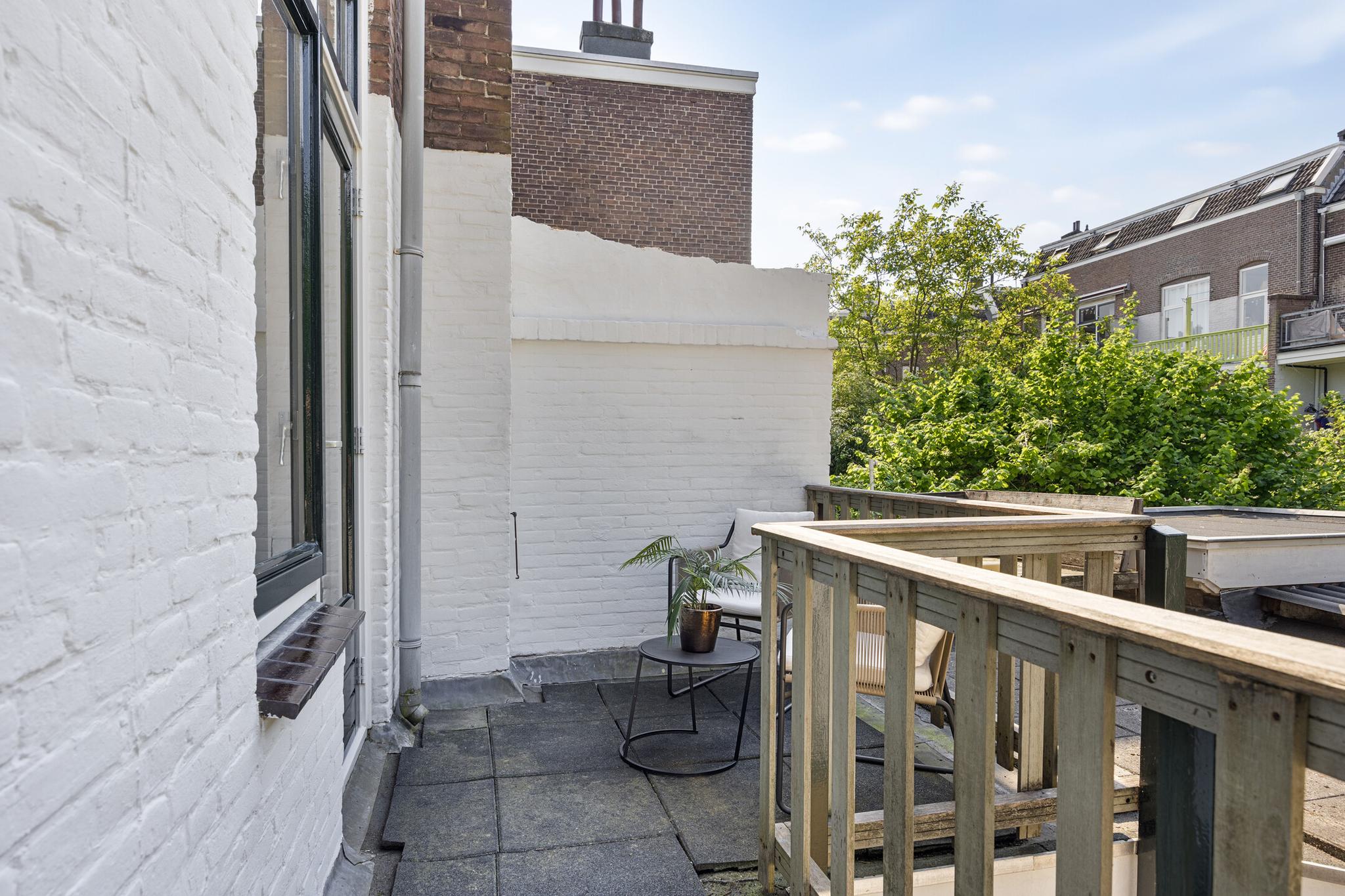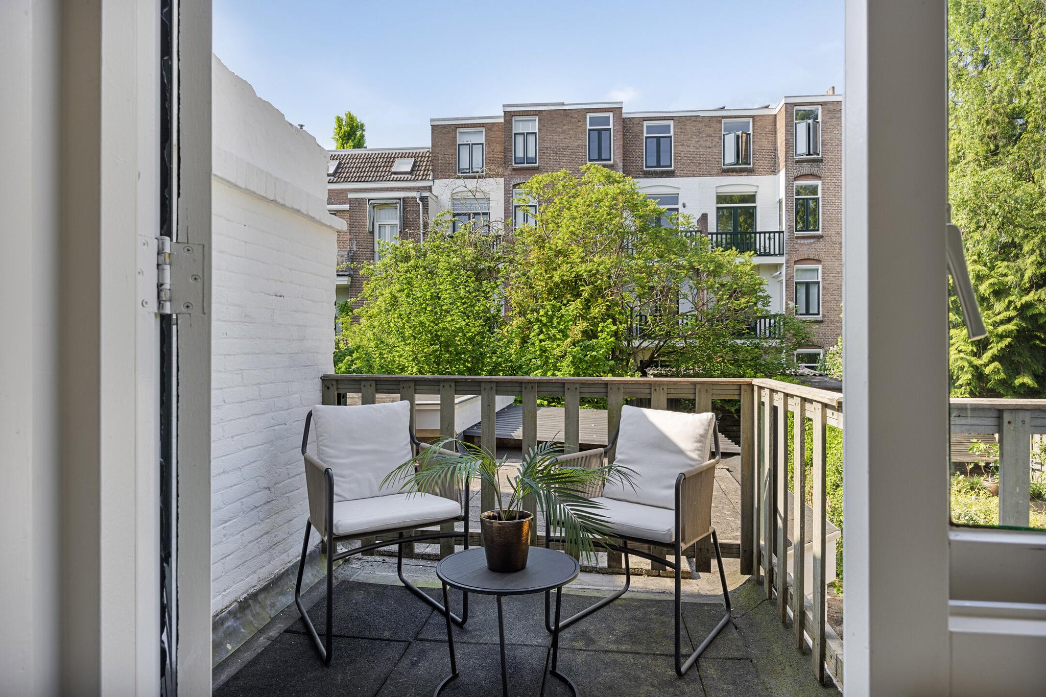 Overloop, toilet, dichte nette keuken uit 2021 met deur naar balkon, woonkamer, badkamer met douche, wastafel en afvoer wasmachine (kan bijv. eenvoudig werkkamer van gemaakt worden). De sfeervolle woonkamer, voormalig kamer-en-suite, kenmerkt zich door de fijne lichtinval en geeft eveneens toegang tot het balkon. Op het balkon word je verrast door de rust en met ‘groen uitzicht’ kun je na een werkdag heerlijk genieten van de avondzon.