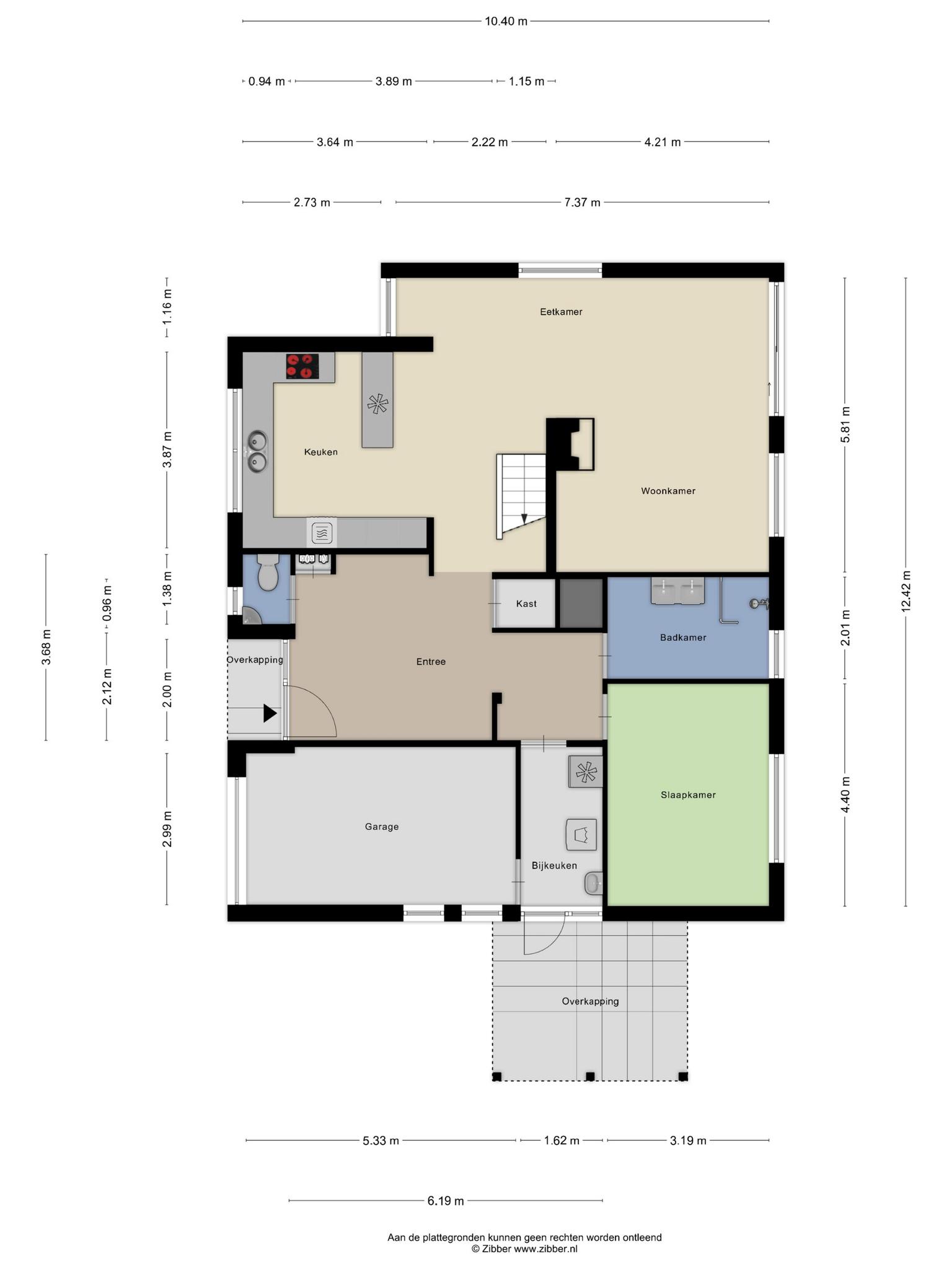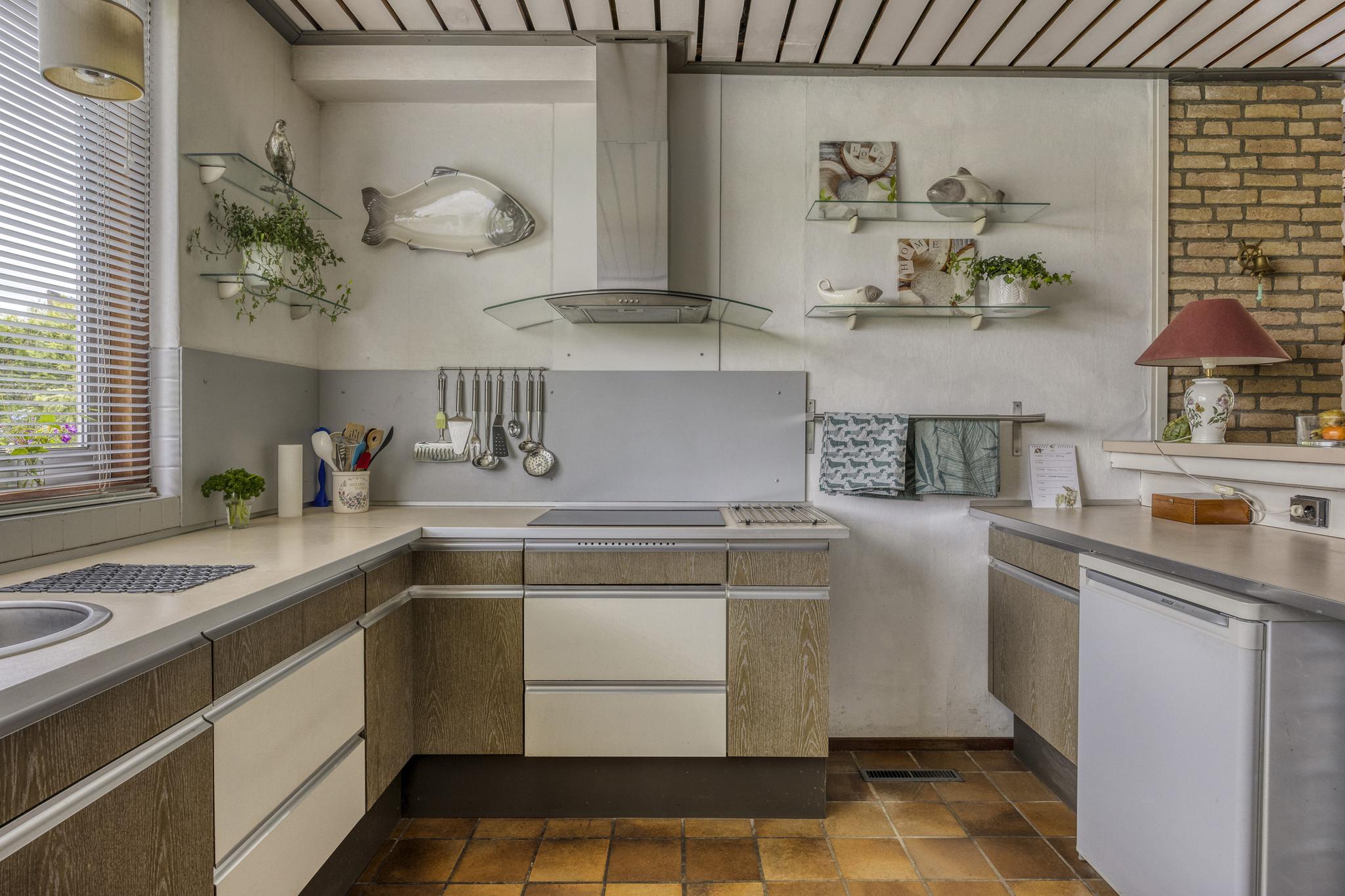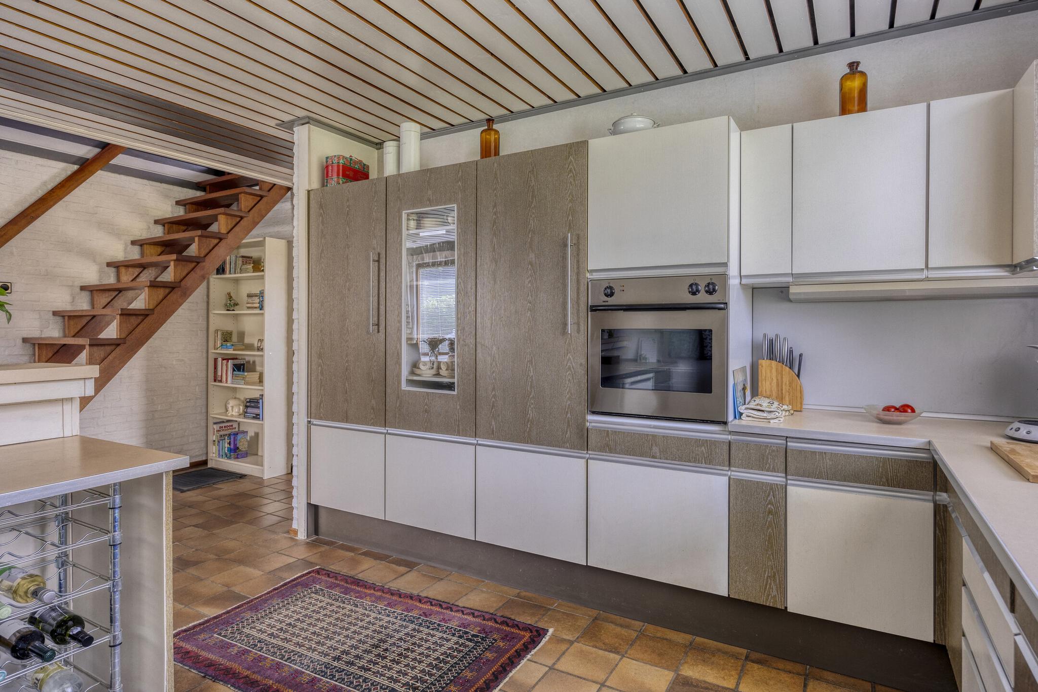 Bij binnenkomst valt direct de ruime hal op, die toegang biedt tot vrijwel alle vertrekken op de begane grond. Hier tref je onder andere een lichte en tuingerichte woonkamer met open keuken en eetgedeelte – een fijne leefruimte met veel privacy en uitzicht op het groen. De keuken is ruim van opzet en vormt het kloppende hart van de woning, perfect voor gezellige diners en lange avonden. Op de begane grond bevinden zich tevens een, separaat toilet, ruime slaapkamer en een badkamer, wat deze woning levensloopbestendig maakt. Daarnaast vind je hier een bijkeuken, een inpandige garage, en diverse praktische bergruimtes. In de bijkeuken bevindt zich de aansluiting voor de wasmachine en toegang tot de garage.