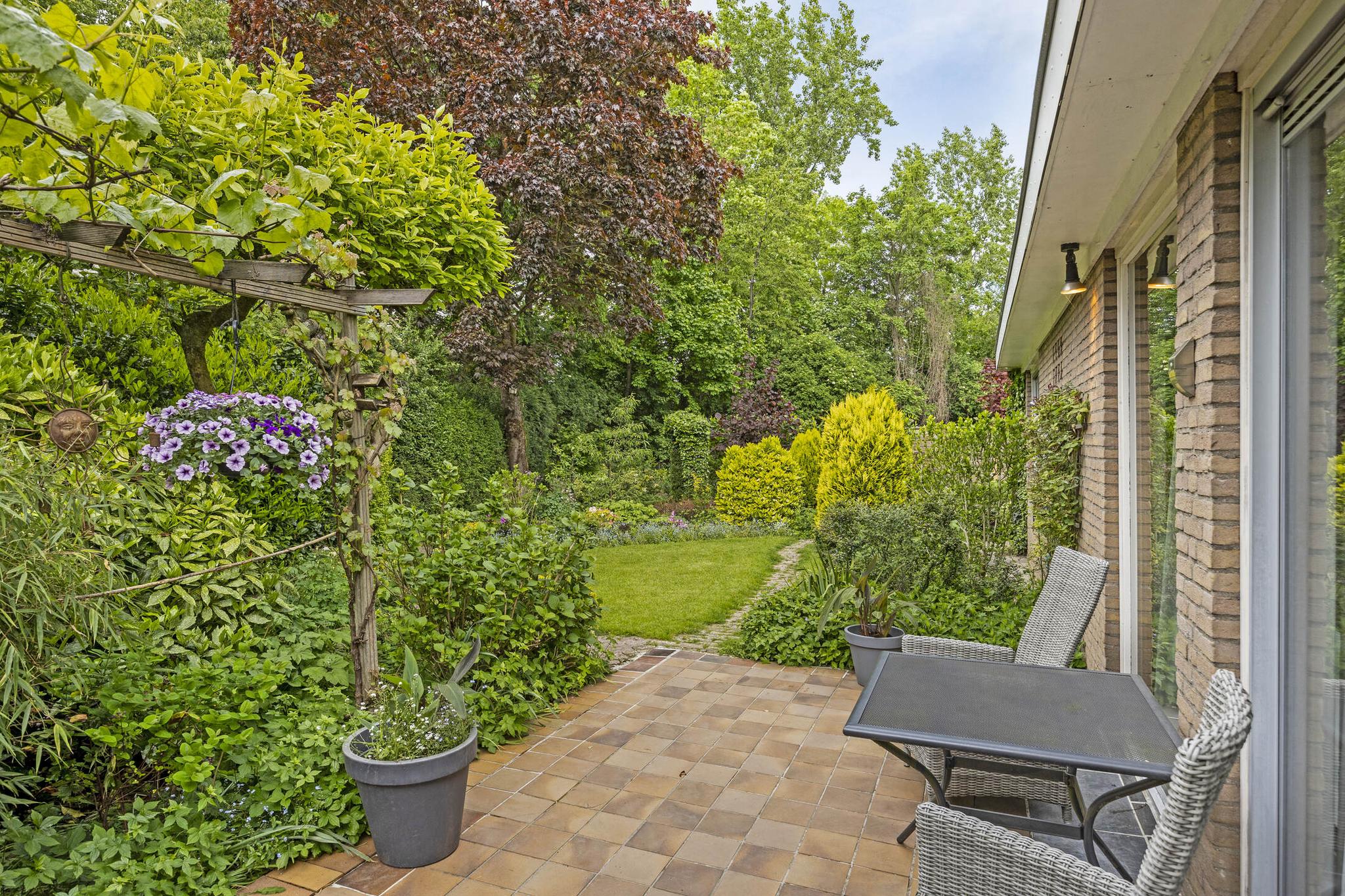 De grote, groene tuin rondom biedt rust, privacy en volop mogelijkheden om te genieten van het buitenleven. Of je nu houdt van tuinieren, zonnen of gewoon ontspannen met een goed boek – hier kan het allemaal.