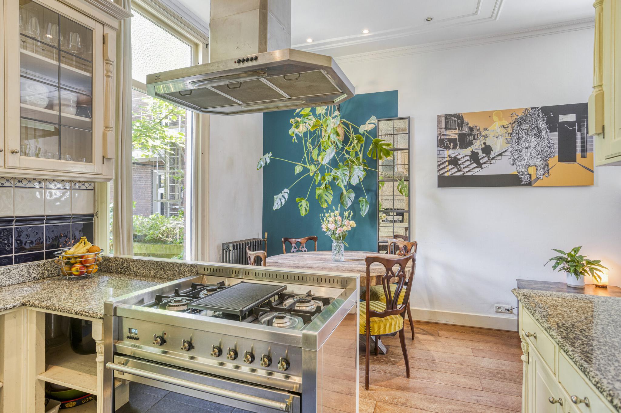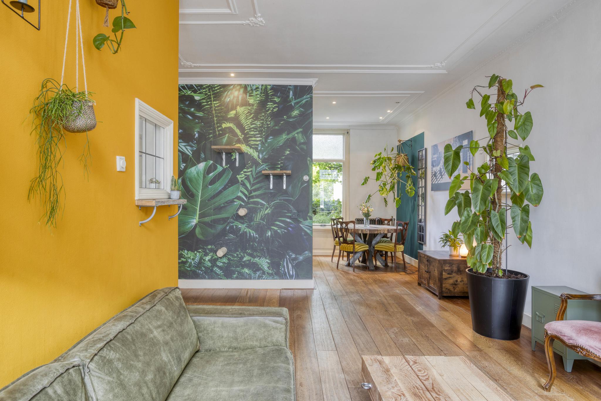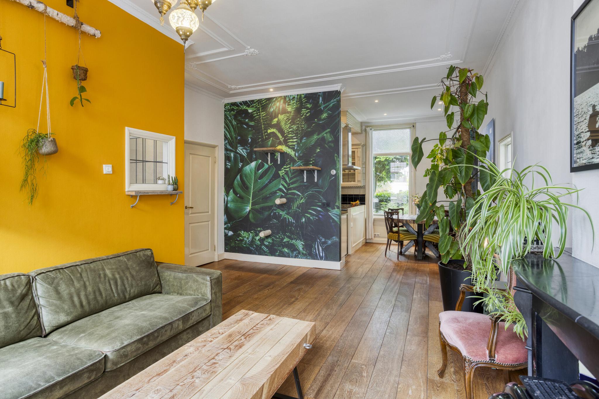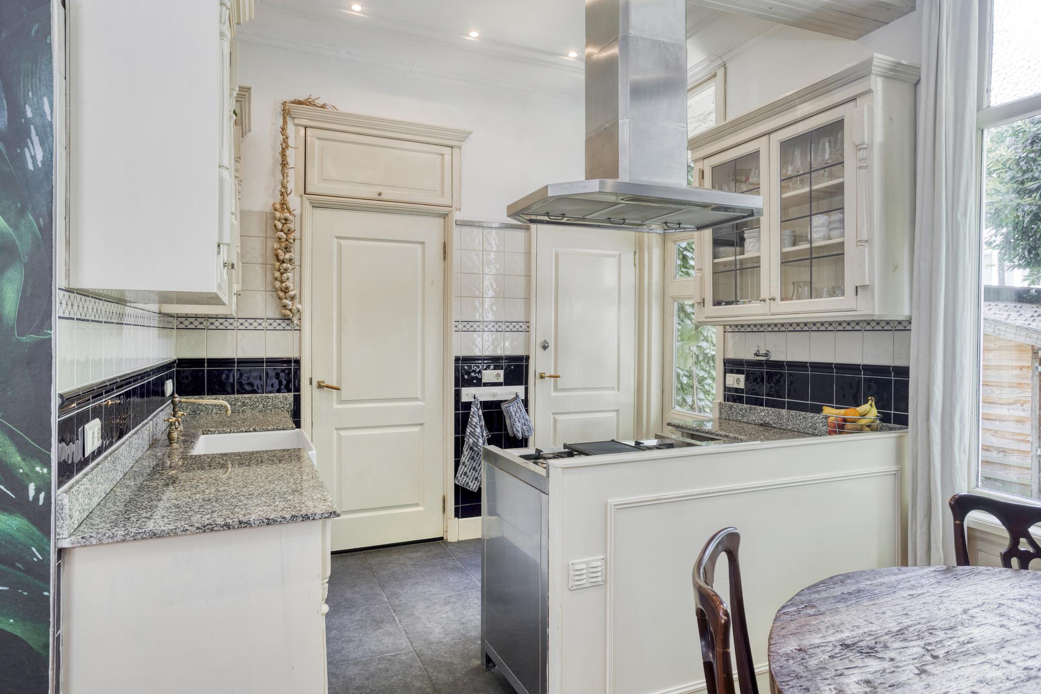 Bij binnenkomst word je verwelkomd in een lichte hal die direct een prettige indruk achterlaat. Vanuit hier loop je door naar de royale woonkamer en eetkamer, waar hoge plafonds met ornamenten en grote ramen zorgen voor een fijne lichtinval en een gevoel van ruimte. Tevens beschikt de woonkamer nog over een sfeervolle kachel met originele schouw. De sfeervolle indeling maakt het eenvoudig om een comfortabele zithoek en een gezellige eetplek te creëren.