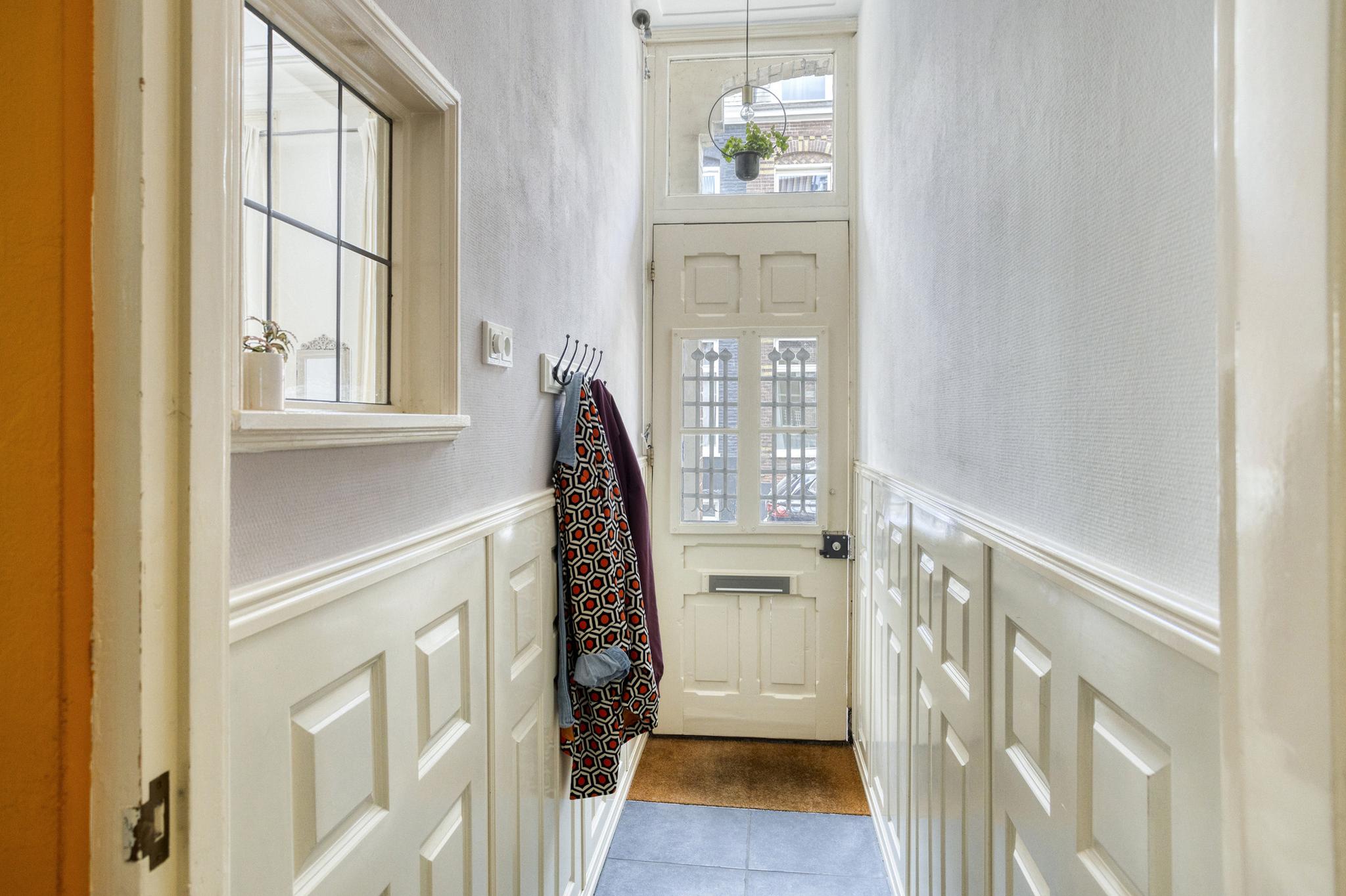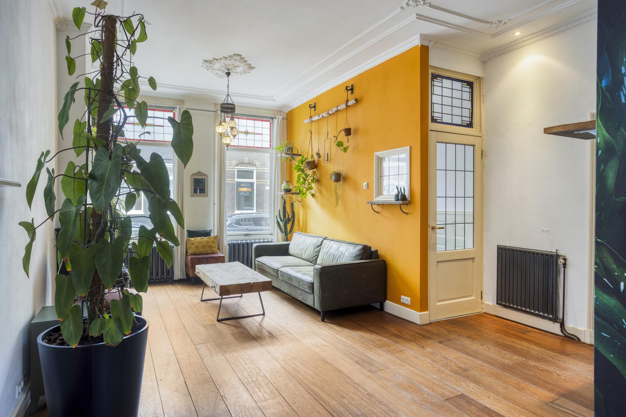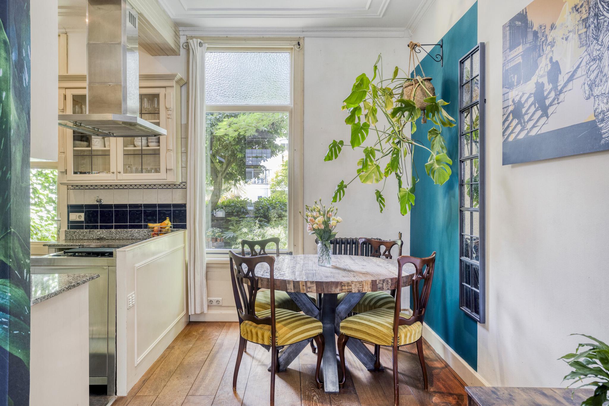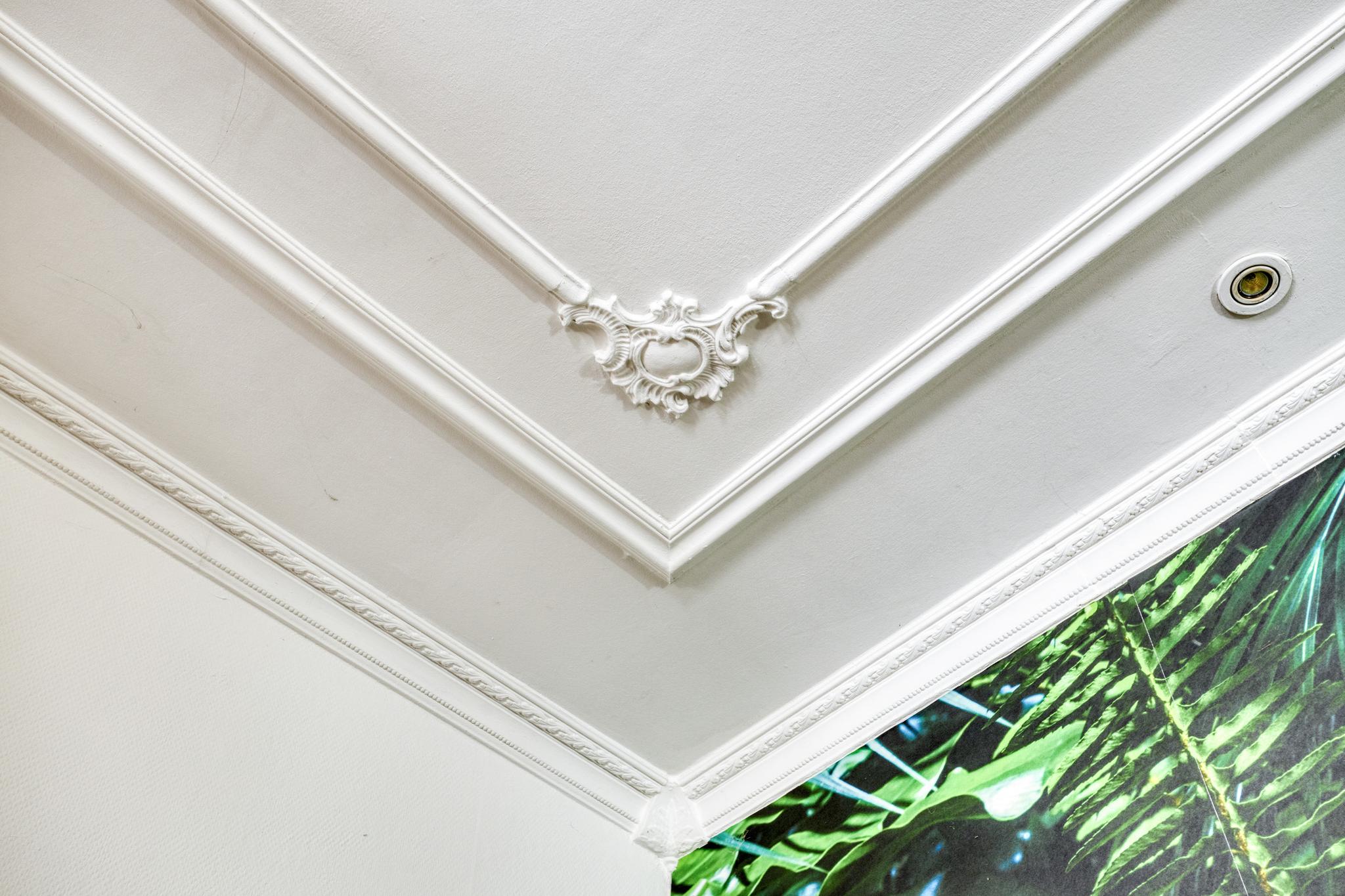 Bij binnenkomst word je verwelkomd in een lichte hal die direct een prettige indruk achterlaat. Vanuit hier loop je door naar de royale woonkamer en eetkamer, waar hoge plafonds met ornamenten en grote ramen zorgen voor een fijne lichtinval en een gevoel van ruimte. Tevens beschikt de woonkamer nog over een sfeervolle kachel met originele schouw. De sfeervolle indeling maakt het eenvoudig om een comfortabele zithoek en een gezellige eetplek te creëren.
