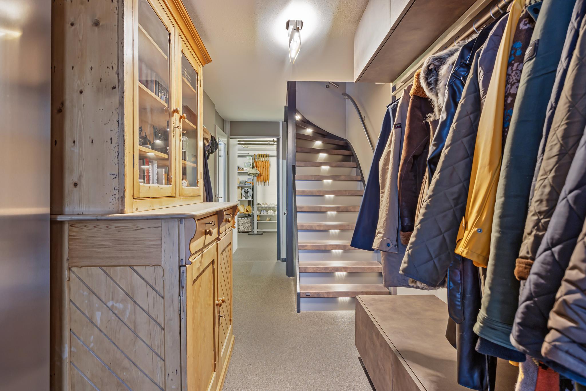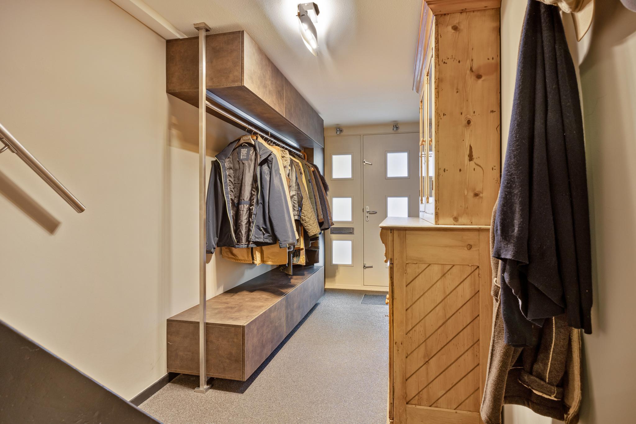 Hal, garderobe en toegang naar garage en royale berging, voorzien van wasmachine en droger aansluiting, alsmede CV-ketel locatie.