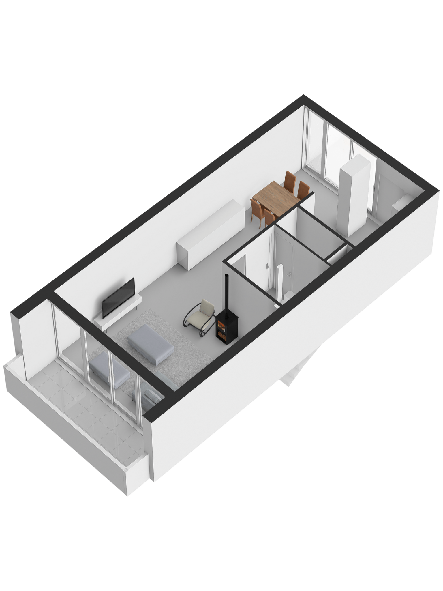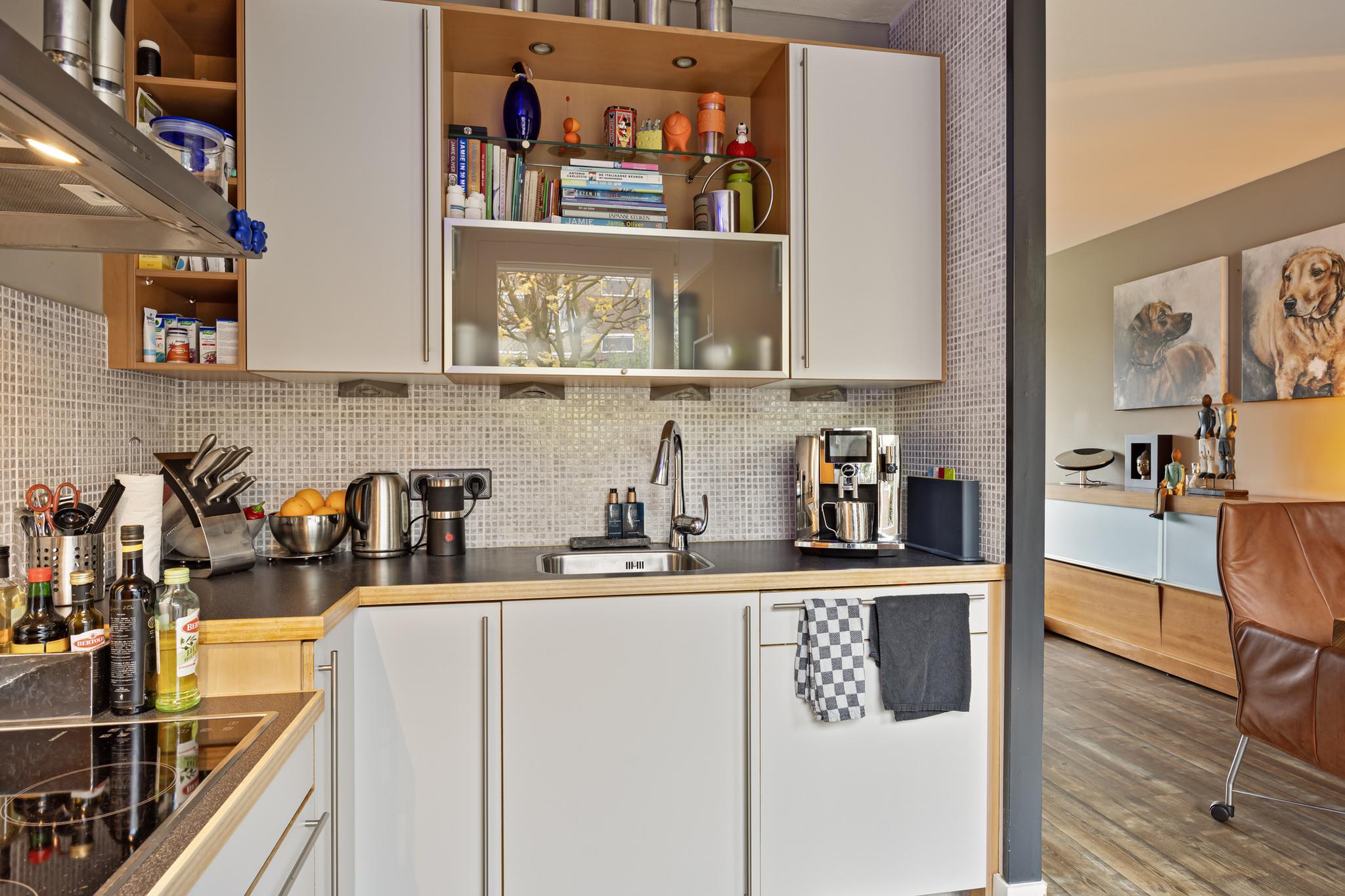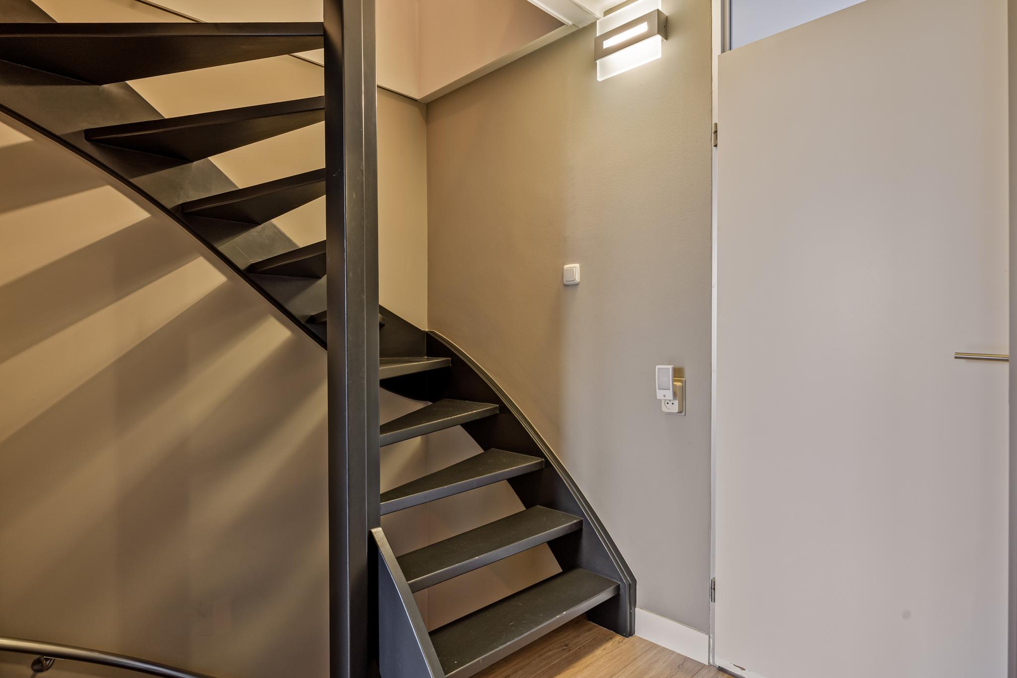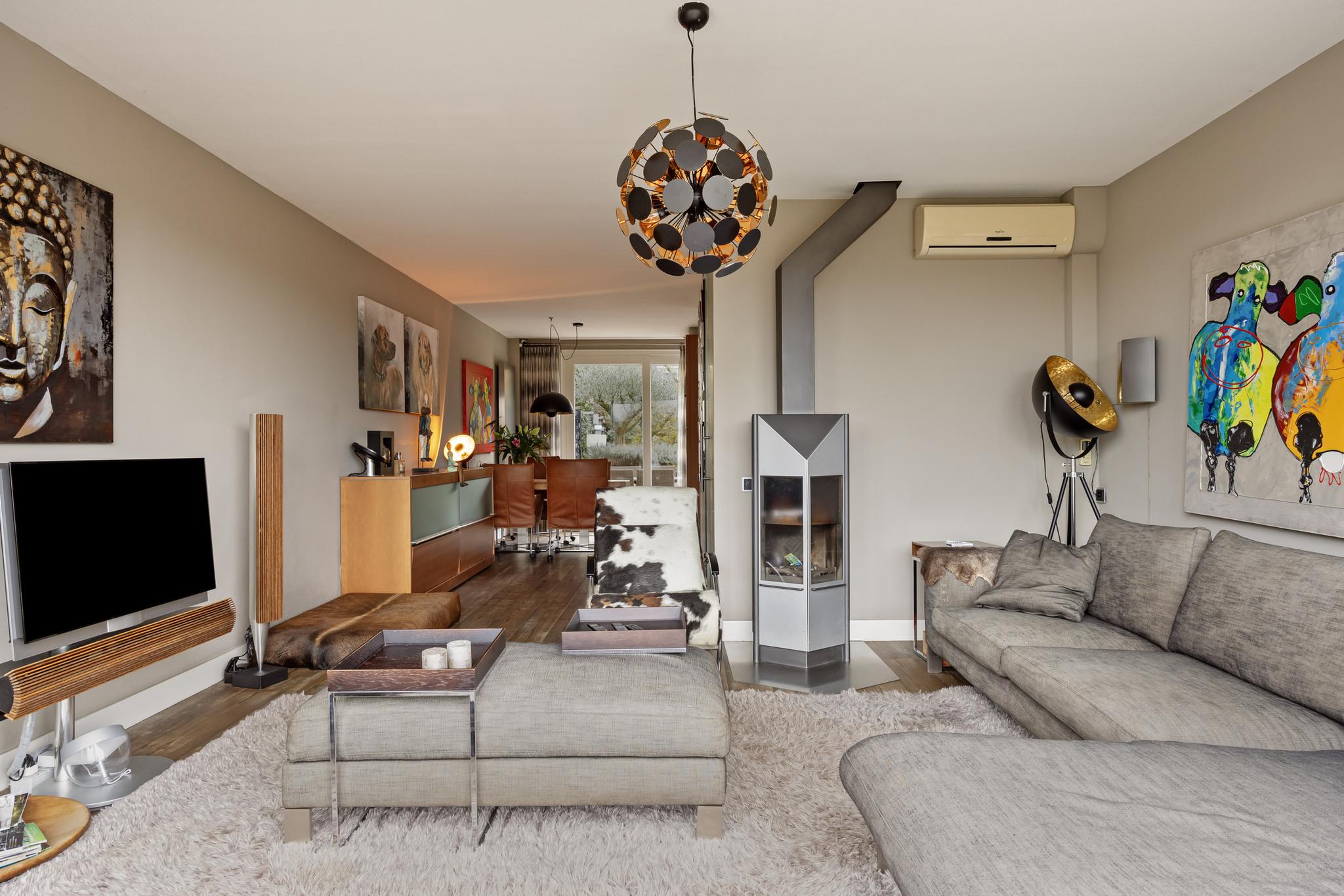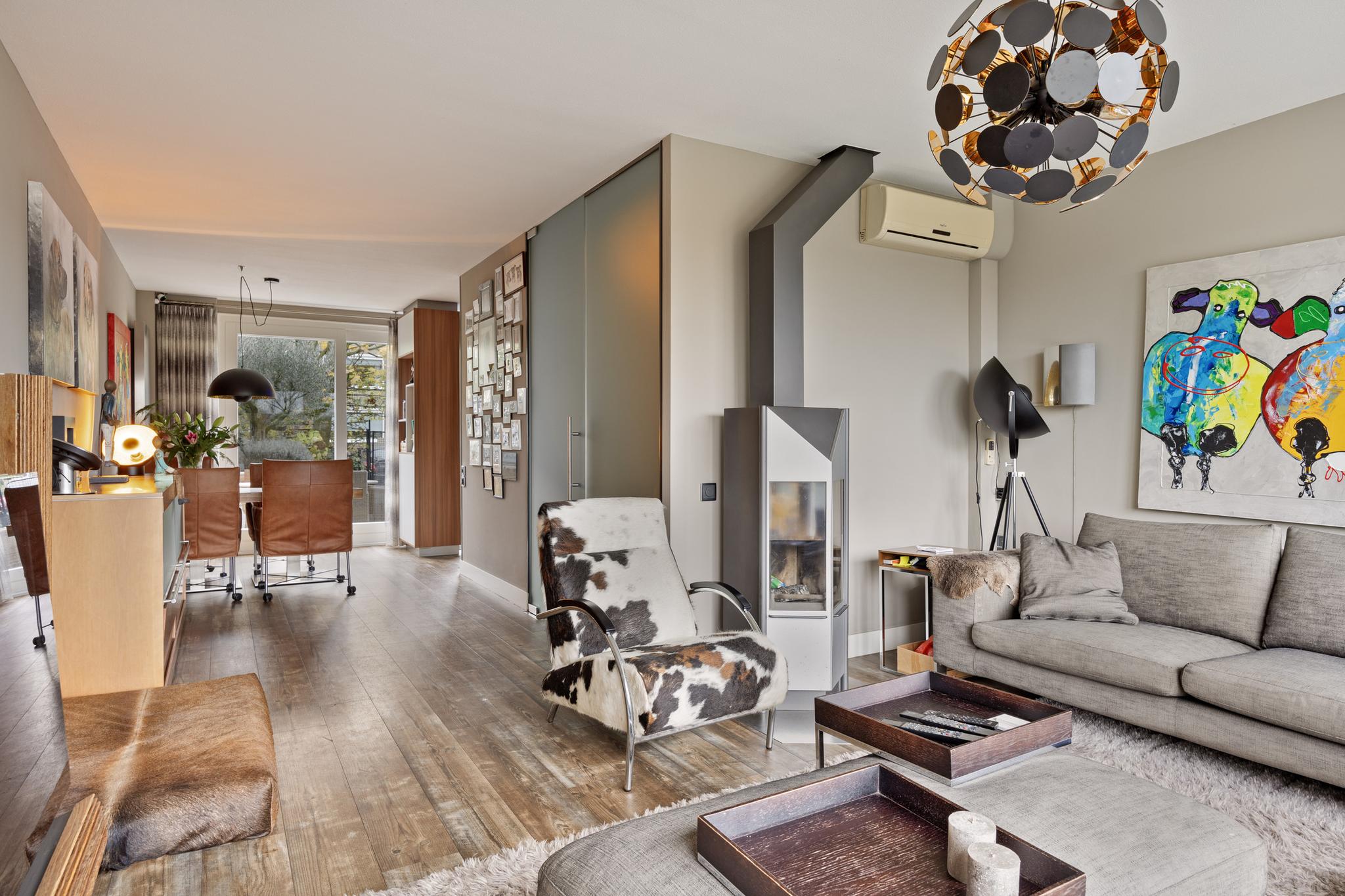 Verlichte traptredes naar 1e verdieping. Sfeervolle woonkamer met houtkachel en aan voorzijde balkon. Doorloop naar volledig ingerichte woonkeuken, waarvan via de schuifpui doorloop naar de zonnige en compleet ingerichte achtertuin met achterom naar parkeermogelijkheid.