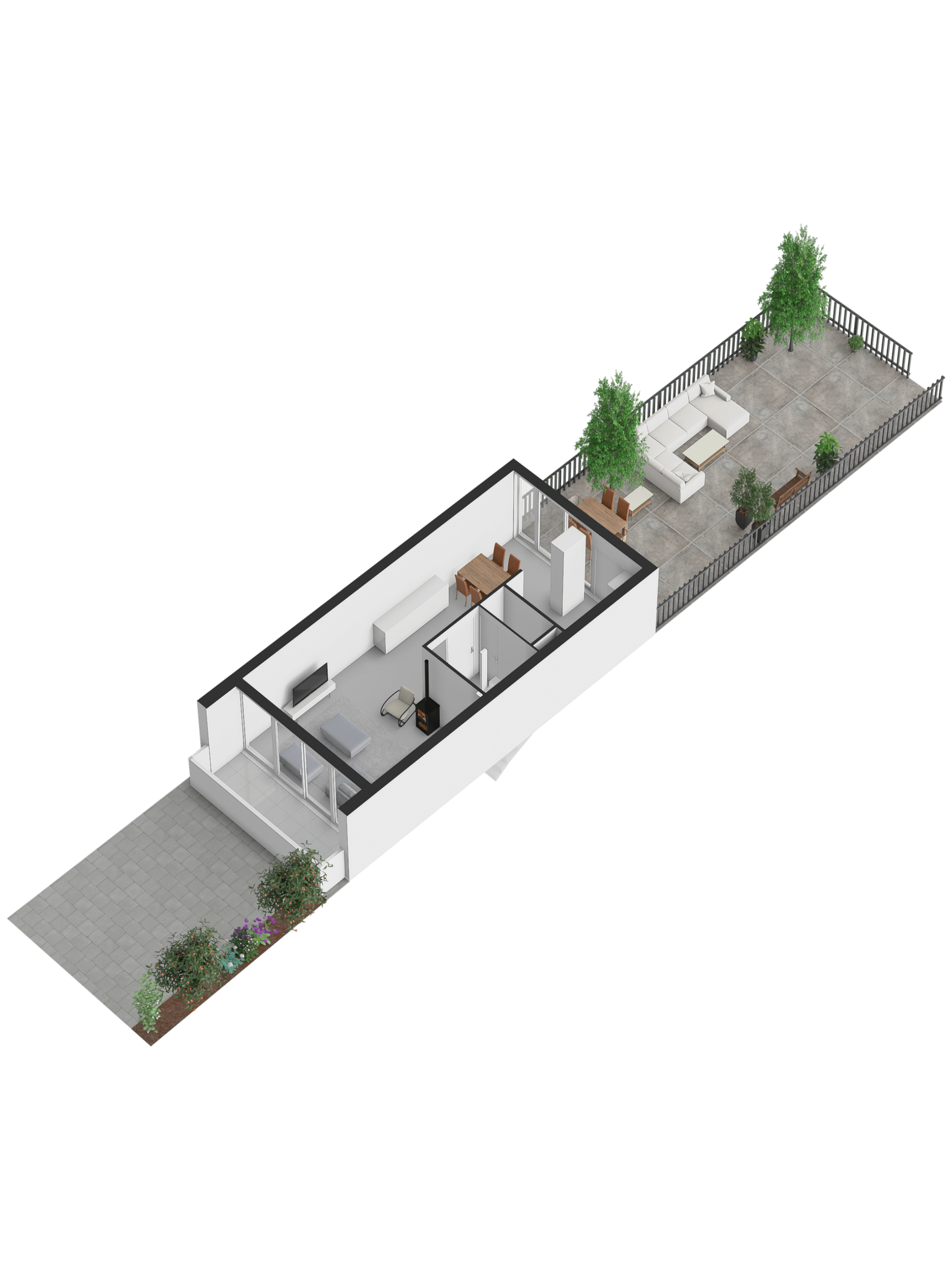 - Vanuit woonkamer, keuken (1everdieping), rechtstreeks de achtertuin in