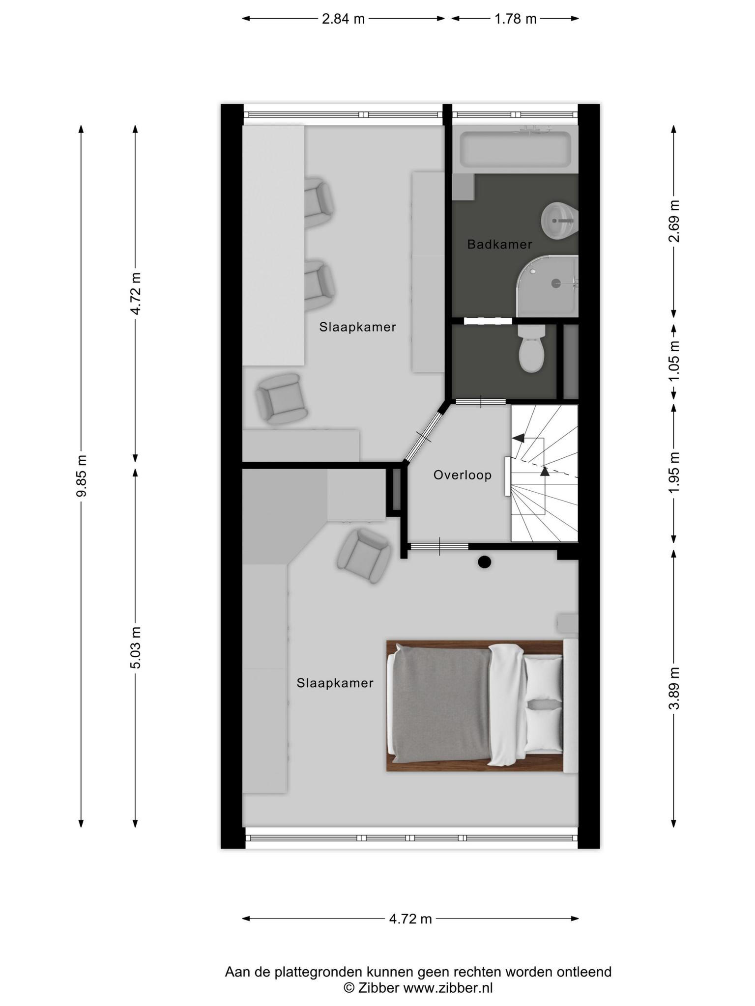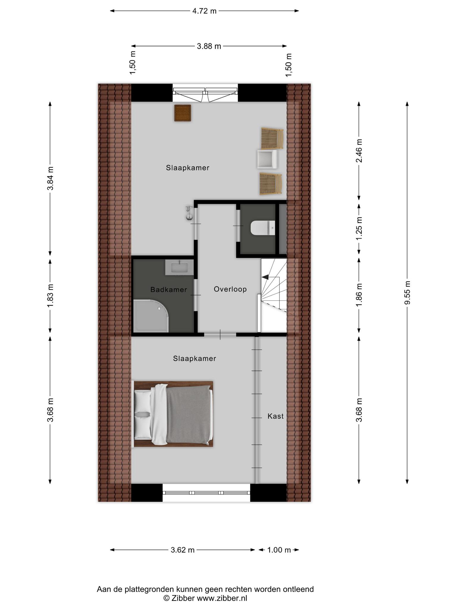 2 slaapkamers, waarvan 1 met kastenwand en 1 ingericht als thuiskantoor.