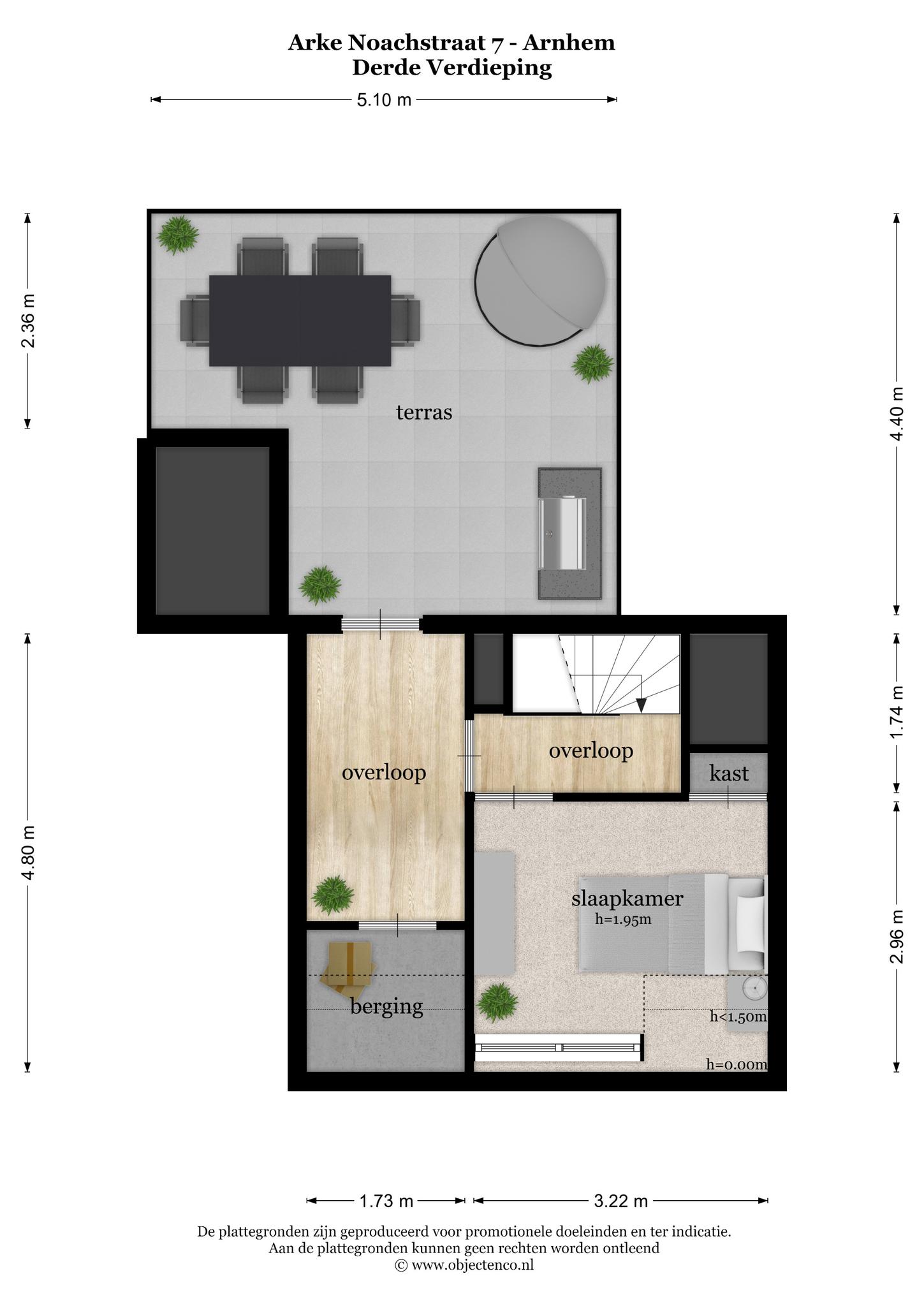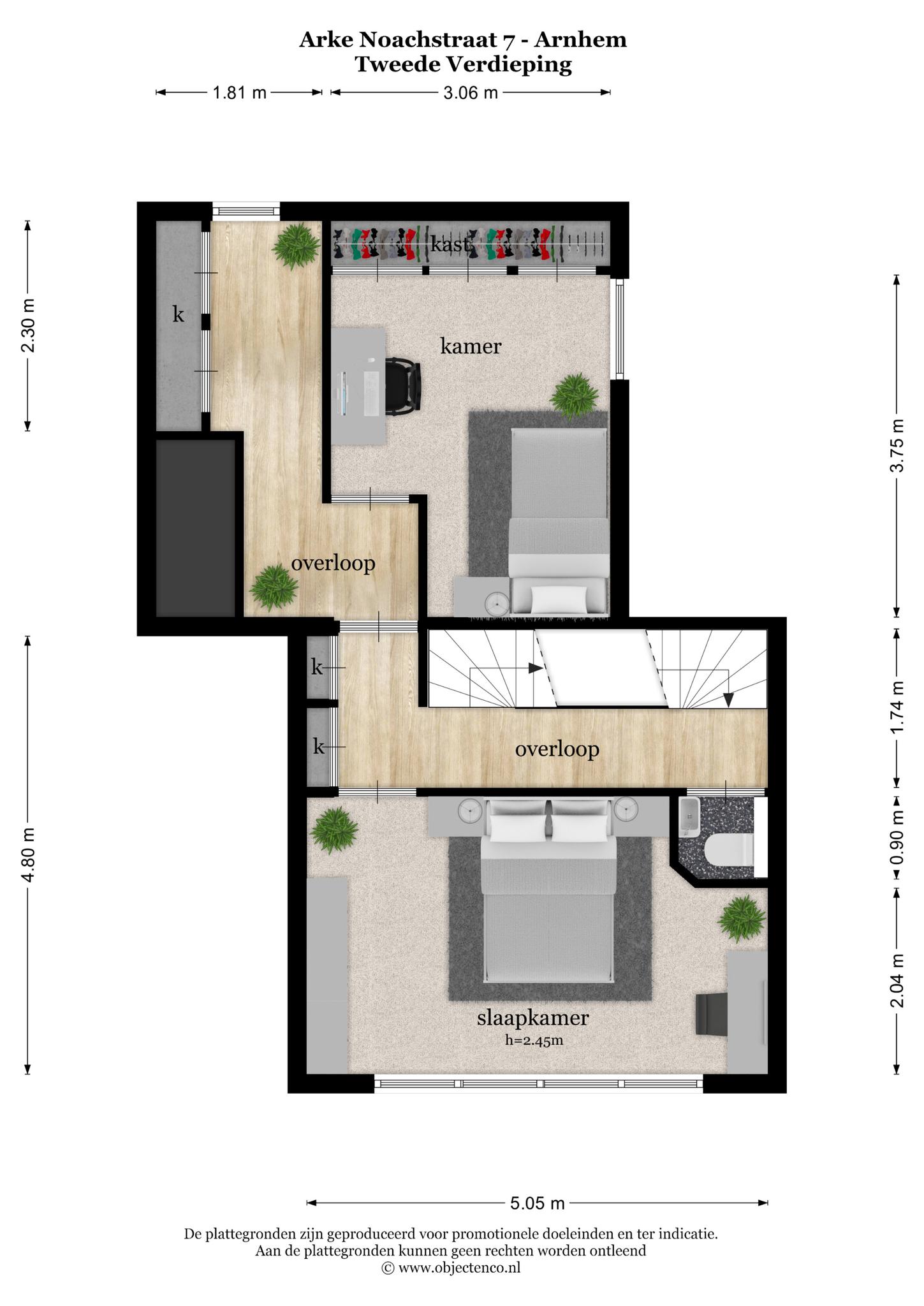 Overloop, slaapkamer toegang tot het zonnige dakterras.