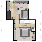 Overloop met diverse vaste kasten, toilet, twee slaapkamer waarvan één met badkamer voorzien van een douche en een wastafel.