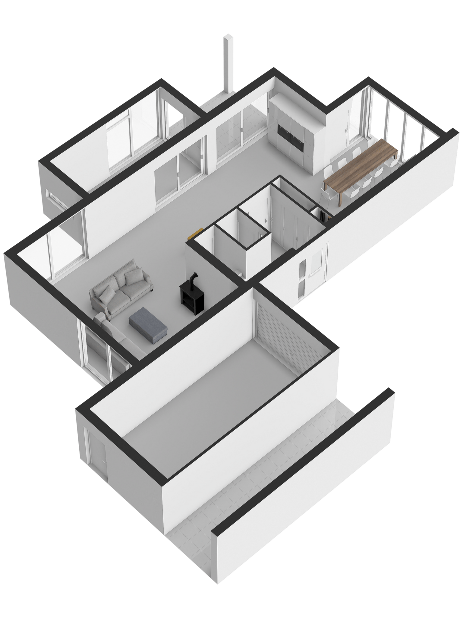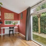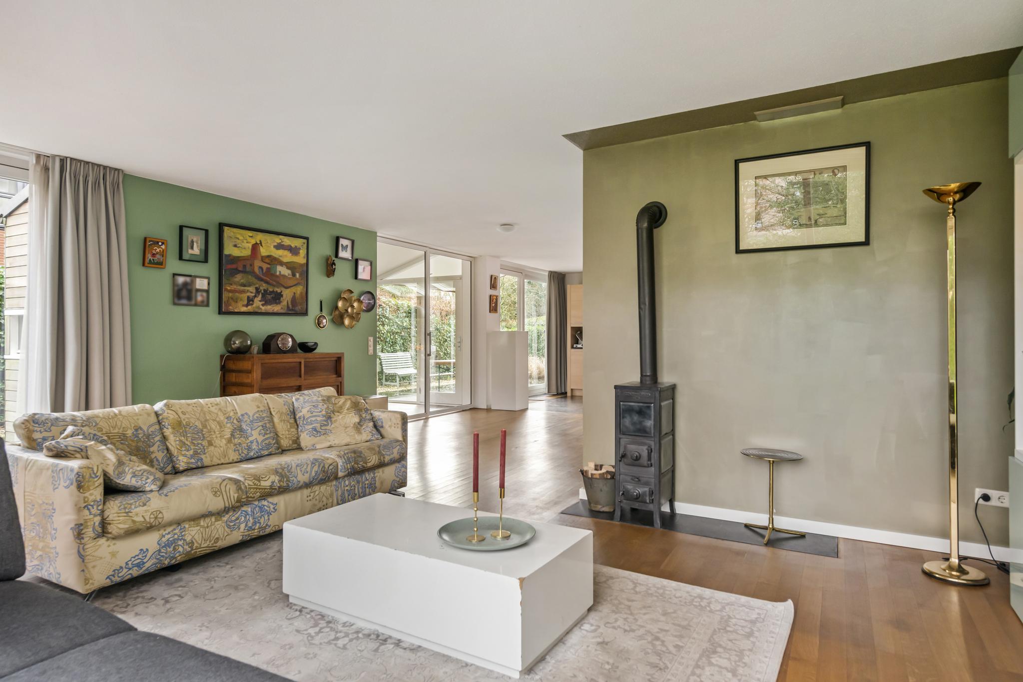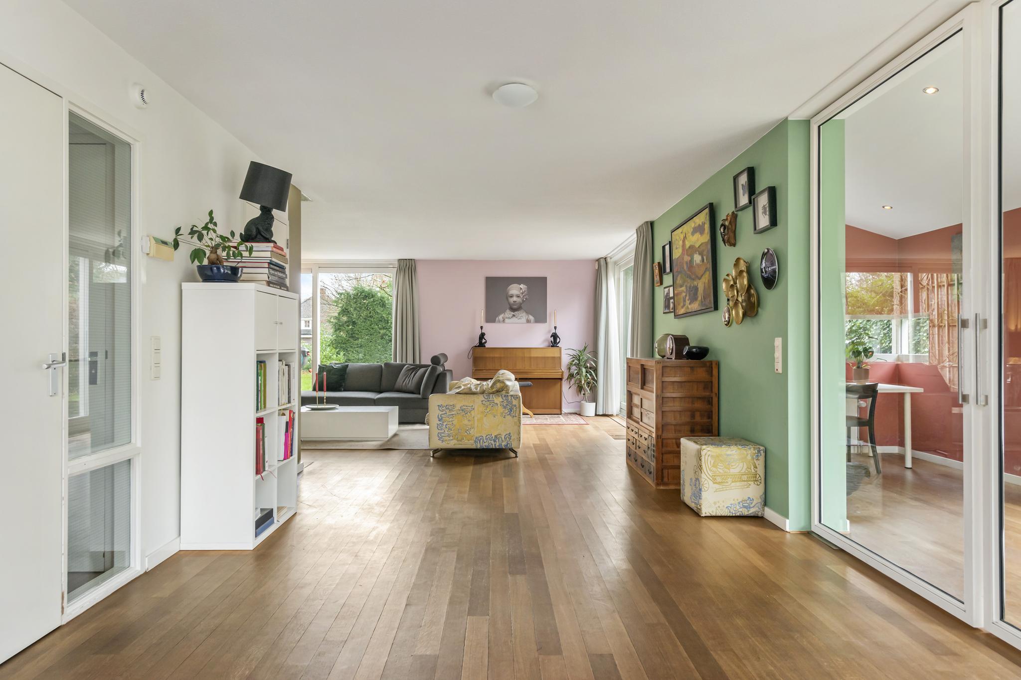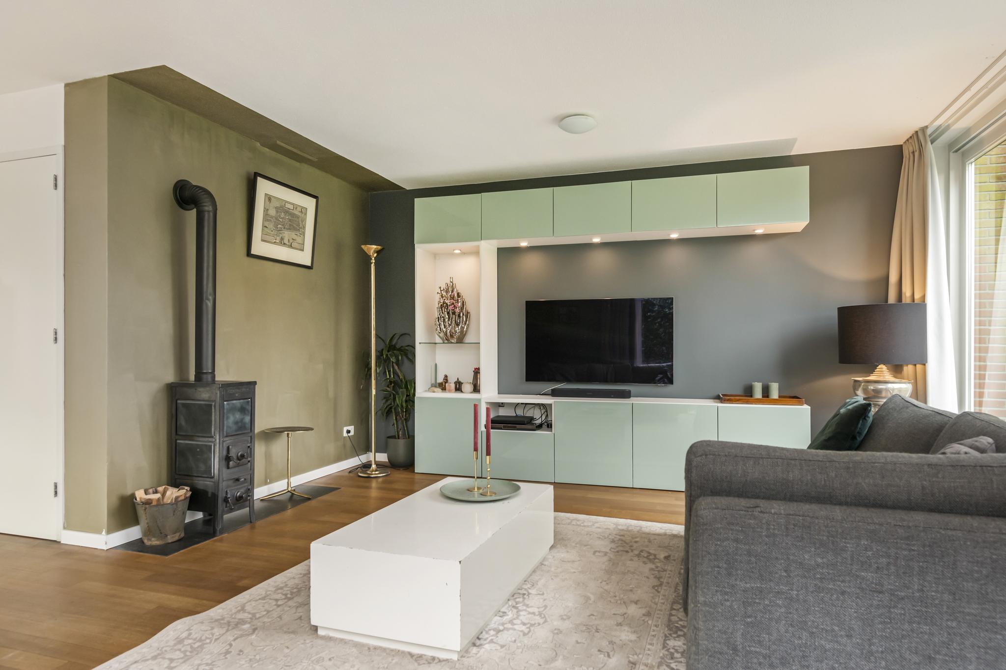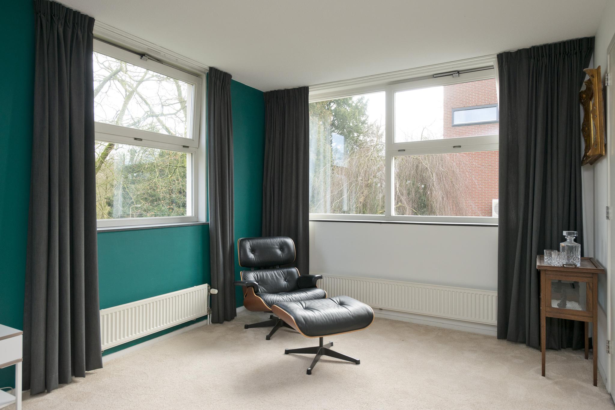 Niet alleen in de keuken ervaart u de natuurlijke lichtinval, ook in de woonkamer krijgt u dit gevoel. De woonkamer is omringd door grote ramen, waardoor er een geweldig zicht is op de achtertuin. In de woonkamer is er een aparte ruimte (werkruimte) welke te bereiken is door middel van 2 glazen deuren. In deze fantastische leefruimte zijn 2 schuifpuien welke toegang bieden tot de heerlijke achtertuin.