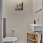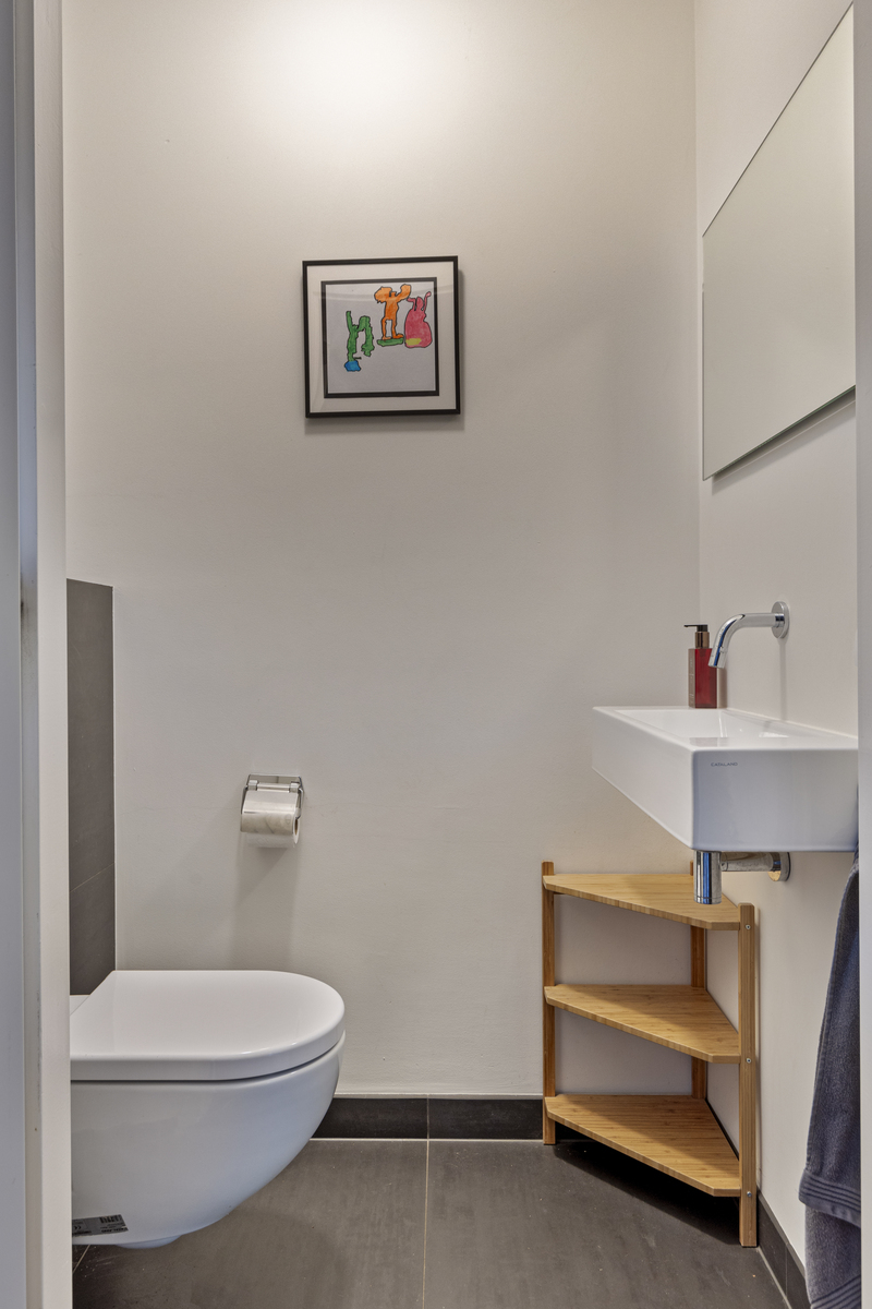 Entree, hal met de toilet met fontein. Vanuit de hal is er toegang tot de zeer royale woonkamer en open keuken.